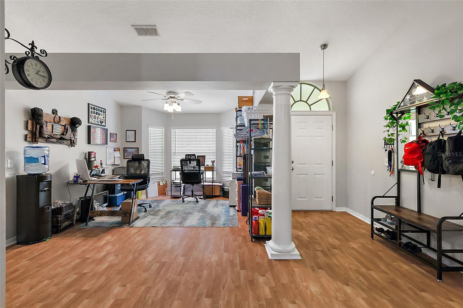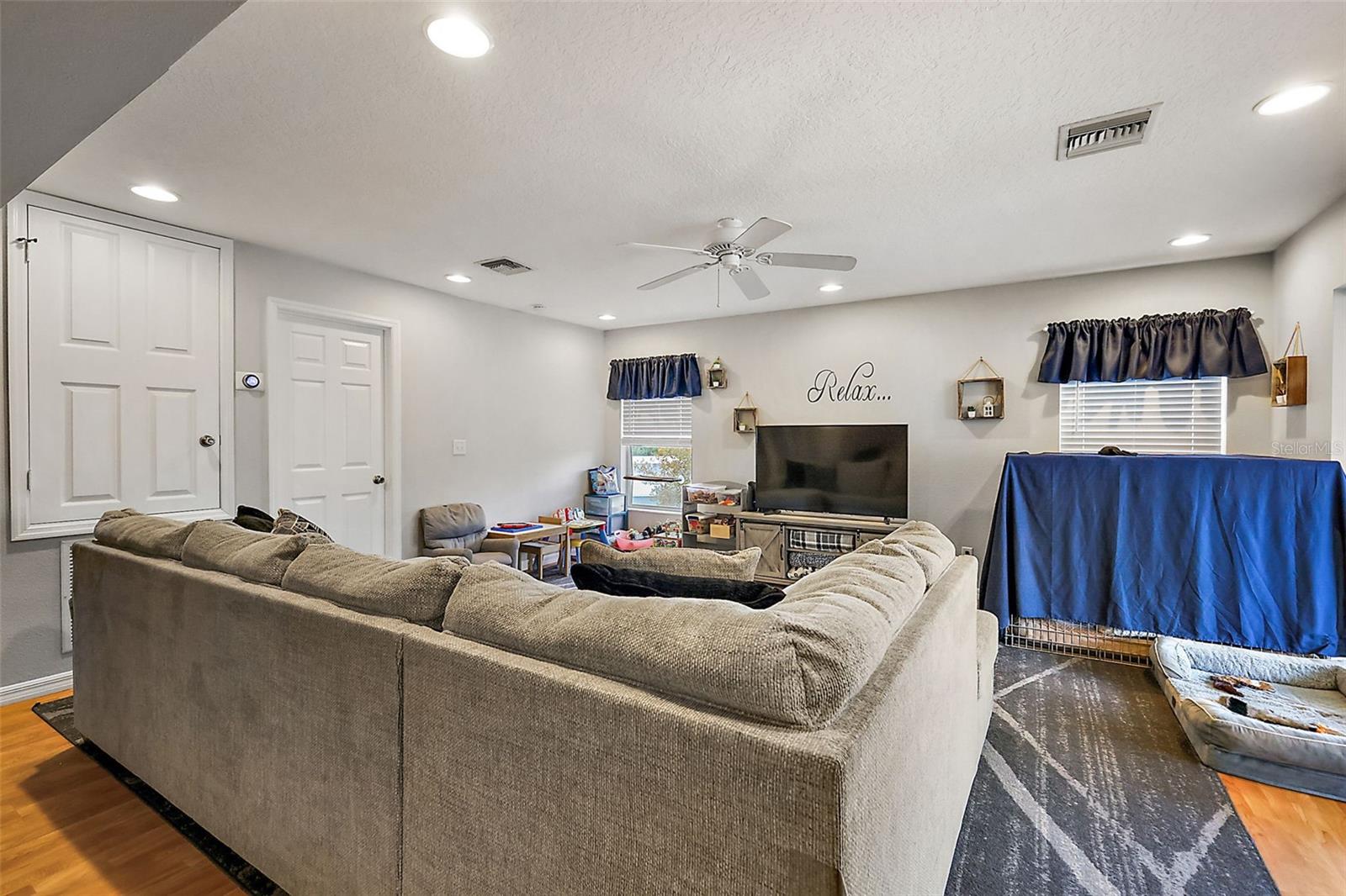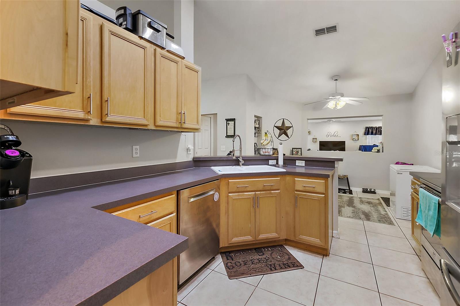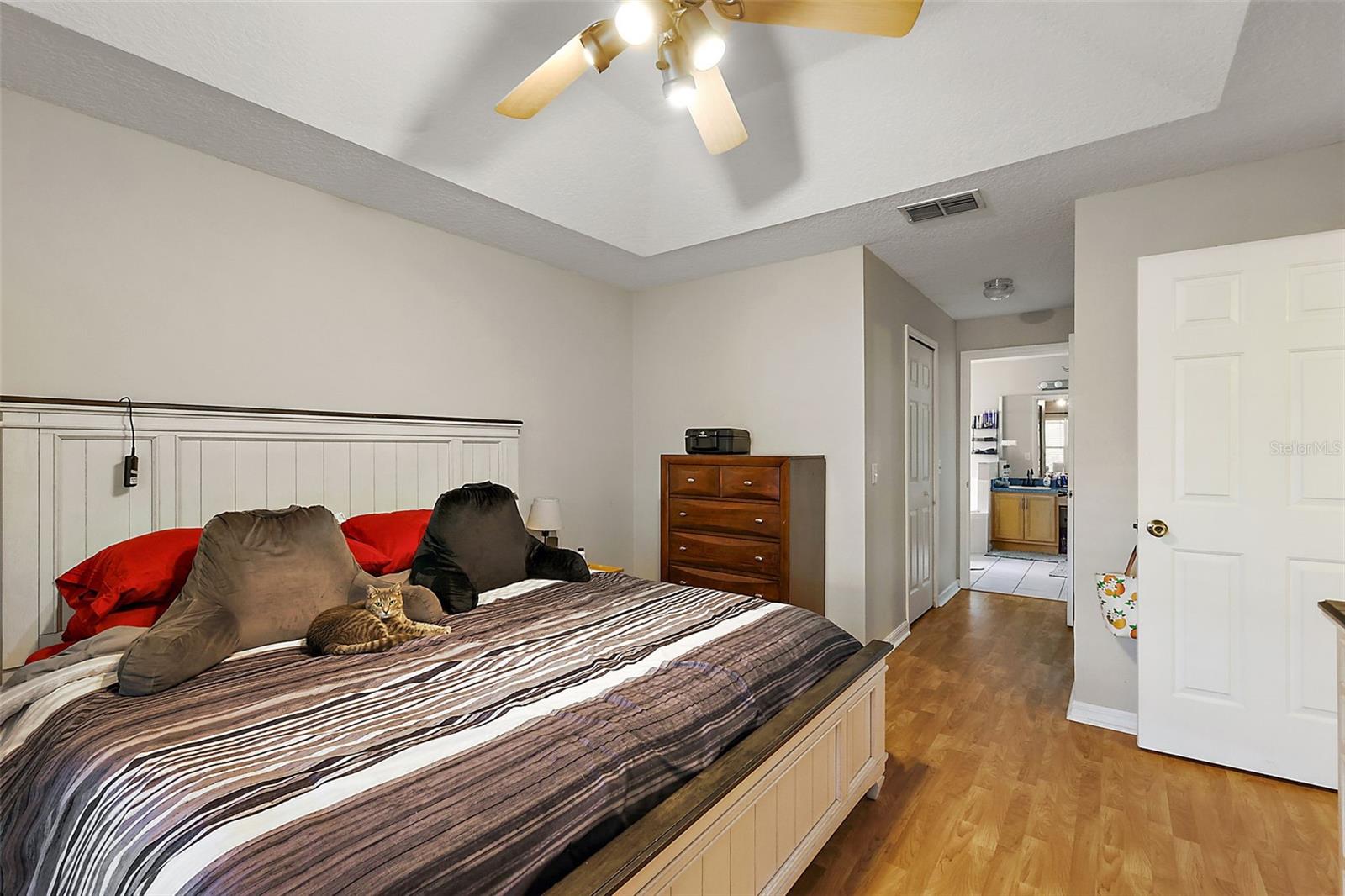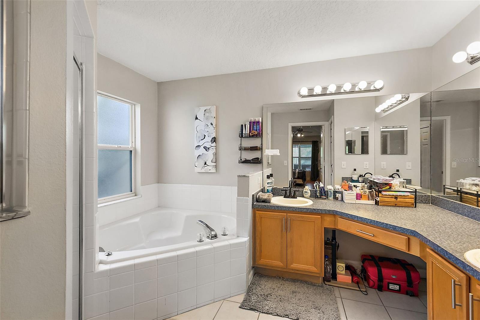 Come see this amazing large single story family home on a bump out cul de sac in the heart of Clermont . Beautiful views from your back yard including the citrus tower. Open floor plan with family room, dining room, kitchen with nook and additional bonus living area. Split bedroom plan with 3 full bathrooms The kitchen boasts generous counter space and a breakfast bar, making cooking and entertaining a delight. Stainless steel appliances. Discover a bright interior with neutral vinyl floors and new plush carpet in all the right places. The main bedroom boasts a private ensuite with separate tub, shower and walk-in closets. The other 3 bedrooms ceiling fans, and sizable closets. Covered screened lanai to enjoy relaxing with a drink after work. The yard is fully fenced yard with a storage shed. Convenient to retail, restaurants etc Low HOA fees make this home a great choice for your family! seller will consider a rent to own lease current VA mortgage is assumable buyer/buyer agent to check all measurements