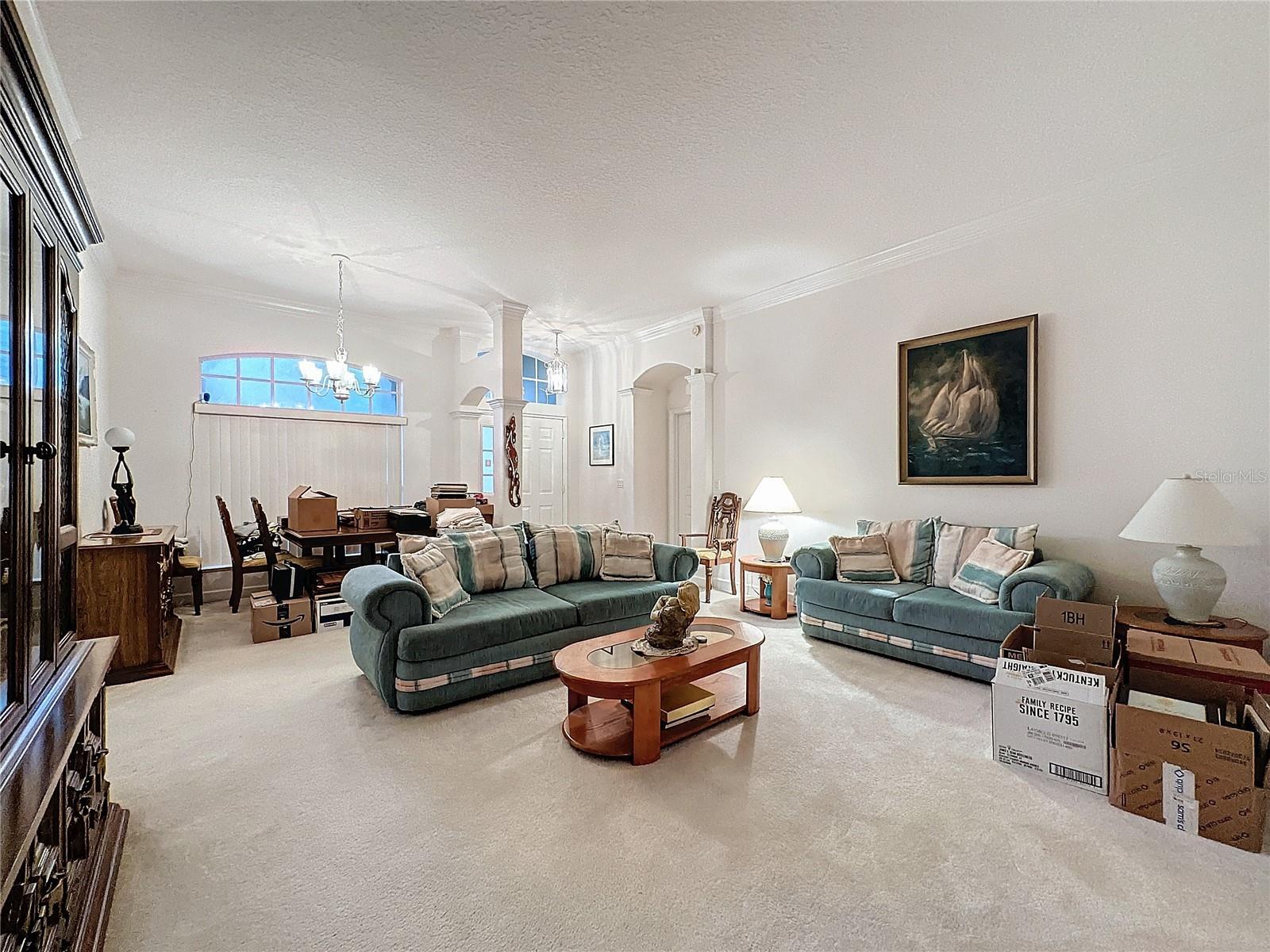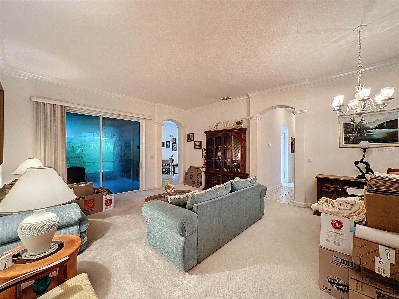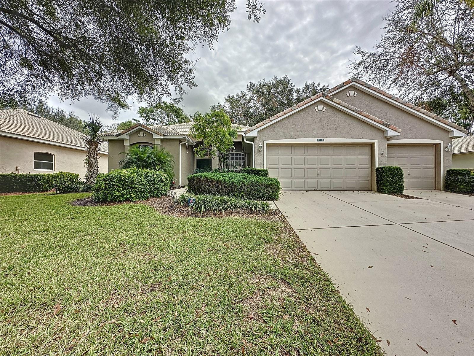 Welcome to Kings Ridge Golfing Community. This home is located in the Hamptons of Kings Ridge. Nottingham Model from the Castle Series. 3 bedrooms, walk in closets, 2 baths, family room, breakfast room off kitchen, dining room, covered lanai and 3 car garage. Enough room for your cars and your golf cart. Kings Ridge has a 24 hr. guarded gate, it is a highly sought after 55+ young community! Located in the beautiful hills of Clermont. Well maintained and conveniently located near all. The HOA fees include the multi million dollar clubhouse. 3 pools, 2 spas, pickle ball and tennis courts, classes, clubs to join, bingo, movies, etc. Lawn maintenance, basic cable and internet all included. Hop on your golf cart for trip to the local shopping center, grocery shopping, banks, restaurants, Dr. offices, hair salons, Starbucks and more. Enjoy a day at the pool or a trip to the local attractions like Disney, Sea World, Universal, NASA Kennedy Space Center, world famous hopping or a trip to one of the beautiful Florida beaches on either coast. Clermont is centrally located to it all. Orlando airport is only 45 minutes from Kings Ridge. Come live the good life at Kings Ridge and see what you have been missing.