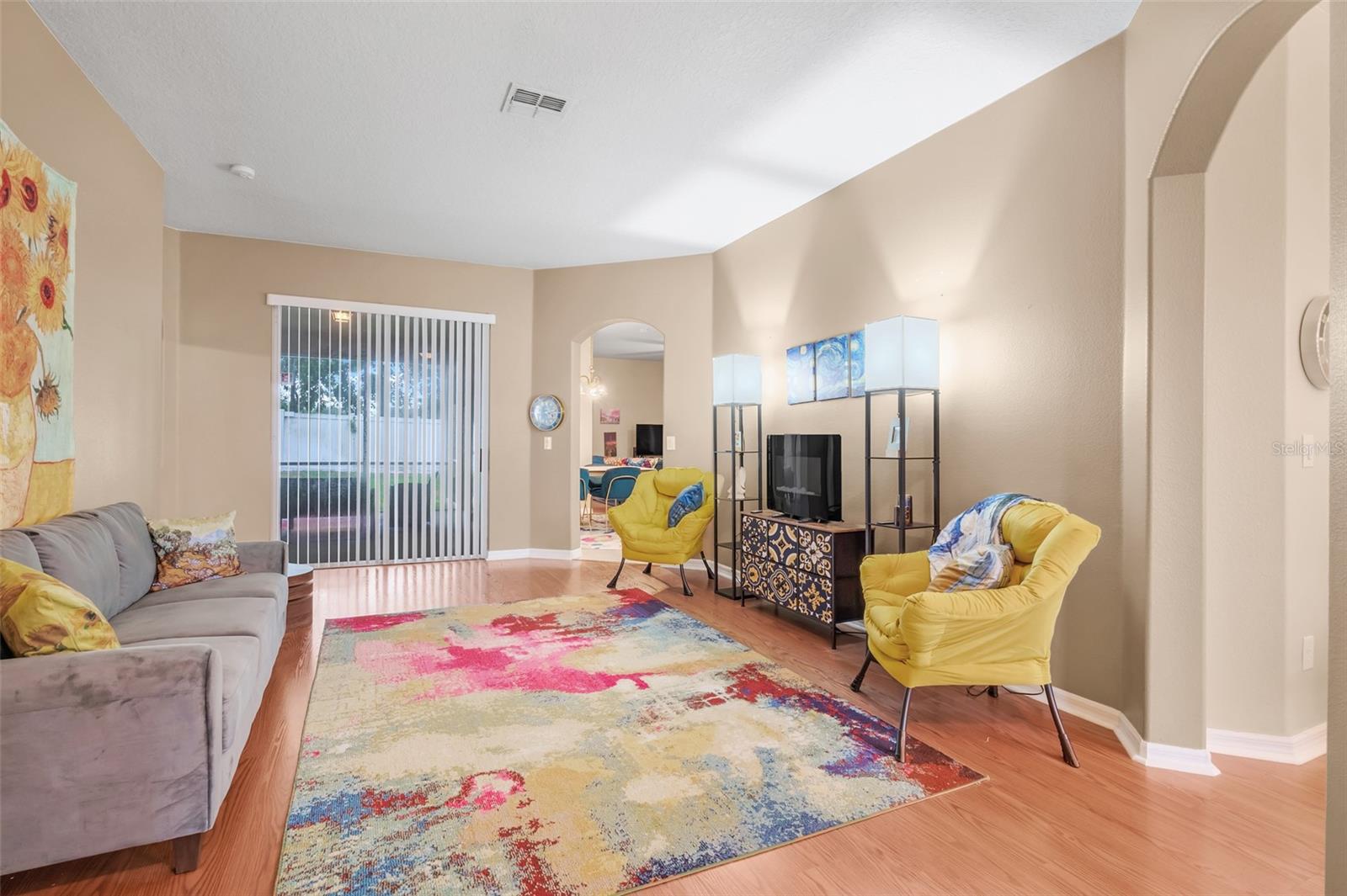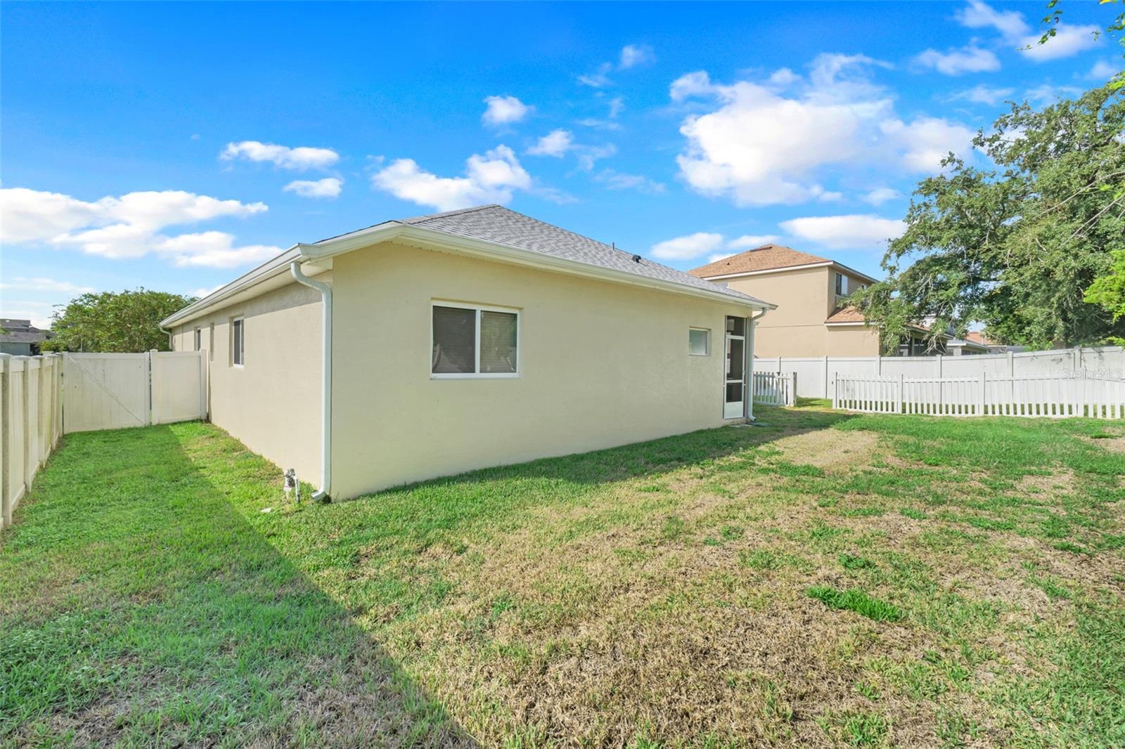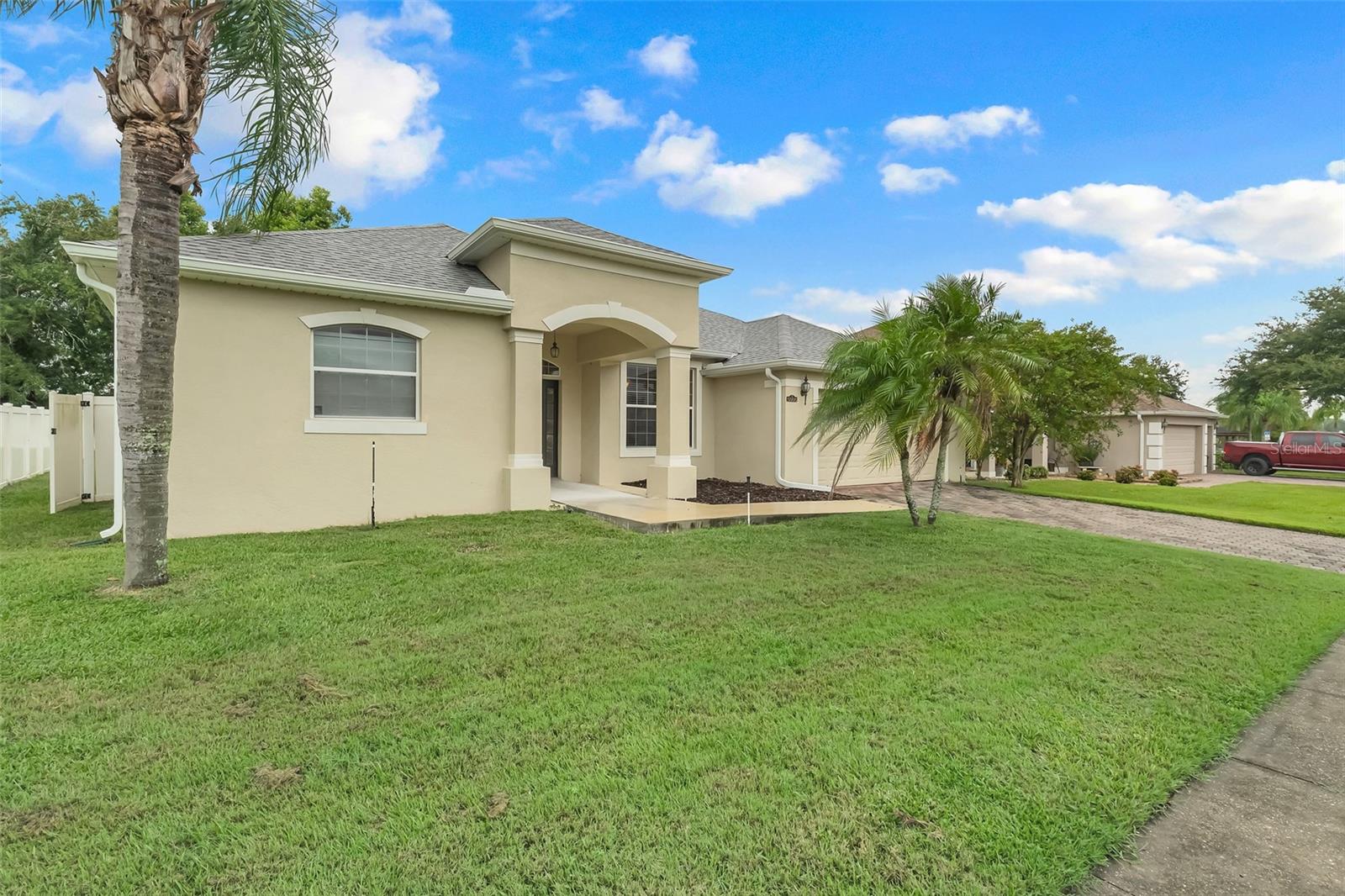 Welcome to this beautifully maintained 4-bedroom, 3-bathroom home, offering a perfect blend of style and functionality! Located on a peaceful lot with NO REAR NEIGHBORS, this home provides exceptional privacy and tranquil views. As you pull into the paver driveway, you'll instantly notice the charming curb appeal. No steps to enter, a new sloped entry way to accommodate wheelchair access. HANDICAP ACCESSIBLE ENTRANCE. Make your way inside to a spacious and inviting interior featuring a split floor plan that offers both privacy and convenience. The formal living and dining areas are perfect for entertaining, while the modern kitchen, complete with stainless steel appliances, makes meal prep a breeze. The master bedroom is a true retreat, boasting a large sitting area perfect for relaxing or setting up a home office. The en-suite bathroom includes all the luxury touches you’d expect including garden bathtub and split vanities. The home also features a cozy screened-in back porch, perfect for enjoying outdoor living year-round. With a NEW ROOF INSTALLED IN 2023, this home is move-in ready and designed for comfort. With shopping, restaurants, hospitals close by and WITHIN 30 MINUTES to DISNEY WORLD, don’t miss your chance to make this gem your own!