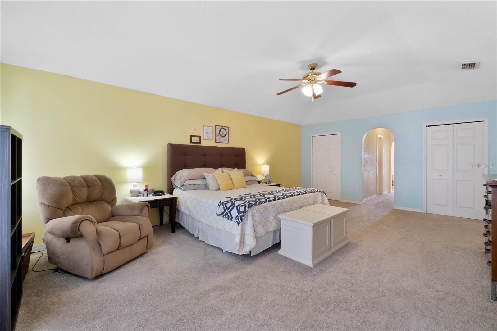 Welcome to this stunning single-family home in the desirable community of Magnolia Park. With no rear neighbors, this spacious residence offers unparalleled privacy and tranquility. Boasting 6 bedrooms and 4.5 bathrooms, the home features a bright and airy interior with high ceilings and an open floor plan. The expansive living room seamlessly connects to the family room, creating a perfect space for gatherings. The gourmet kitchen is a chef’s dream, equipped with a center island, solid wood cabinets, and elegant granite countertops. Enjoy the convenience of two primary bedrooms, including a luxurious master suite on the main floor with an ensuite bath, walk-in closet, separate shower stall, and a relaxing garden tub. An additional ensuite master bedroom is located upstairs. One of the bedrooms is thoughtfully converted into an office, and a versatile loft on the second floor offers extra living space. Step outside to the covered lanai, ideal for outdoor entertaining. Additional upgrades include a roof replacement in 2018 and a whisper-quiet garage door opener for added convenience. This home combines style, comfort, and functionality, making it the perfect place to call home. Don’t miss this chance to make this exceptional home yours—schedule a viewing today!