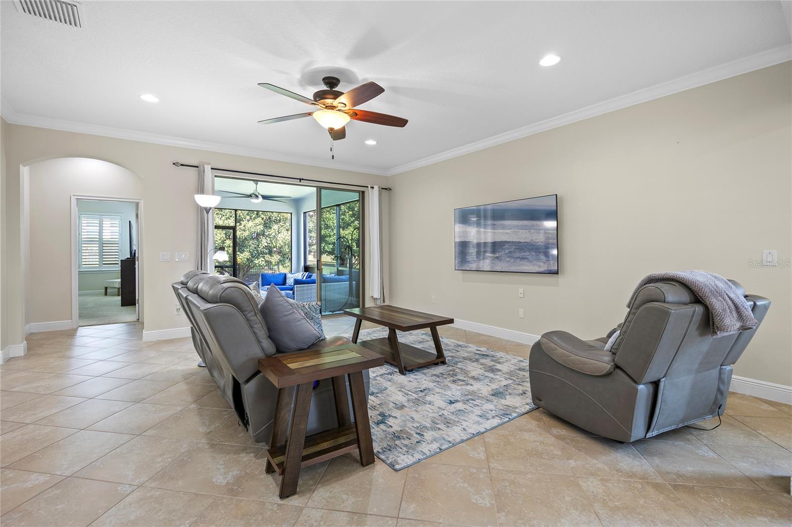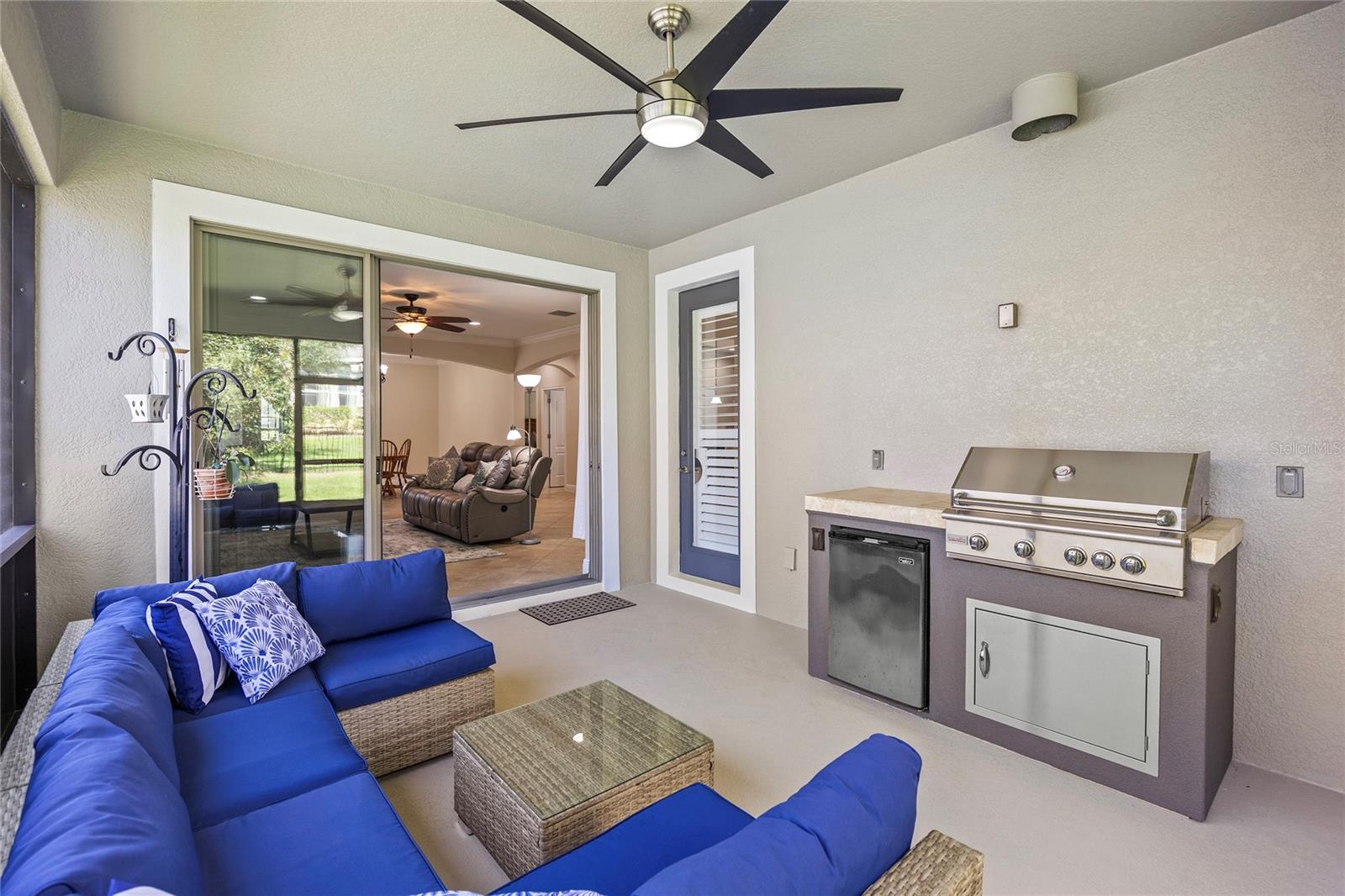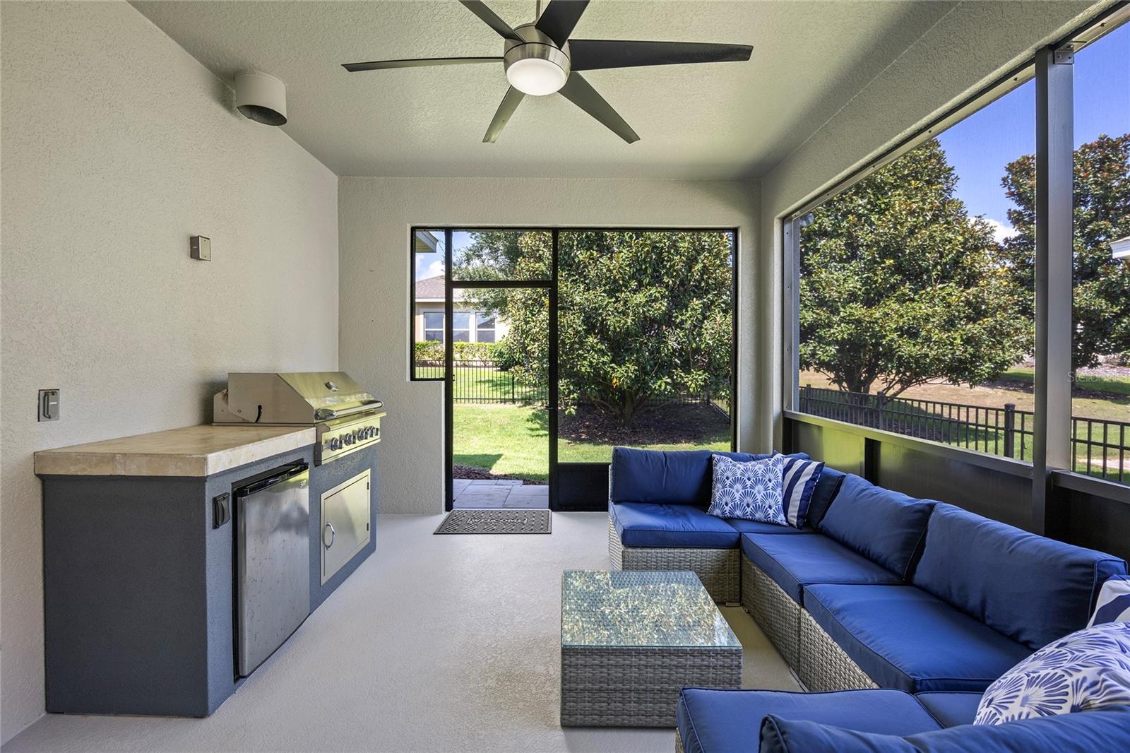 Come and see everything this exclusive 55+ gated community Esplanade at Highland Ranch has to offer. As you enter through the gates you will notice all the well kept manicured lawns and the pride of home ownership. Pulling up the driveway please note the fully refreshed landscaping along with the screened in front lanai. This Bergamo model offers 2 bedrooms and 2 full baths. Entering the home you will appreciate the open concept floor plan. Kitchen features 42" cabinets, granite countertops, stainless steel appliances, new refrigerator, under cabinet lighting, walk in pantry, pendant lighting and best of all a GAS stove! Enjoy your holidays and family get togethers in your formal dining room with upgraded tray ceiling. The primary bedroom is just off the great room with the ensuite bathroom featuring dual vanities, granite countertops, LED backlit mirror, walk-in shower, and an oversized walk-in closet. The second bedroom is located down the hall which features an oversized walk-in closet. Enjoy the evenings taking advantage of your outdoor kitchen grilling dinner in the screened lanai. Additional upgrades to the home include exterior, interior paint and a fully fenced backyard. RESORT STYLE amenities include Clubhouse, Pool, Resistance Pool, Spa, Pickle Ball, Bocce Courts, Tennis Courts, Fire Pit, Billards, Movement Studio, Clubs and tons of Activites. This community is located close to restaurants, shops, hospitals, walking and biking trails and is just a few minutes off the turnpike for a short drive to Orlando. This home is move in ready! Don't miss out! Call today to set up your showing.