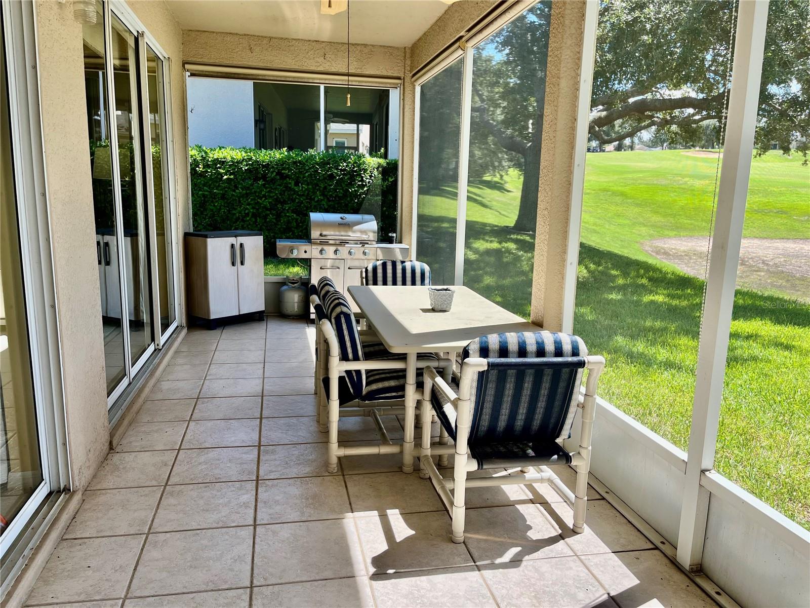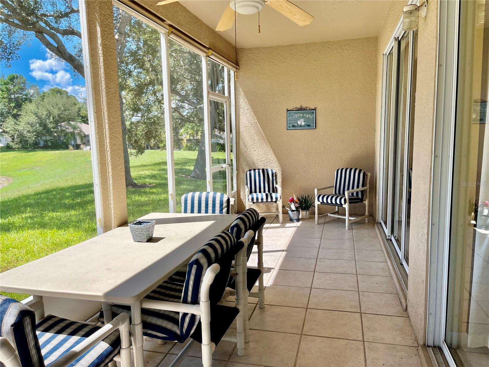 Come to Summit Greens, a 55+ community and view this excellent choice right on the golf course. This home has granite counters in the kitchen with upgraded stove and microwave. There is a TV mounted on the wall in the kitchen that stays. You will love the pull-out shelves in the pantry which gives you so much more storage. A/C 2014, Roof 2016 and Water Heater 2023. The main bedroom as well as the 2nd bedroom and den have laminate floors. This home boast to have no carpet at all. The furniture is available for purchase. The other rooms in the home have ceramic tile. You will enjoy sitting on your screened lanai overlooking the golf course. If it gets too sunny, just pull down the custom shades on the lanai. Relax at home or participate in the many activities in Summit Greens.