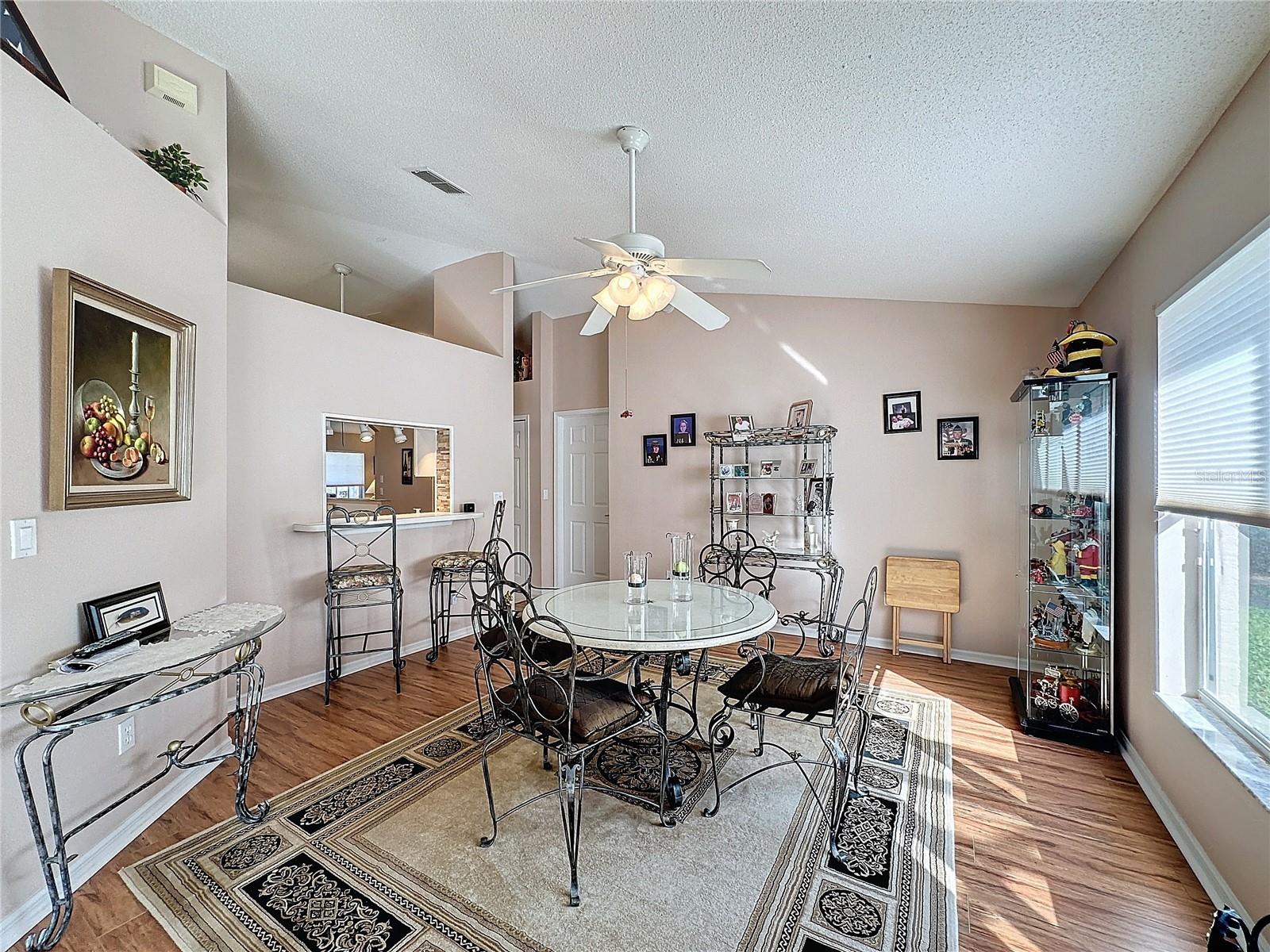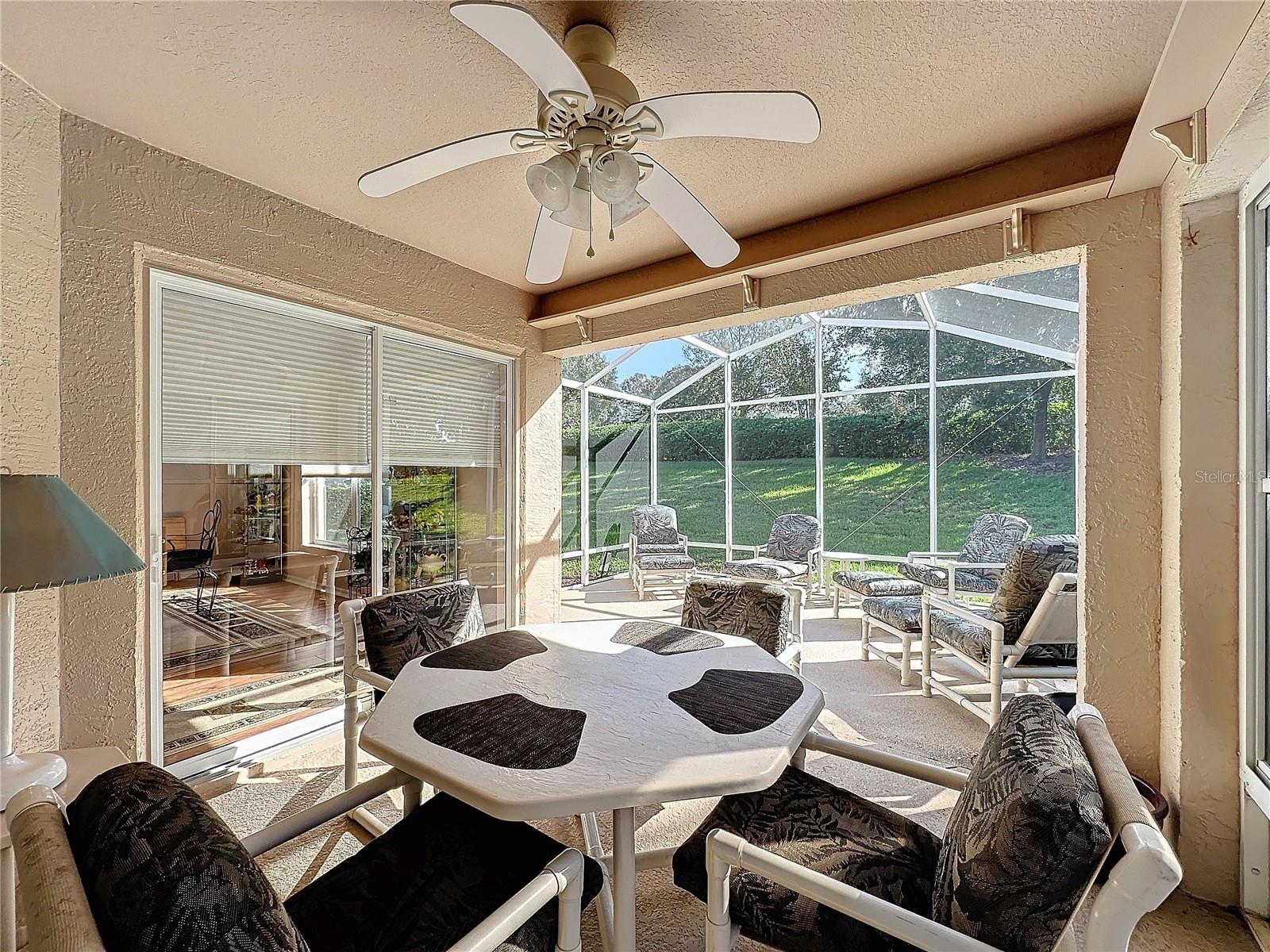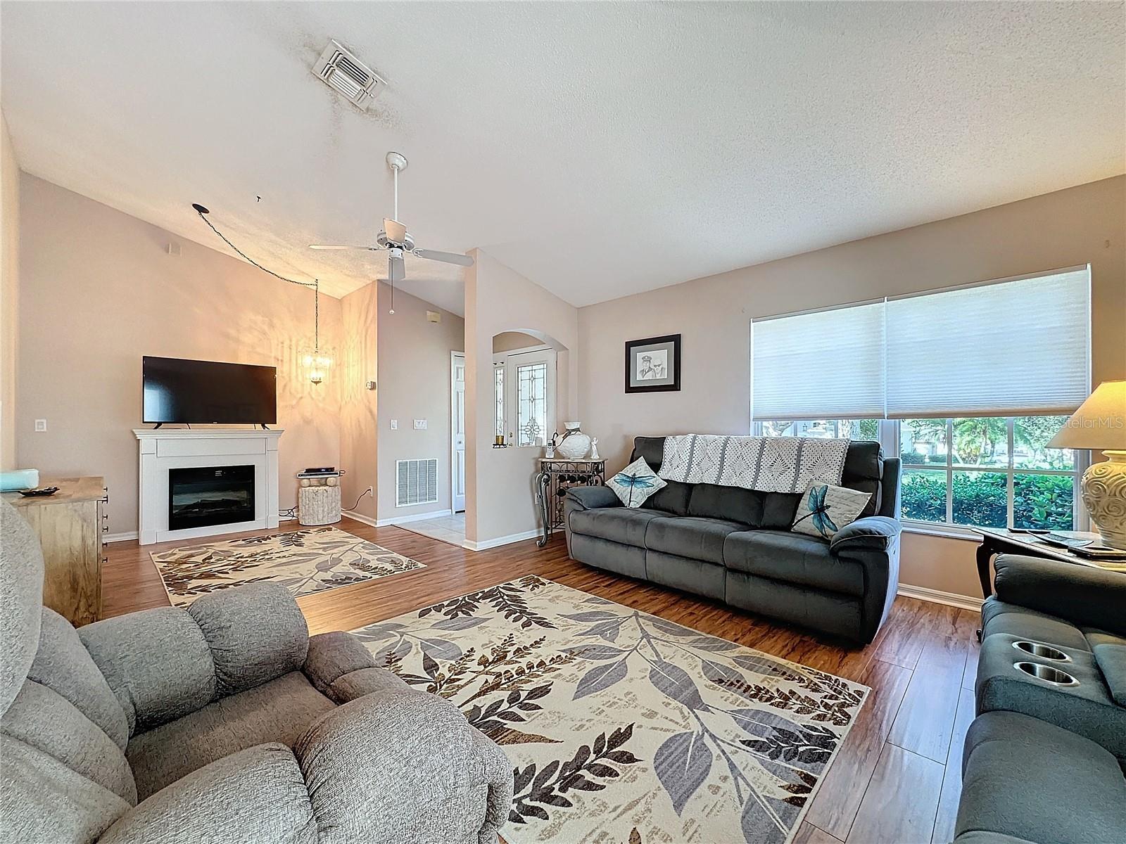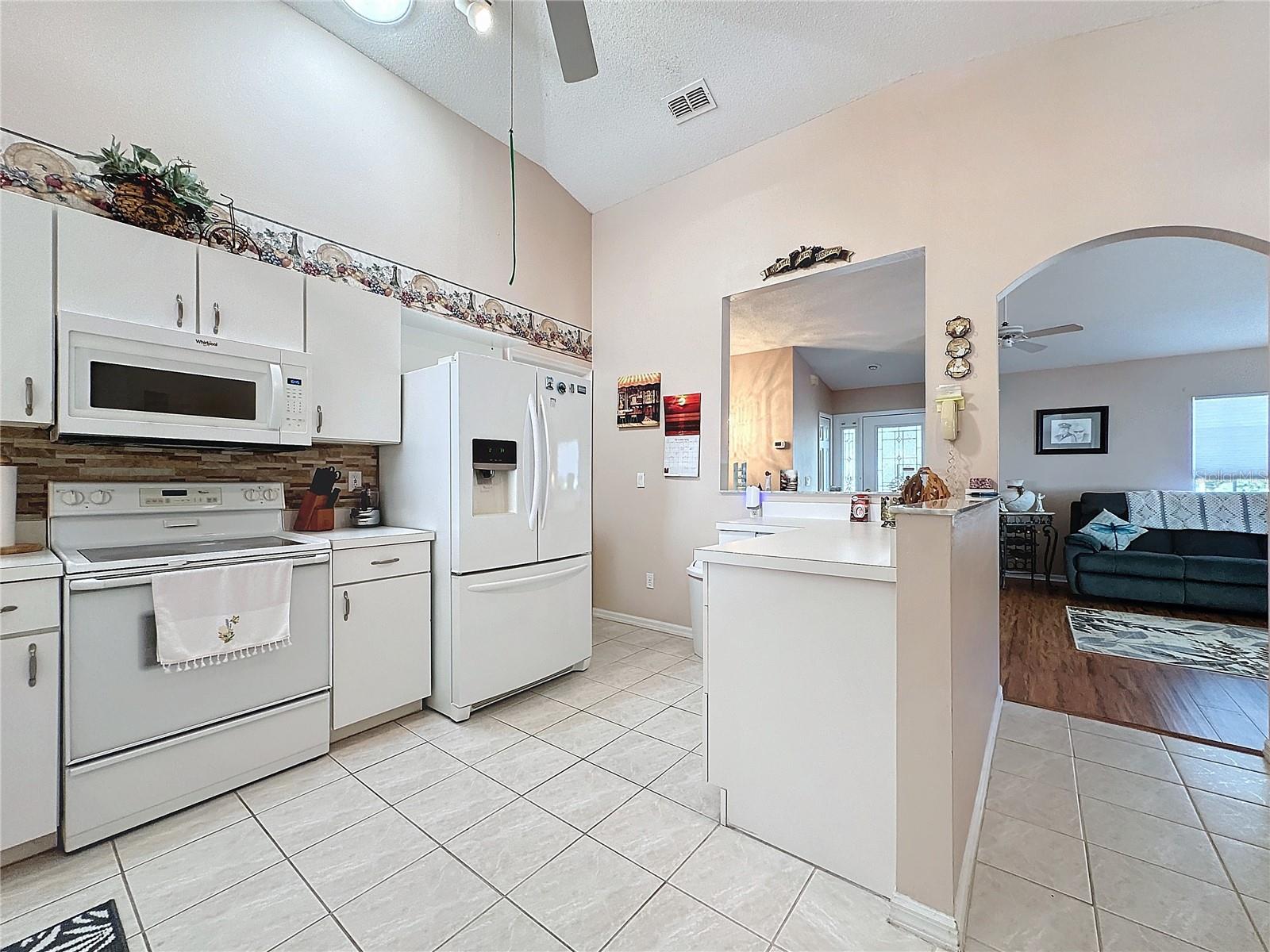 REDUCED $10,000. Very rare Devon model with private back yard. Home has 1350 SF, 2 BD/2 BA, 1 1/2 car garage and additional screen enclosure in back. Roof was replaced in Oct 2015. The kitchen area now has a window opening to the Living/Great room area which makes for a more open floor plan. A solar tube has been installed in the kitchen area. The original Family room on the floor plan. is now the Dining room. Laminate flooring was installed in the front Living /Great Room area and also the Dining room. Levolor style blinds added throughout the home. The 2nd Bathroom has been remodeled. There is a separate laundry room off the kitchen (washer & dryer remain). The Primary bath has a walk in shower. Buyer will have first opportunity to purchase the golf cart. Home comes with a transferrable Stark termite bond. Located in Kings Ridge which is a 55+ gated golf community in Clermont FL. Enjoy the Kings Ridge Royal life style in the multimillion $ clubhouse with 3 heated pools, spas, tennis & pickle ball courts, billiards, shuffle board, shows, Bingo, cards and clubs galore. The monthly maintenance fees include: lawn maintenance including trimming of shrubs, care of irrigation system & irrigation water, Spectrum for internet & cable TV, maintenance of roads and outside painting of home every 7 years. Take your golf cart to the Kings Ridge Plaza where you can do your grocery shopping, banking or dine out..