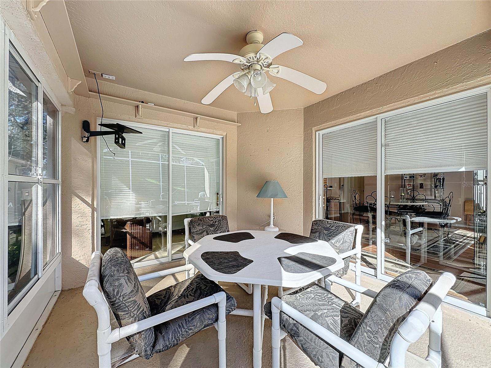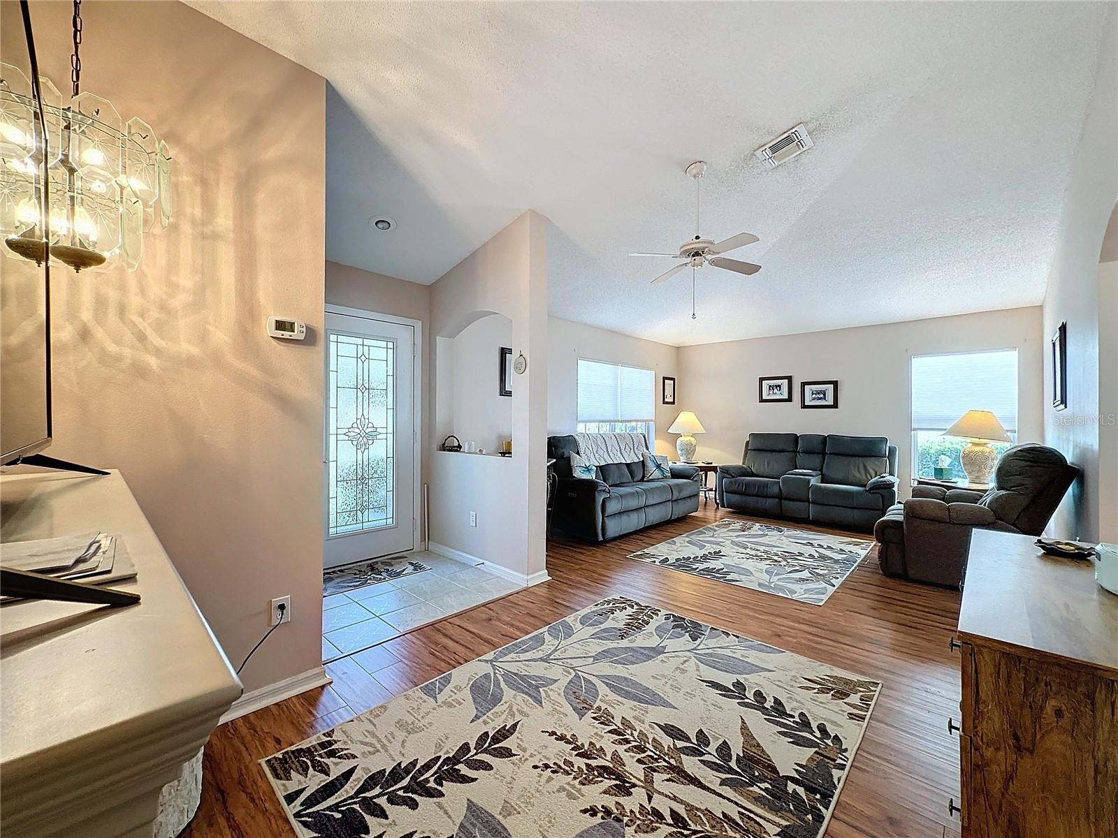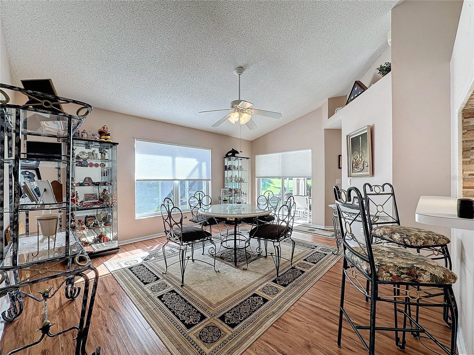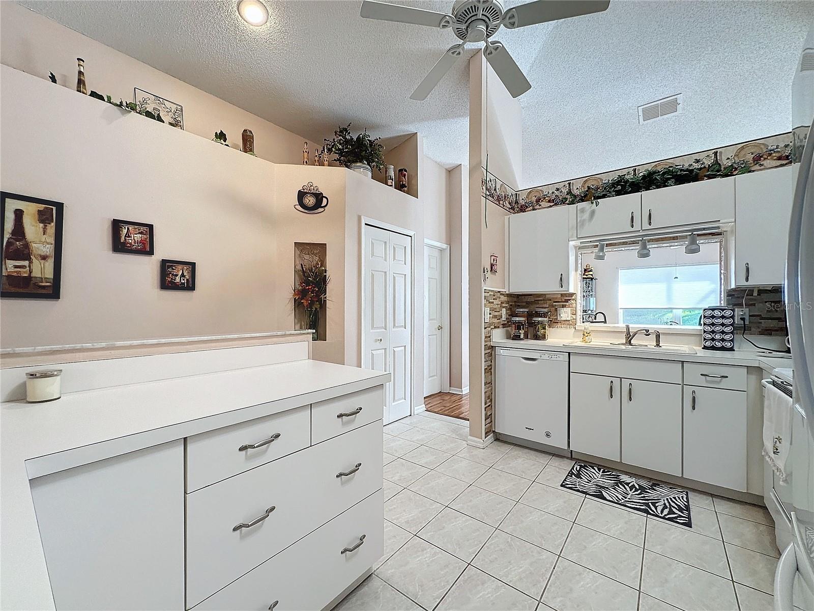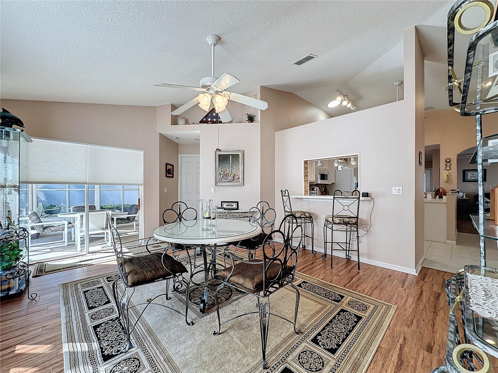 REDUCED $10,000. Very rare Devon model with private back yard. Home has 1350 SF, 2 BD/2 BA, 1 1/2 car garage and additional screen enclosure in back. Roof was replaced in Oct 2015. The kitchen area now has a window opening to the Living/Great room area which makes for a more open floor plan. A solar tube has been installed in the kitchen area. The original Family room on the floor plan. is now the Dining room. Laminate flooring was installed in the front Living /Great Room area and also the Dining room. Levolor style blinds added throughout the home. The 2nd Bathroom has been remodeled. There is a separate laundry room off the kitchen (washer & dryer remain). The Primary bath has a walk in shower. Buyer will have first opportunity to purchase the golf cart. Home comes with a transferrable Stark termite bond. Located in Kings Ridge which is a 55+ gated golf community in Clermont FL. Enjoy the Kings Ridge Royal life style in the multimillion $ clubhouse with 3 heated pools, spas, tennis & pickle ball courts, billiards, shuffle board, shows, Bingo, cards and clubs galore. The monthly maintenance fees include: lawn maintenance including trimming of shrubs, care of irrigation system & irrigation water, Spectrum for internet & cable TV, maintenance of roads and outside painting of home every 7 years. Take your golf cart to the Kings Ridge Plaza where you can do your grocery shopping, banking or dine out..