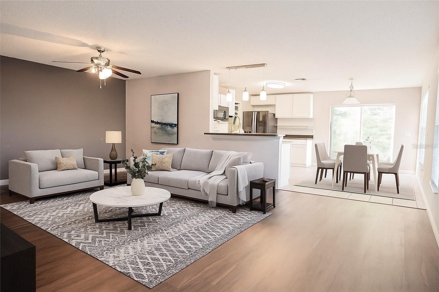One or more photo(s) has been virtually staged. **Move-In Ready 3BR/2BA Single-Level Home – 1,552?Sq?Ft • Solar • Private Master • Large Yard • Clermont, FL Clermont – “The Gem of the Hills,” just 20 miles west of Orlando and minutes from Disney. Known for its rolling hills, scenic lakes, top-rated schools, extensive walking/biking trails (South Lake Trail, Lake Minneola), and vibrant downtown near Citrus Tower. **Property Highlights** **1,552?Sq?Ft** single-level layout with a bright, open-concept design * Spacious living room with blinds, ceiling fan, and direct flow to kitchen and dining * Kitchen features: raised breakfast bar, eat-in area with patio doors, pantry, and in-kitchen laundry with washer & dryer * All appliances included– refrigerator, range, microwave, dishwasher, clothes washer and dryer * Private master suite with full en-suite bath and large walk-in closet * Two additional generously sized bedrooms with ample closet space for guests, hobbies, or home office **Comfort & Efficiency** * Central A/C & heating, plus ceiling fans throughout * Solar panels installed for year-round energy savings, eliminating unpredictable monthly energy bills * Durable, low-maintenance tile and new laminate flooring **Exterior & Garage** * Oversized 2-car garage with ample space for parking, storage, or hobbies * Spacious backyard ready for your landscaping ideas – patio, garden, play area **Move-In Ready** * Thoughtful design and quality updates throughout * Turn-key condition with no major repairs needed **Why You'll Love This Home** Located in the heart of Clermont, this home offers more than just comfort — it's a lifestyle. Enjoy access to historic Downtown Clermont, Waterfront Park, local shops, wineries, and the Citrus Tower. Outdoor enthusiasts will appreciate miles of bike trails and proximity to Lake Louisa State Park. School District: Close to top-rated Lake County public schools Commuting & Amenities: Easy access to SR-50, US-27, Florida’s Turnpike, and LakeXpress transit. Minutes away from South Lake Hospital, major retail stores, popular dining, and all the conveniences of suburban Clermont. 30 minutes to Walt Disney World Resort. 35-40 minutes to Universal Orlando Resort. **Ideal for Any Lifestyle** Its single-level layout and low-maintenance finishes make it Perfect for downsizing, retirement, starting a family or anyone seeking a home in a growing, vibrant community.