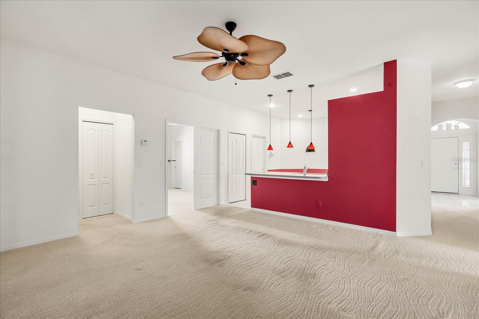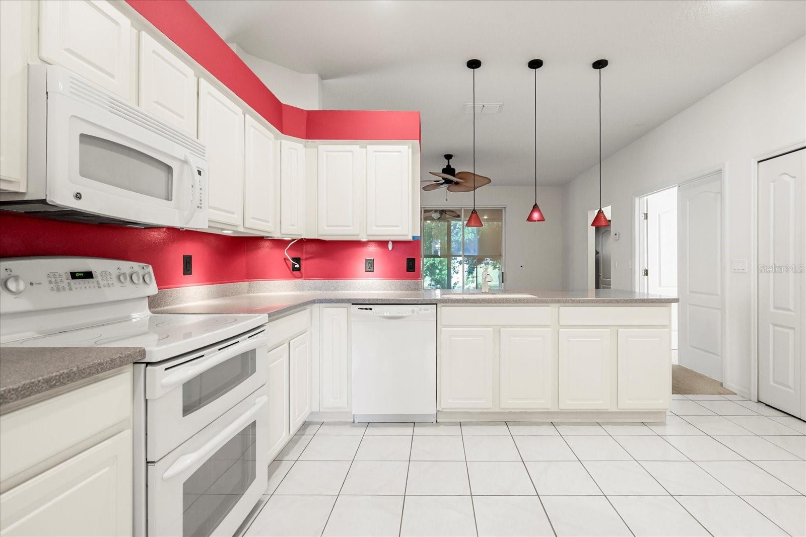 Welcome to your serene retreat in the heart of Kings Ridge, an active 55+ resort-style guard-gated community! This spacious 3-bedroom, 2-bath home, featuring the sought-after St. Clair King Arthur Series floor plan, offers 1,930 sq ft of well-designed living space with an upgraded brick paver driveway. Nestled near the King’s Ridge Golf Course, this home not only provides a beautiful residence but a vibrant lifestyle full of convenience and comfort. The home faces East and has a spacious front porch, perfect for enjoying the sunrise with your morning coffee. As you enter the home you will find a formal dining room and formal living room. The kitchen offers lots of cabinets, space for a small table & ample counter space including a breakfast bar area. There's a beautiful view of the golf course from the kitchen and living room area. A bedroom/den/office is next to the living room and is separated by double doors, great for privacy if you need it. The second bedroom is adject to the guest bathroom and can be considered an en-suite. The primary bedroom is spacious, offers two closets and has a sliding glass door that leads out to the covered screened in lanai. The primary bathroom has a walk-in closet, dual sinks, a walk-in shower, garden tub, water closet and linen closet. The screened in lanai is ideal for relaxing and/or entertaining your friends all while overlooking the beautiful Kings Ridge Golf Course. This home also includes a recent upgrade with solar film on the windows, which reduces heat and helps save money on electric bills, enhancing both comfort and efficiency. Kings Ridge offers an unparalleled, golf cart-friendly community where residents can enjoy seamless access to nearby amenities, including Publix, restaurants, salons, pet grooming, banking, UPS, and even an ice cream shop! Designed for those seeking an active and social lifestyle, this community boasts two golf courses, three pools, hot and cold tubs, dry saunas, steam rooms, two gyms, tennis courts, pickleball, bocce ball, shuffleboard, and basketball courts. The multi-million-dollar clubhouse serves as the heart of the community, featuring entertainment, dances, social events, games, and a variety of travel clubs. Here, the lifestyle is easy, inviting, and filled with new opportunities for connection and recreation. Whether you’re relaxing in one of the pools, golfing, or enjoying a social evening at the clubhouse, Kings Ridge is a community where every day feels like a vacation. The sellers are offering a carpet update incentive of $5,000. Come and see this beautiful home!