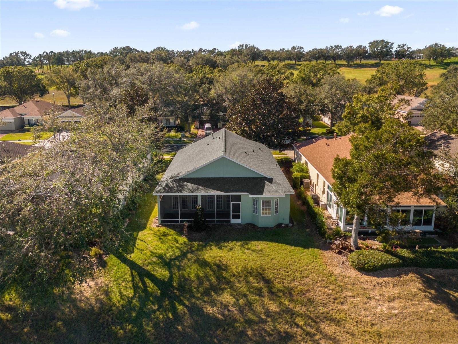 GOREGOUS view of the 7th Fairway of the Clermont National golf course. This one-of-a-kind home is ADA compliant and has been enlarged like no other. The entire interior walls have been freshly painted a beautiful neutral color. Lanai floor and garage have also been freshly painted, for that clean new look. There are 2 bedrooms, 2 baths, and a den (with built-in desk), 2 car 3’ extended garage, double pane windows, has a beautiful front door with a glass side panel. The kitchen has a tile floor, 42” Oak cabinets with pull-out drawers, refrigerator and microwave are 1 year old, gas stove, double closet pantry, porcelain double sink, and eat-in kitchenette. Inside laundry room with washer, dryer, & extra shelving for storage, and has a convenient walk through. The primary bedroom has engineered wood flooring, a bay window, 2 large walk-in closets, and primary bath has a private commode, walk-in shower, garden tub and double vanities. 2nd bedroom and den are carpeted, and den has a bay window. Dining room has a stunning chandelier. Living room has the breath-taking view of the golf course and an electric fireplace (with built-ins around it) for those chilly nights. Nine feet of French doors overlook the screened Lanai with painted floors, a natural gas hook-up for a grill, also 2 solid walls for privacy. Water heater new April 2024, AC 6 years old, new comfort height toilet in Master bathroom. NEW roof up to code in 2024, 4’ extension on length of driveway (can park 4 cars in driveway), 3’ extension on foyer and 3’ extension on den and a bay window in the 2nd bedroom. This community has a fabulous 28,000 sq. ft. clubhouse incl. 8 clay lit tennis courts, 7 new pickleball courts, state-of-the-art fitness center, indoor/outdoor heated swimming pools, billiard room, 2 card rooms & an arts & craft room with its own kiln, ballroom with stage and dance floor, 19th hole with movie & book library, shuffleboard, & bocce. Great location, a bonus! Near the turnpike, bike trail, shopping, hospital, library, Restaurants, many lakes, Disney & Orlando airport (where you will pick up all your guests). The community is very friendly, active and golf cart friendly, the resort lifestyle you have been waiting for. There is 18-hole golf course, a driving range, “THE VIEW” has a restaurant and bar. HOA includes 24 hr. manned gate, all clubhouse facilities, all yard maintenance, cable tv and high speed internet. The restaurant is connected to the golf course with no financial liability to SG residents. The builder was "Levitt & Son's" with 769 single family homes. There is a onetime capital contribution of $1,738.30 charged to the buyer at closing. Come see Florida's best kept secret, in the hills of Clermont and the center of the state, safe from hurricanes. Priced to sell, call today for an appointment.