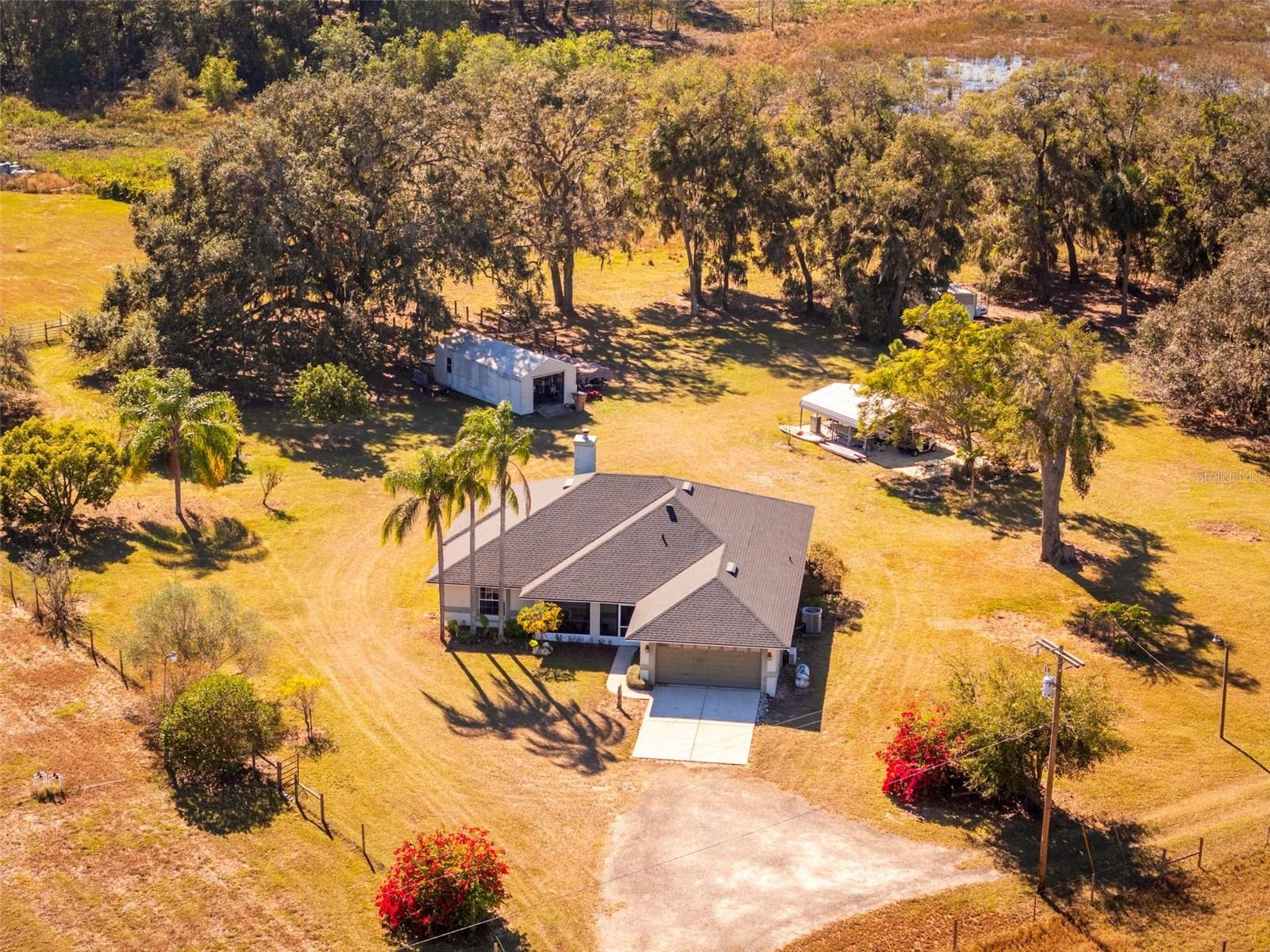 Bring your imagination when you come see this 8 full acres of Florida beauty. This property is absolutely gorgeous with its majestic oaks, fruit and citrus trees, (guava, peach, fig, lemon, key lime, avocado, cumquat, blackberries, figs, and more) with its picturesque sunsets overlooking the marsh behind the property. There are chicken coops for the egg enthusiast and even fenced off pastures and pens for larger farm animals and gardens if you desire. The potential of this property is endless and something you will struggle to find so close to the conveniences of shopping and dining, with the added perk of being so close to the turnpike and other major roadways. It sits just on the outskirts of Clermont and Minneola, a hot and up and coming area. This is country living at it’s best with privacy and seclusion nestled between Montverde (Montverde Academy is just 3 miles away) and Howey-in-the-Hills where million dollar homes and estates are prevalent. Green Mountain Scenic Overlook and the Ferndale Preserve are just around the corner, so if you’re a biking or outdoor enthusiast you will love this location. The home is a 1998, 3 bedroom 2 bath, 1,767 sqft open concept ranch with a newer roof (2021) and water heater. The kitchen is equipped with new appliances and a pantry. It opens up to a dining area and great room. It also has a full length screened porch on the back which has access to the master bedroom. This would be a great place to watch the magnificent sunsets. The owner enclosed part of the garage to add an office with its own mini split AC unit. Presently there are window units added for cooling but the home does have (non working) central AC. (We have reflected that in the price). The wood floors were recently added and the owner has done lots of projects around the house to bring it up to date and to show off its personality. There is a gas fireplace for those chilly nights or you could also sit under the stars and warm up around the outside fire pit that sits next to a covered patio or carport. Presently, the owner is using this area as an outdoor summer kitchen with running hot water and with all the cooking needs to host a fun outdoor entertaining event. There is ample room to add a pool if you desire. The property has a well with a well house and a large (owned) water softening system. There is also separate irrigation for the fenced garden area, which sits in front of the home. There is a large storage unit on the property to store your maintenance equipment and it is wired and equipped with a generator to power the house during outages. Also available with this property is a 32’ camper which is set up and ready to go for those out of town guests. Call to set up an appointment to view this gorgeous property today.