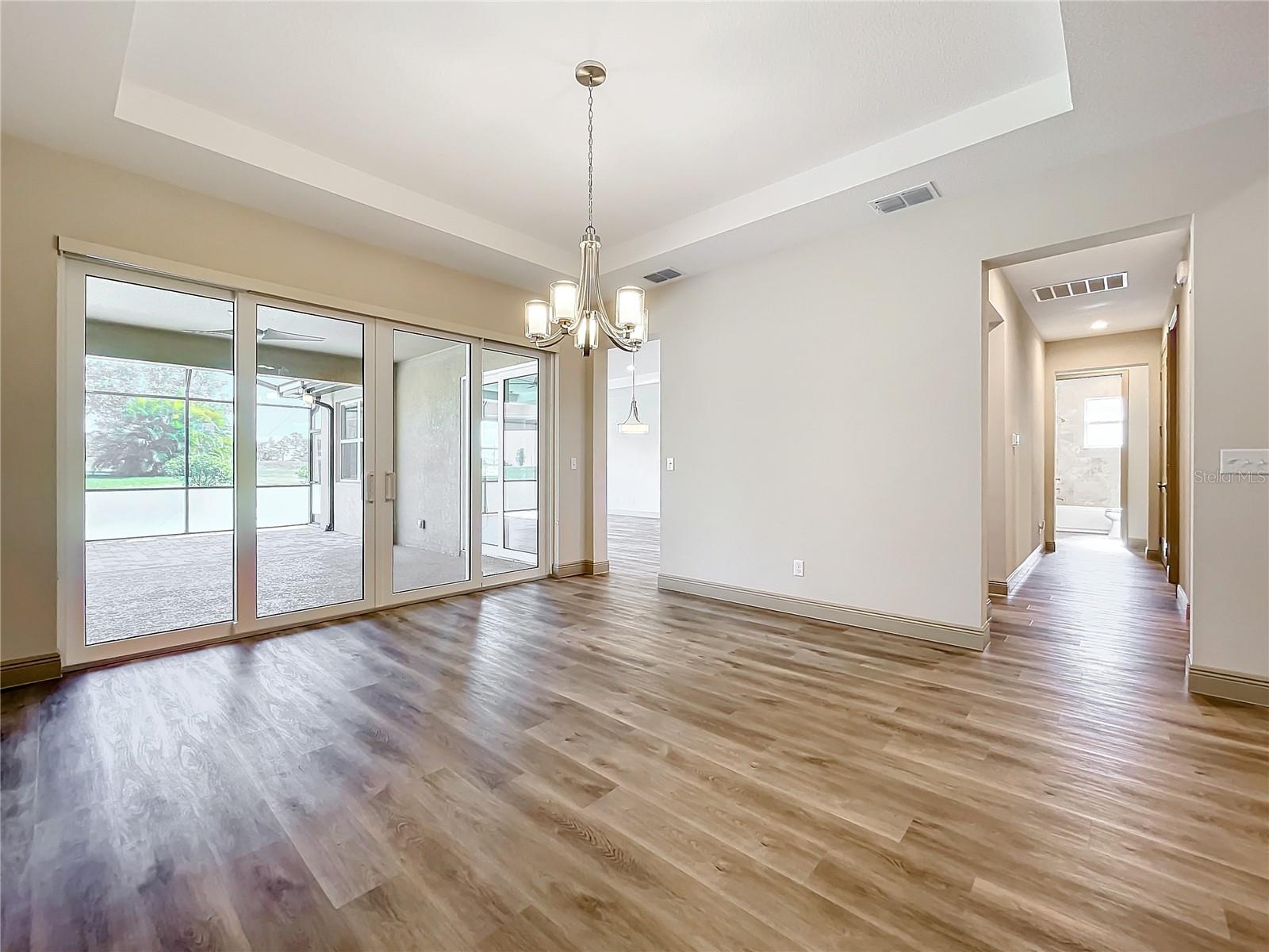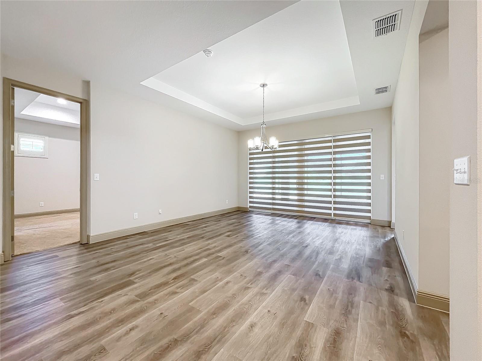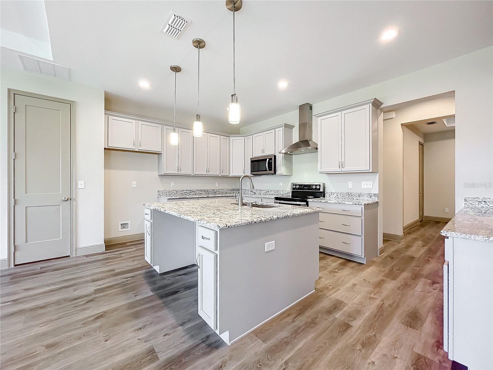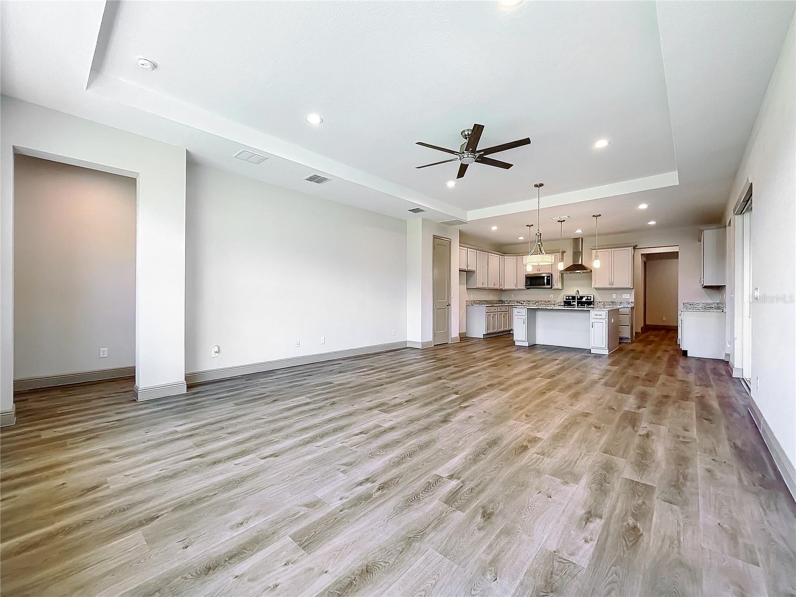 Welcome to this unique extra-large corner semi-custom home featuring four spacious bedrooms and three full bathrooms on a 0.41-acre corner lot. This home offers a blend of luxury and comfort with a versatile office/den, a two-car garage, and additional golf cart or jet ski space. Inside, you'll find luxury vinyl flooring throughout the house, except in the four carpeted bedrooms, glass French doors in the office/den, and ceiling fans. The family room boasts a tray ceiling, ceiling fans, and sliding glass doors leading to a stunning lanai. The kitchen has granite countertops, an island, a double oven range, pendant lighting, abundant cabinet space, a large pantry, and a breakfast bar with an eat-in nook. All bedrooms feature ceiling fans and plantation shutters, with roller shades throughout the rest of the house. The primary suite has a ceiling fan, tray ceiling, his and hers walk-in closets, and an ensuite bathroom with dual sinks, a large shower, a linen closet, and a water closet. The additional bedrooms are carpeted with ceiling fans and spacious closets. Bathroom two has a granite countertop and a tub/shower combo, while bathroom three features a granite countertop and a standalone shower. The extended, covered, and screened lanai has brick pavers and ceiling fans, while the front porch is also screened for added comfort. The garage has an insulated block wall and door with AC installed on the ceiling to maximize space. The laundry room includes a tub and ample shelving. The landscaping is upgraded with various fruit trees, including avocado, lemon, tangerine, mango, and more. The community offers an expansive clubhouse, a private boat ramp, a fishing pier, a playground, a pool, and courts for tennis, pickleball, and basketball. Also, the HOA fee includes the internet and basic cable for up to 3 TVs. Conveniently located close to Downtown Clermont, shopping centers, schools, and major highways, this home offers both luxury and practicality. Schedule your appointment today and make this dream home yours!
