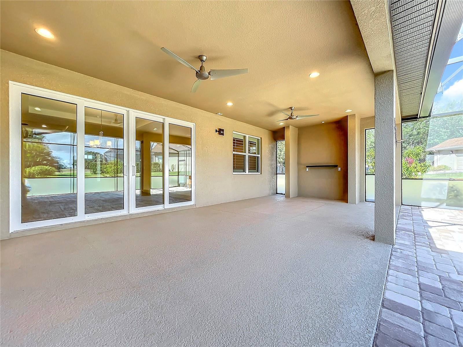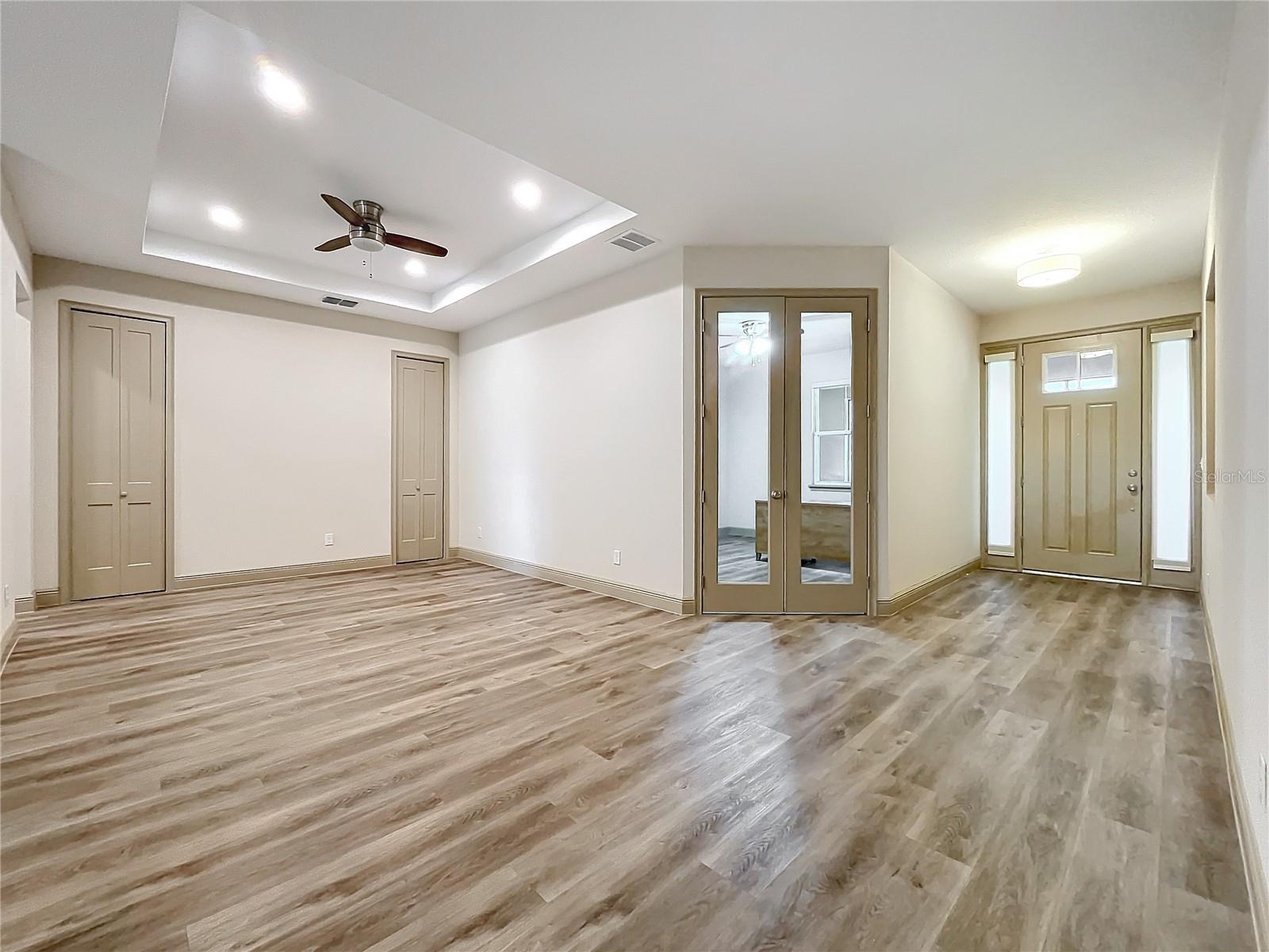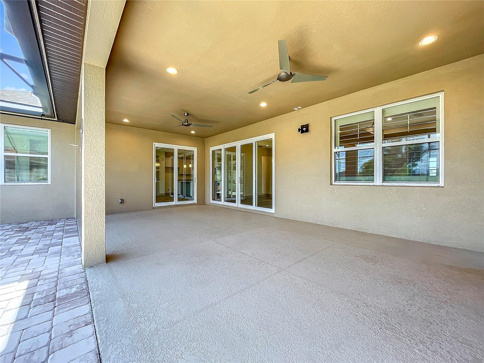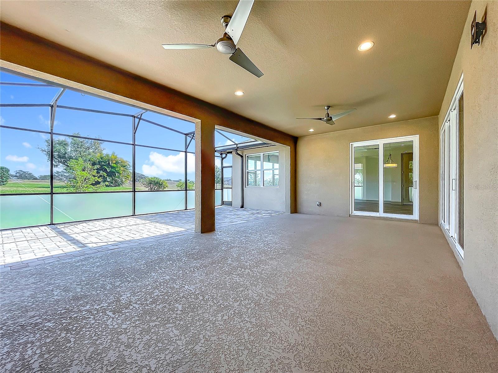 Welcome to this unique extra-large corner semi-custom home featuring four spacious bedrooms and three full bathrooms on a 0.41-acre corner lot. This home offers a blend of luxury and comfort with a versatile office/den, a two-car garage, and additional golf cart or jet ski space. Inside, you'll find luxury vinyl flooring throughout the house, except in the four carpeted bedrooms, glass French doors in the office/den, and ceiling fans. The family room boasts a tray ceiling, ceiling fans, and sliding glass doors leading to a stunning lanai. The kitchen has granite countertops, an island, a double oven range, pendant lighting, abundant cabinet space, a large pantry, and a breakfast bar with an eat-in nook. All bedrooms feature ceiling fans and plantation shutters, with roller shades throughout the rest of the house. The primary suite has a ceiling fan, tray ceiling, his and hers walk-in closets, and an ensuite bathroom with dual sinks, a large shower, a linen closet, and a water closet. The additional bedrooms are carpeted with ceiling fans and spacious closets. Bathroom two has a granite countertop and a tub/shower combo, while bathroom three features a granite countertop and a standalone shower. The extended, covered, and screened lanai has brick pavers and ceiling fans, while the front porch is also screened for added comfort. The garage has an insulated block wall and door with AC installed on the ceiling to maximize space. The laundry room includes a tub and ample shelving. The landscaping is upgraded with various fruit trees, including avocado, lemon, tangerine, mango, and more. The community offers an expansive clubhouse, a private boat ramp, a fishing pier, a playground, a pool, and courts for tennis, pickleball, and basketball. Also, the HOA fee includes the internet and basic cable for up to 3 TVs. Conveniently located close to Downtown Clermont, shopping centers, schools, and major highways, this home offers both luxury and practicality. Schedule your appointment today and make this dream home yours!