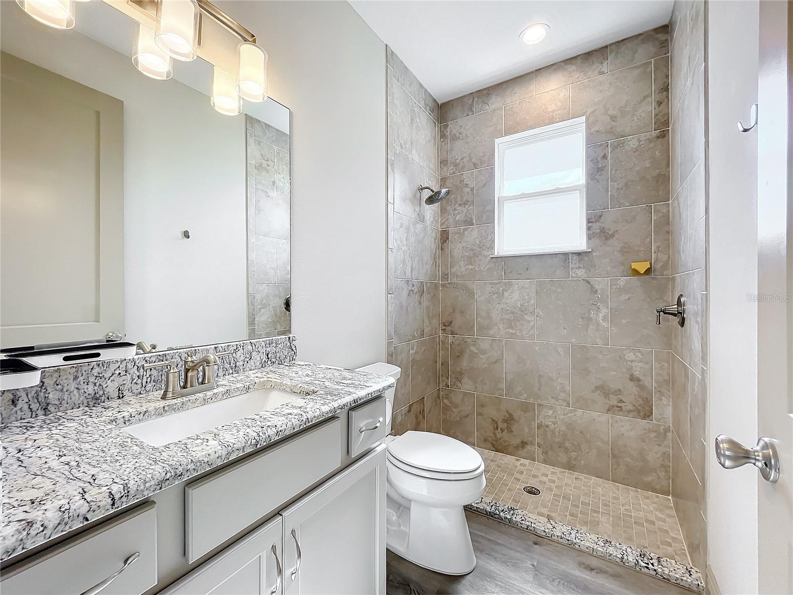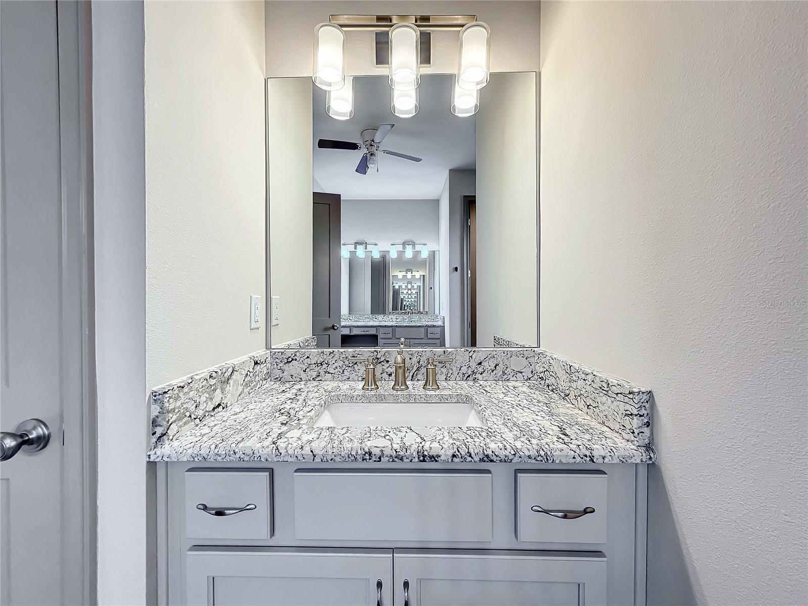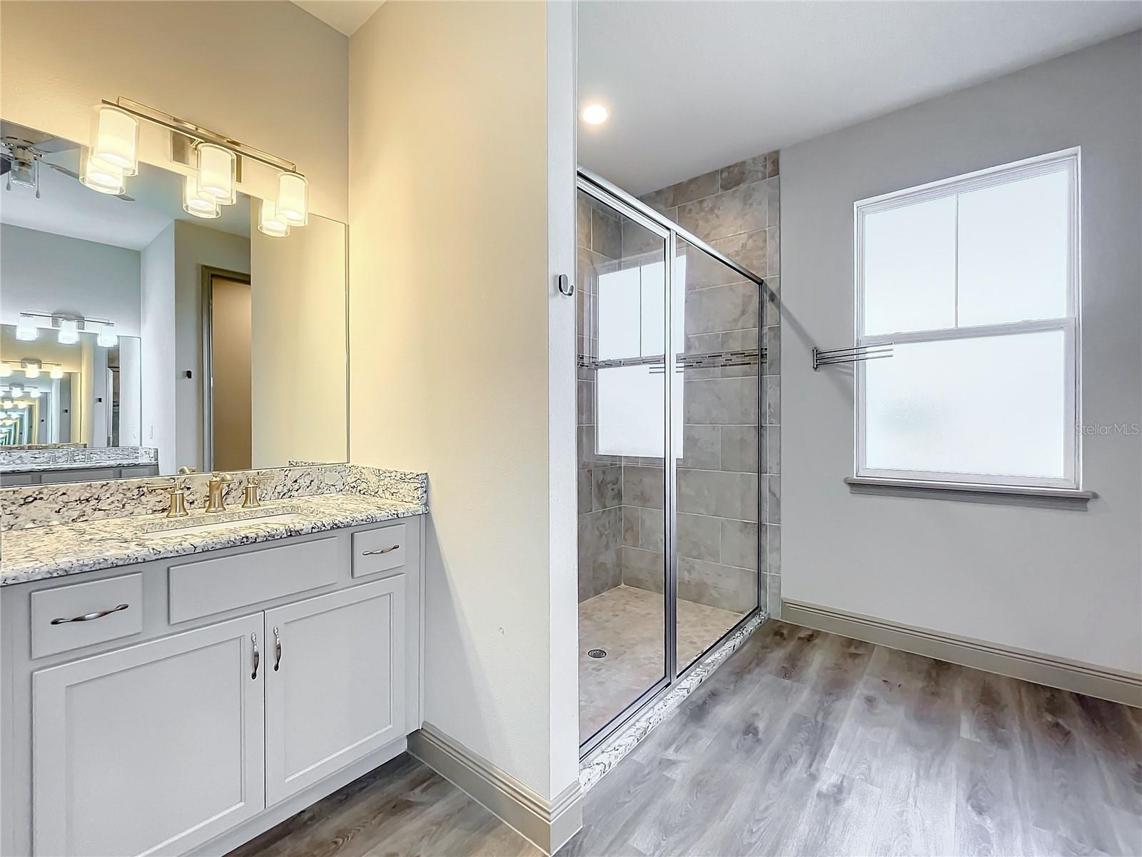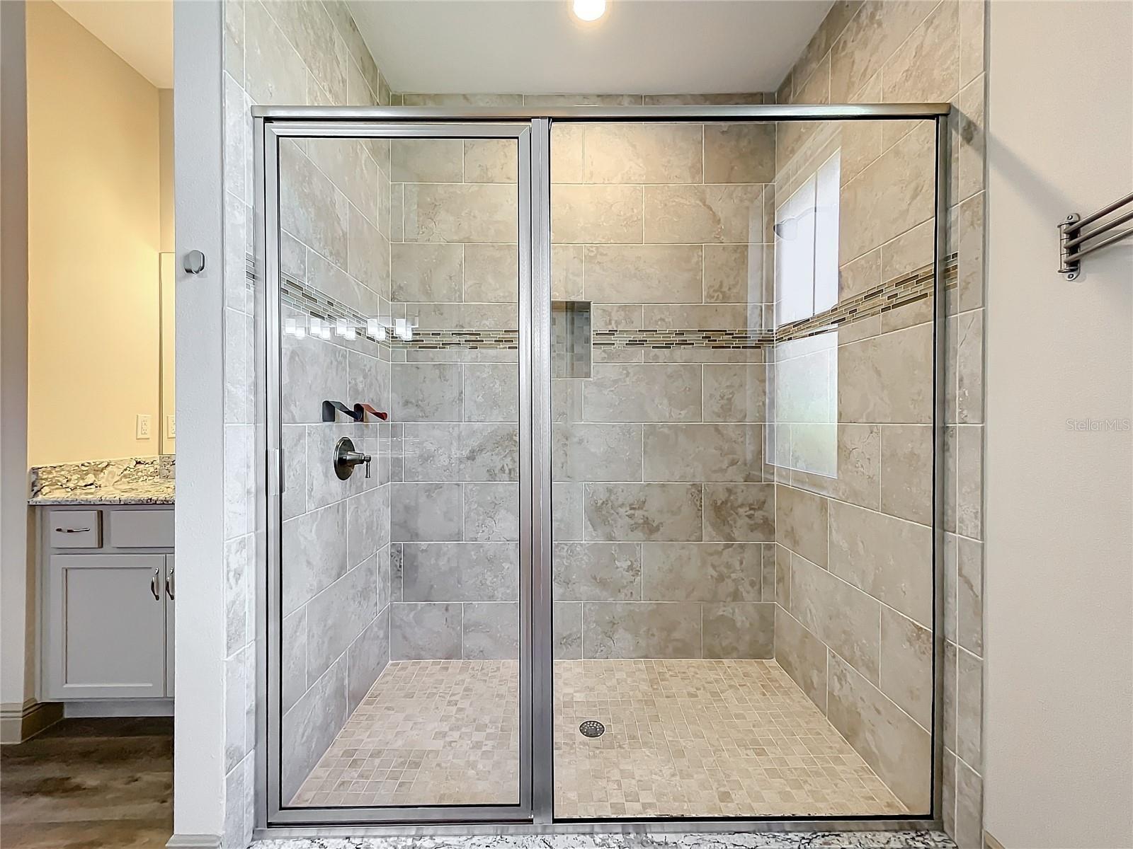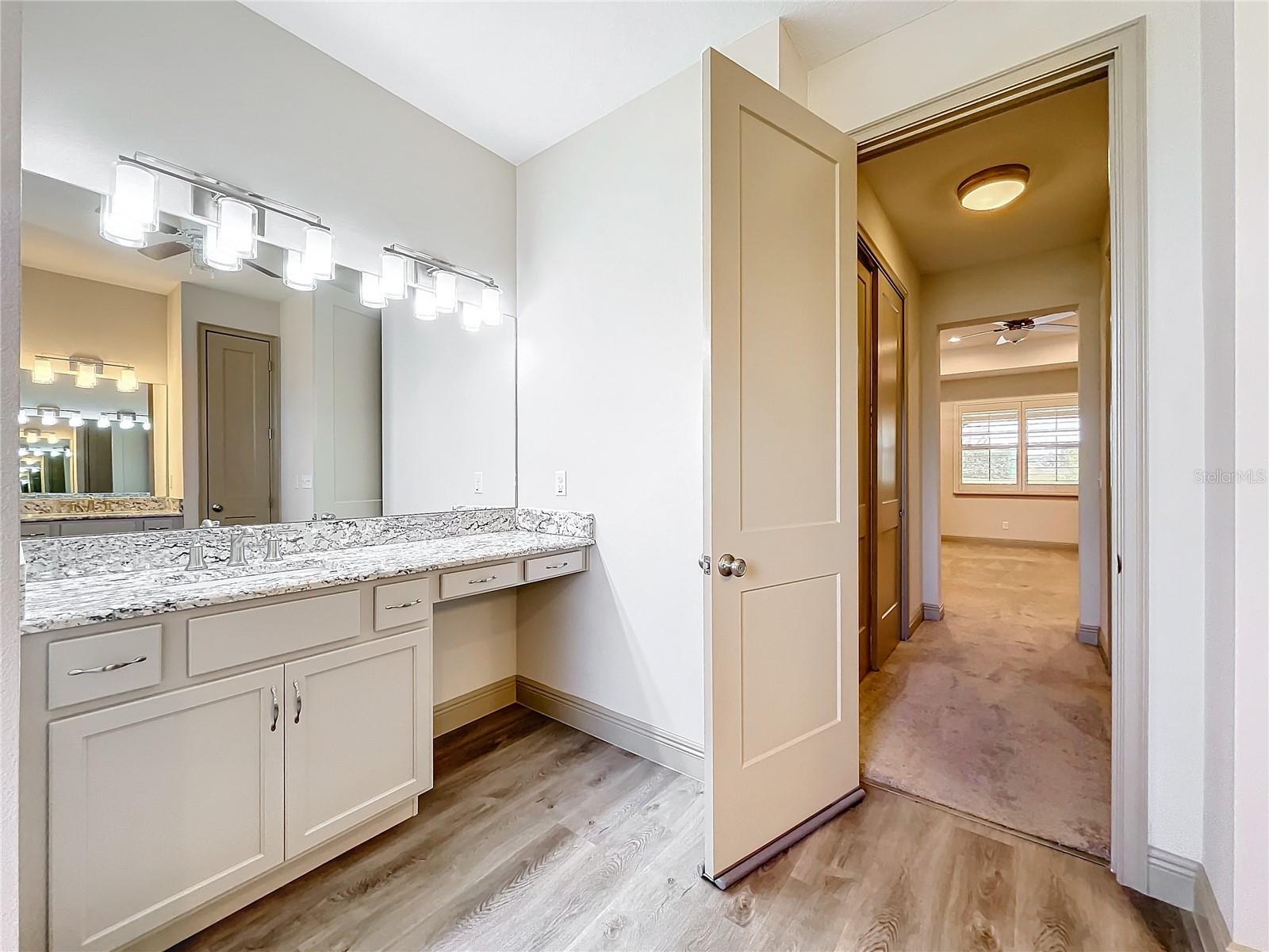 Welcome to this unique extra-large corner semi-custom home featuring four spacious bedrooms and three full bathrooms on a 0.41-acre corner lot. This home offers a blend of luxury and comfort with a versatile office/den, a two-car garage, and additional golf cart or jet ski space. Inside, you'll find luxury vinyl flooring throughout the house, except in the four carpeted bedrooms, glass French doors in the office/den, and ceiling fans. The family room boasts a tray ceiling, ceiling fans, and sliding glass doors leading to a stunning lanai. The kitchen has granite countertops, an island, a double oven range, pendant lighting, abundant cabinet space, a large pantry, and a breakfast bar with an eat-in nook. All bedrooms feature ceiling fans and plantation shutters, with roller shades throughout the rest of the house. The primary suite has a ceiling fan, tray ceiling, his and hers walk-in closets, and an ensuite bathroom with dual sinks, a large shower, a linen closet, and a water closet. The additional bedrooms are carpeted with ceiling fans and spacious closets. Bathroom two has a granite countertop and a tub/shower combo, while bathroom three features a granite countertop and a standalone shower. The extended, covered, and screened lanai has brick pavers and ceiling fans, while the front porch is also screened for added comfort. The garage has an insulated block wall and door with AC installed on the ceiling to maximize space. The laundry room includes a tub and ample shelving. The landscaping is upgraded with various fruit trees, including avocado, lemon, tangerine, mango, and more. The community offers an expansive clubhouse, a private boat ramp, a fishing pier, a playground, a pool, and courts for tennis, pickleball, and basketball. Also, the HOA fee includes the internet and basic cable for up to 3 TVs. Conveniently located close to Downtown Clermont, shopping centers, schools, and major highways, this home offers both luxury and practicality. Schedule your appointment today and make this dream home yours!