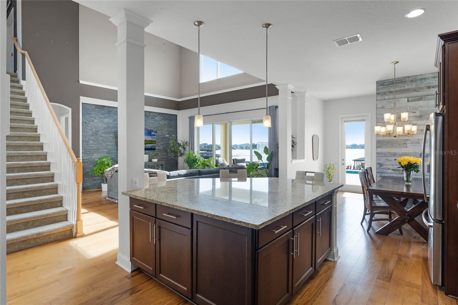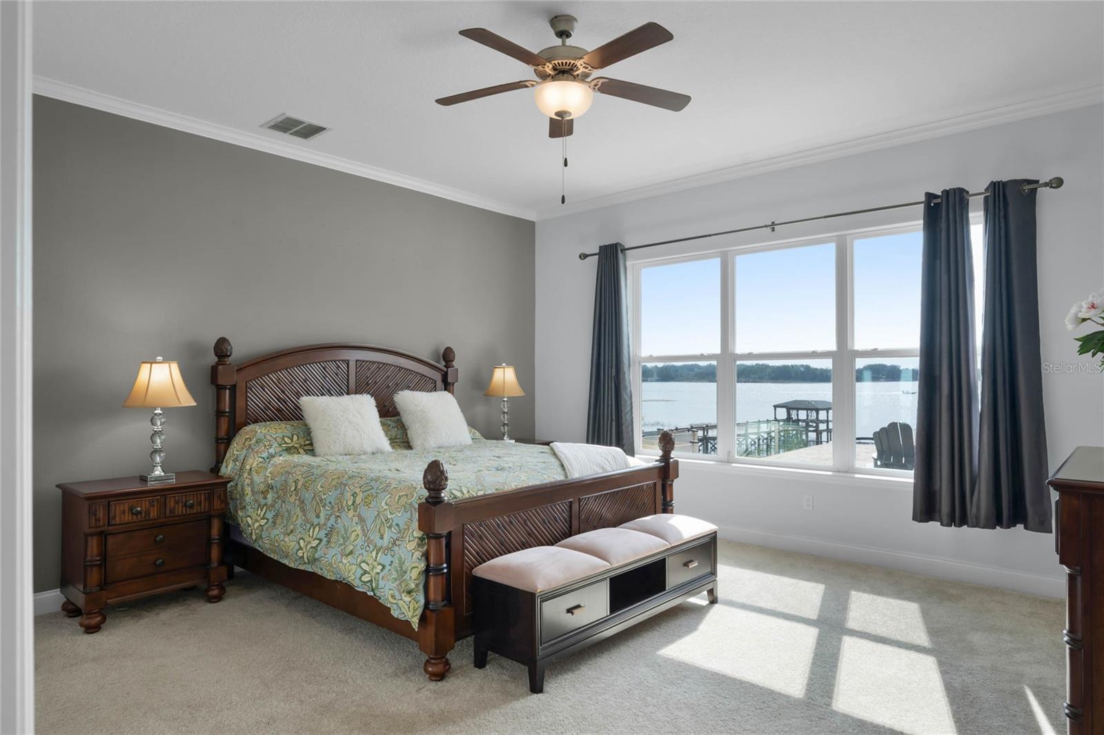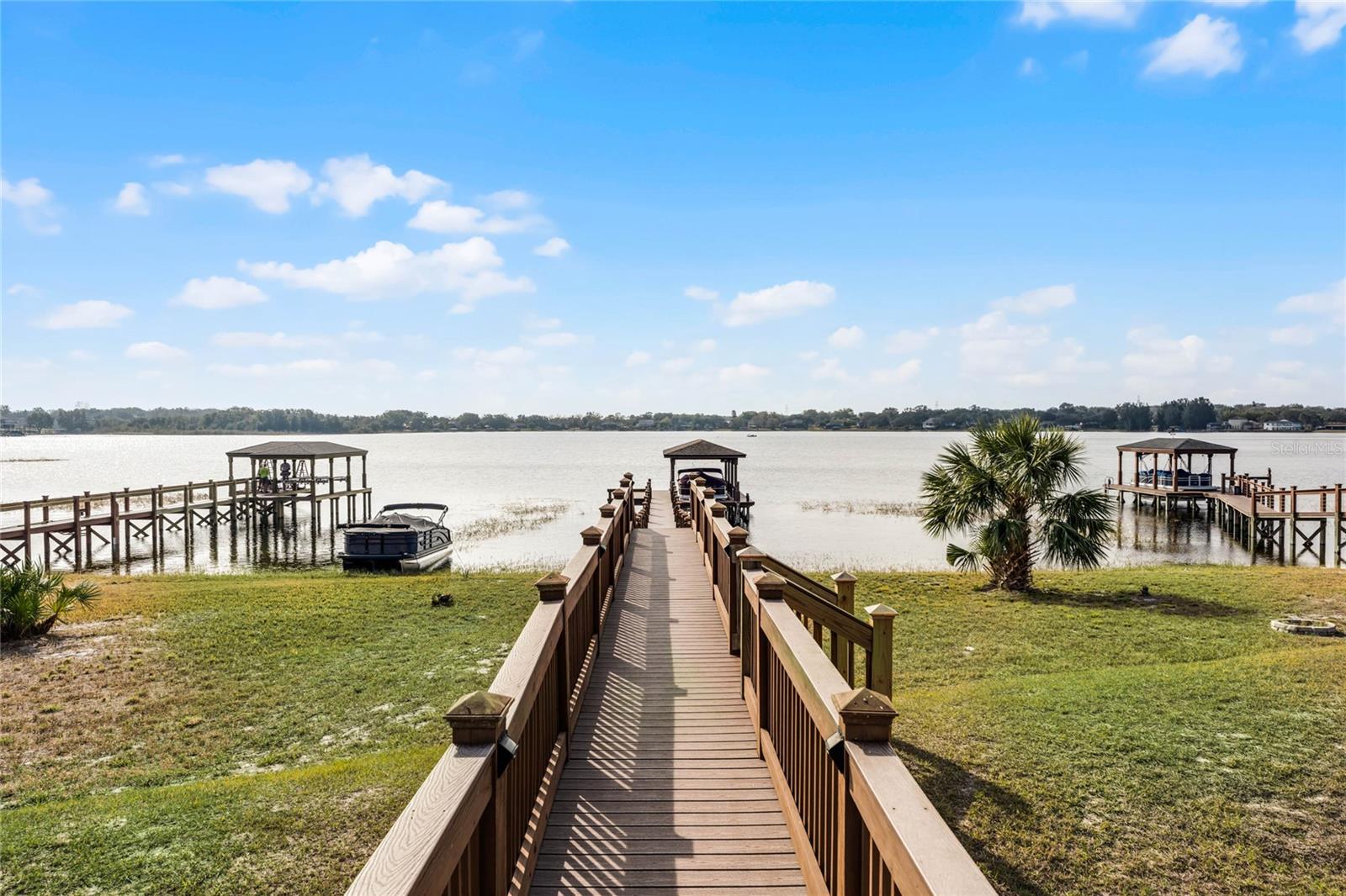 Experience luxury living in this meticulously maintained 5-bedroom, 5-bathroom David Weekly (Wayland) home, boasting breathtaking views of John's Lake. The property features vaulted ceilings, stone countertops, and beautiful decorative accent walls, complemented by a top-of-the-line boat slip. As part of the exclusive John's Lake Landing community, residents enjoy access to a community pool, playground, and spectacular lakefrontage. Additionally, in Clermont, the Clermont Chain of Lakes offers endless opportunities for water sports enthusiasts, with the west cove of John's Lake featuring two surveyed slalom courses. Upon entering the home, you'll be greeted by the warmth of wooden floors in the downstairs Great Room. The large eat-in kitchen is perfect for family gatherings, with stone countertops, stainless steel appliances, and stunning lake views. The expansive Master Suite is situated on the first floor, offering breathtaking views of the lake, an expansive walk-in closet, and a luxurious shower. The second floor features four additional bedrooms, two bathrooms, and a versatile bonus room. Conveniently located near Publix, the Winter Garden Farmers' Market, and Disney, this property offers the ultimate lifestyle experience. Schedule a showing today and make your dream a reality.