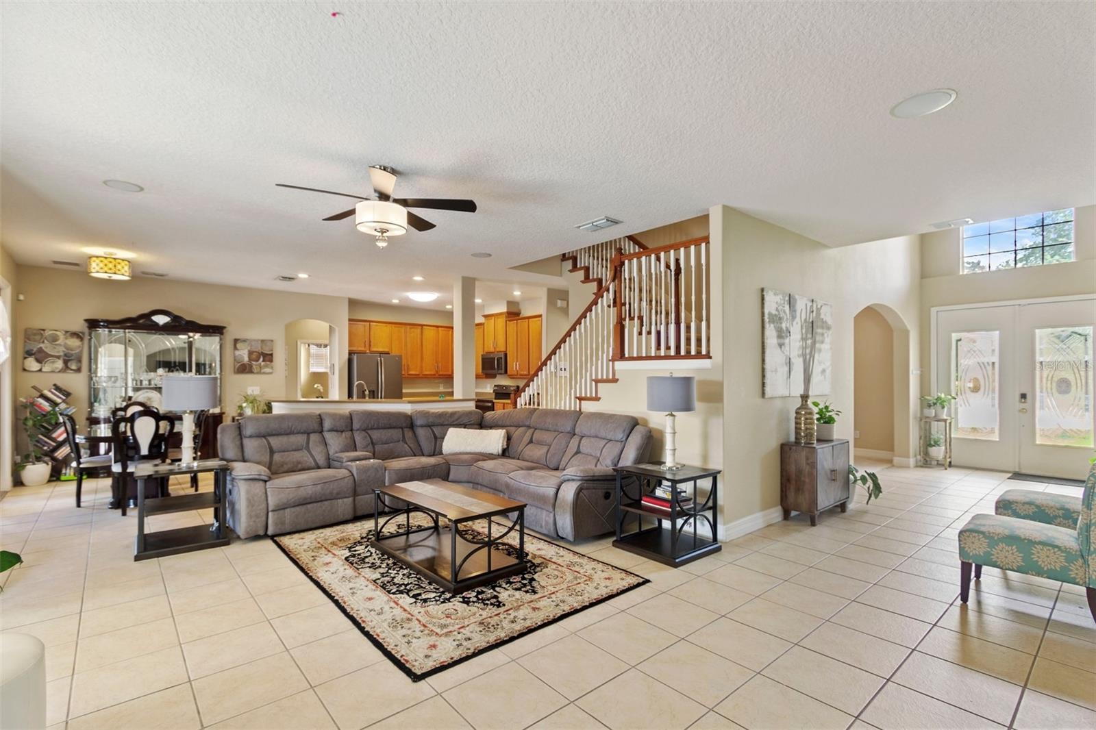 Go Big or Go Home! This incredibly large 6 bedroom / 3.5 bath POOL home, plus an OFFICE/DEN – is nestled on a half-acre lot, in a low profile cul-de-sac. This home is located in desirable LEGENDS COUNTRY CLUB, a 24/7 GUARD and GATED Community! The ROOF was replaced (January 2023) along with fresh coat of interior paint (July 2022)! Arched entryways, crown molding, elevated ceilings and a sneak peak of the upstairs balcony conveys a sophisticated elegance. Floorplan is ideal for multi-generational living, with one bedroom on the first floor. Perfect for entertaining and pool parties, the family room has surround sound speakers and two points of access to the veranda by sliding glass and french doors. The centrally located kitchen overlooks the family room/breakfast nook and features stainless appliances, raised wood cabinetry, bountiful counter space, an elongated entertaining bar, built-in reception desk and walk-in closet pantry – all perfect for the family chef! The upstairs owner’s suite is a dream, with a designer tray ceiling and expanded windows overlooking the HUGE, captivating BACKYARD! The owner’s suite bathroom is sure to please with two extended vanities and state of the art, luxurious Jacuzzi! The real gem of this suburban home is the extensive multi-level terrace that revels in the outdoor living area. Relax in the shade under the covered terrace or enjoy a refreshing dip into your curved-shaped, crystal clear POOL. The incredibly colossal, backyard is perfect for friendly games, gardening, pets and more! The possibilities are endless! *** THE HOA DUES INCLUDE*** High-Speed Internet and Summit Broadband TV Cable and Legends GRAND AMENTIES, such as a magnificent 10,000+ sq. ft. Clubhouse, Community Pool and Spa, Sauna, Fitness Center, All-Star Restaurant, Golf Pro Shop, Basketball, Pickle ball and Tennis courts, conference rooms, community kitchen and kiddie playground. Golf members will love the 18-hole Championship Golf Course, driving range, putting and chipping greens. All this, conveniently located near Schools, Shopping, Hospitals and Restaurants, with a short distance to Florida’s Turnpike and Disney. Enjoy this community and make this great home yours today.