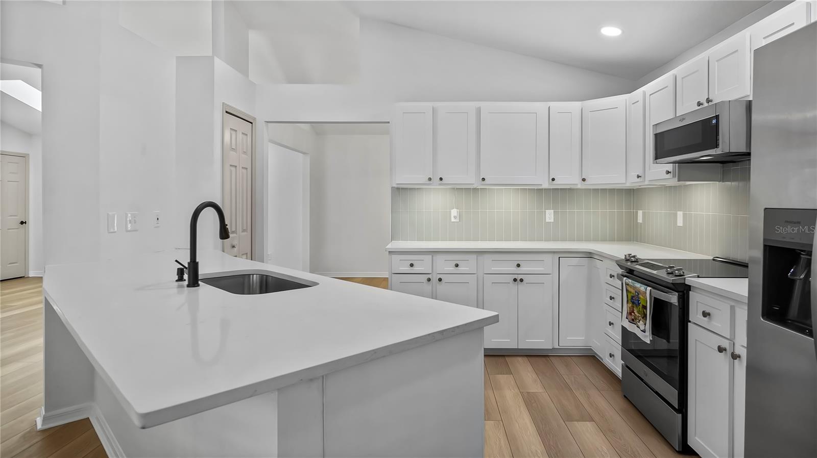 One or more photo(s) has been virtually staged. Stunning 3-Bedroom, 2-Bath Home with Lake Access to Lake Crescent! Nestled in a prime location with access to the Clermont Chain of Lakes, this beautifully updated home offers a perfect balance of style, comfort and convenience. Enjoy the serenity of lake access to Lake Crescent while being just minutes from everything you need. Step inside to find luxury vinyl wood plank flooring throughout, creating a sleek and modern feel. The kitchen boasts stunning quartz countertops paired with white cabinetry, making it perfect for cooking and entertaining. This split floor plan features two guest bedrooms on the right side of the home, offering privacy and comfort for family or visitors. The open-concept living room flows seamlessly into the dining room, offering a spacious and inviting space with views of the backyard pool area—perfect for entertaining or relaxing. The Master Bedroom is a true retreat, filled with natural light and French doors that lead directly to the pool area. The ensuite bathroom offers a spa-like experience with dual sinks, a garden tub, a walk-in shower, and a private toilet. This home boasts modern updates including:New A/C 2025, New Roof (2017), Re-plumbed (2020), New Windows (2024), Garage shelving/storage (2024) and New Refrigerator (2025). Step outside to the fenced-in backyard where you'll find a screened-in pool, patio, and spa, offering the ultimate private outdoor living space. Located near Highway 50, Highway 27, schools, shopping, hospitals, and just 40 minutes from Disney World, this home offers the best of both tranquility and convenience. Don’t miss out on this exceptional opportunity to own a beautiful home with lake access and modern updates—schedule your showing today!