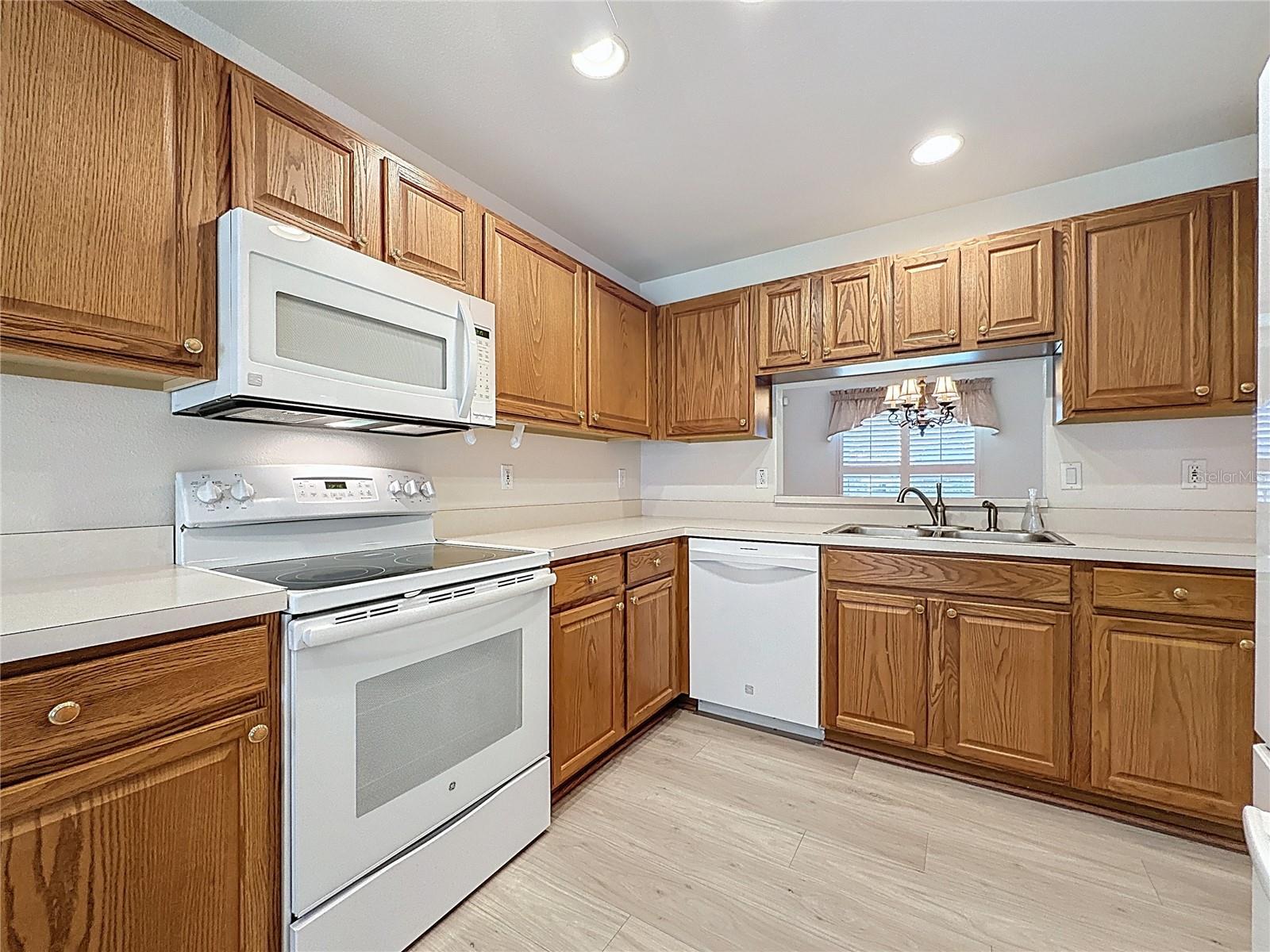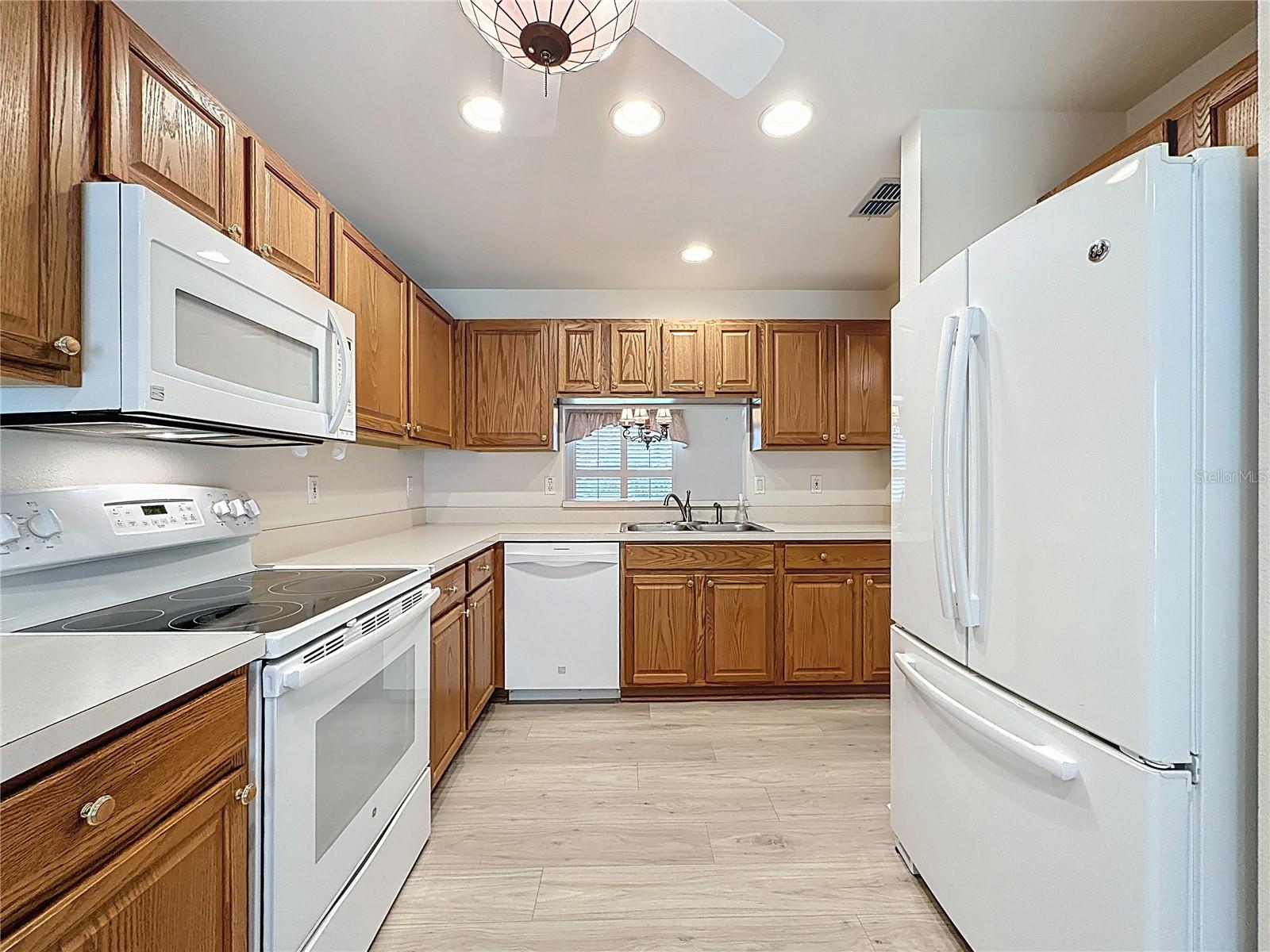 JUST REDUCED >>> Welcome to the Kings Ridge Golf Course Community, 24 hr. gated guard. 2 golf courses, driving range. Multi million dollar clubhouse. IMMACULATE.. MOVE IN READY!! Crown Model, 2 bedrooms, 2 bathrooms, plus a den/can be used for 3rd bedroom has French doors. Great room dining room combo. 1 car garage plus room for golf cart. New Window world windows. Tile lanai has double pane windows . Roof replaced in 2014, windows replaced in 2014, AC replaced in 2012. Just installed New neutral color carpeting, Laminate floors. Beautiful Lead pane glass front security/screen door. Beautiful landscaping and private back yard. Home has plantation shutters, insulated garage door, gutter guards, recess lighting in kitchen, lanai has double glass pane windows. Enjoy a day trip to one of Florida's beautiful beaches or local attractions such as Disney, Universal, Sea World, NASA Kennedy Space Center, famous world shopping. HOA includes lawn care, home cable, internet, painting of your home every 6 years, use of multimillion dollar clubhouse which features 3 pools, 2 spas, tennis courts, pickle balls court, 2 golf courses, driving range, clubs to join, group games such as cards, bingo, travel clubs, etc. Too much to list! It's only a 45 minute drive to the Orlando International Airport. Come live the good life in Kings Ridge and see what you are missing. Call now for a showing.
