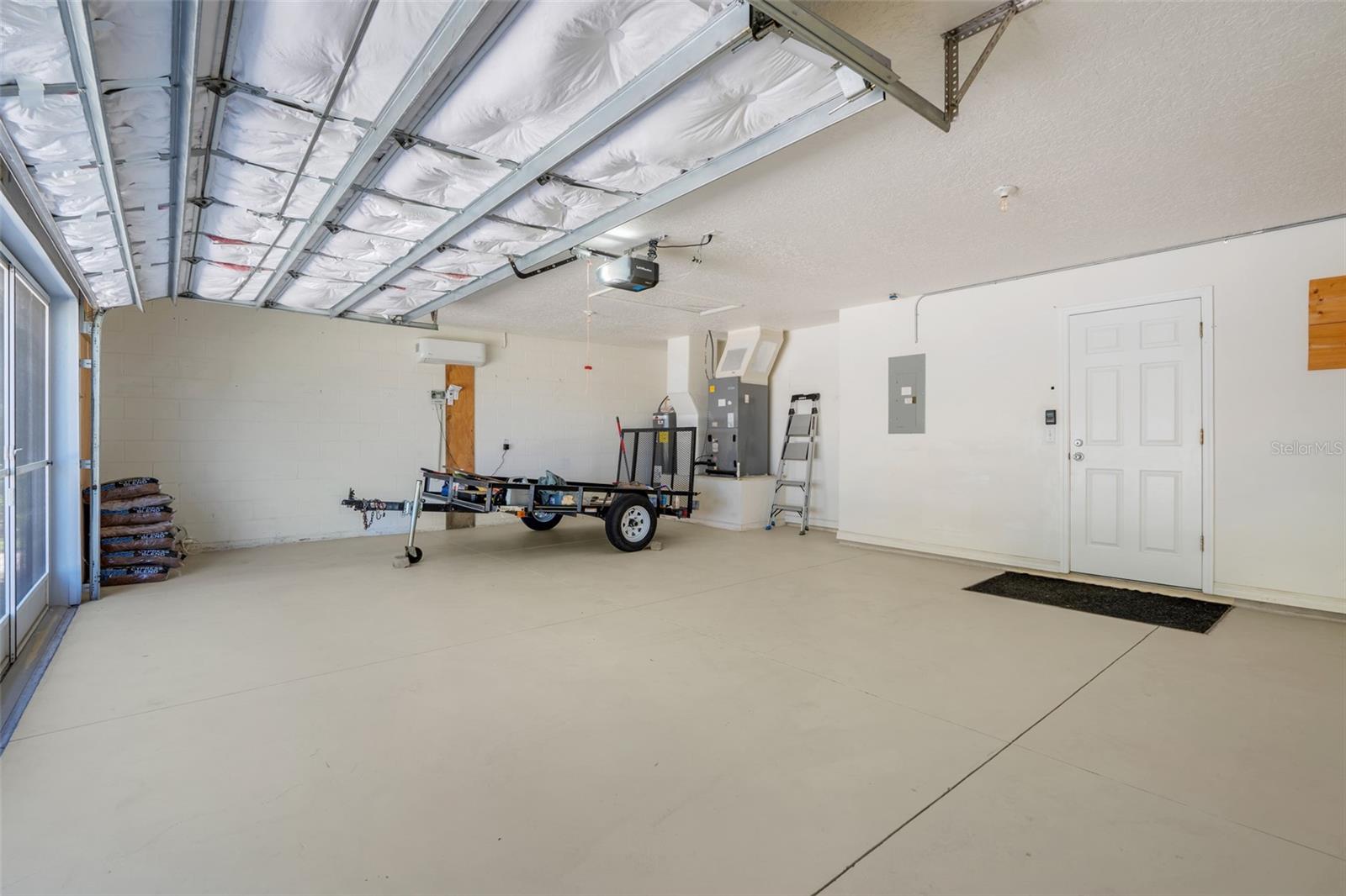 One or more photo(s) has been virtually staged. HUGE FENCED BACKYARD WITH RV PARKING! A charming property on an oversized completely privacy fenced in CORNER LOT that offers space, comfort, and functionality. This 3-bedroom, 2-bathroom gem is nestled on more than a ¼ acre of beautifully landscaped grounds. It includes a fantastic oversized insulated 2-car garage with epoxy flooring and new garage door opener. A mini split A/C unit was installed in the garage to keep you cool when your spending time in there. Booster pump for water regulation was also installed in the garage. This property features a 18X32 concrete pad with a double gate, built-in shed, and electric & water hookups ideal for RVs, boats, or extra storage. New exterior paint in 2023 with new gutters and drains. New mailbox and post were added to enhance curb appeal. Outside, enjoy complete privacy with a large privacy fenced yard, lush garden, blooming rose bushes, and a variety of fruit trees. Flagstone walkways and edging blocks around the (2) avocados, fig, peach, grapefruit, and banana trees. Serene newly screened-in tiled lanai is perfect for relaxing afternoons spent birdwatching or simply admiring the colorful blooms. Step inside to find stunning wood plank porcelain tile flooring throughout, enhancing the seamless flow of the split-bedroom floor plan. The gourmet kitchen is sure to delight any culinary enthusiast with granite countertops, a stylish backsplash, top-tier appliances 2021, and an oversized onyx granite sink. Insta-hot water dispenser is great for making a cup of tea. The breakfast nook and adjacent bar open to a cozy family room, crafting an ideal setting for gatherings or quiet evenings in. Hunter fans installed in all rooms throughout this immaculate home. Upgraded all lights to LED and new light fixtures in entryway, dining room and kitchen. Electric Water Heater & Roof was replaced in 2017, A/C unit was replaced in 2016. The home ensures convenience is never compromised with features like a walk-in pantry, separate laundry room with washer and dryer. The luxurious primary bedroom features dual walk-in closets and an ensuite bathroom with a Roman tub, step-in shower, dual vanities, and a private commode. Additional living spaces include formal dining and living rooms. Fresh renovations include new porcelain tile flooring, updated interior walls for an open living space, fresh paint, LED lighting, new window treatments, and much more. Energy efficiency is at its best with added insulation in the garage and attic, and the outdoor spaces feature new landscaping, night lighting, and a large rear paver patio. This move-in-ready home is conveniently located near top-rated schools, shopping at Publix Super Market, and outdoor activities at Palatlakaha River Park. It's not just a house; it's the perfect backdrop for creating treasured memories for years to come. PLEASE NOTE HOA WILL NOT ACCEPT OVERSIZED RV'S.