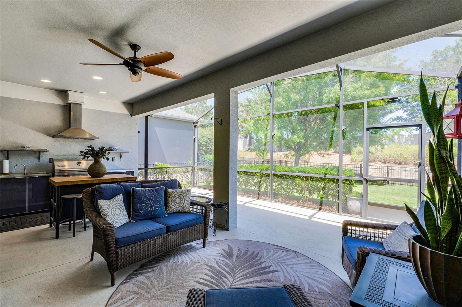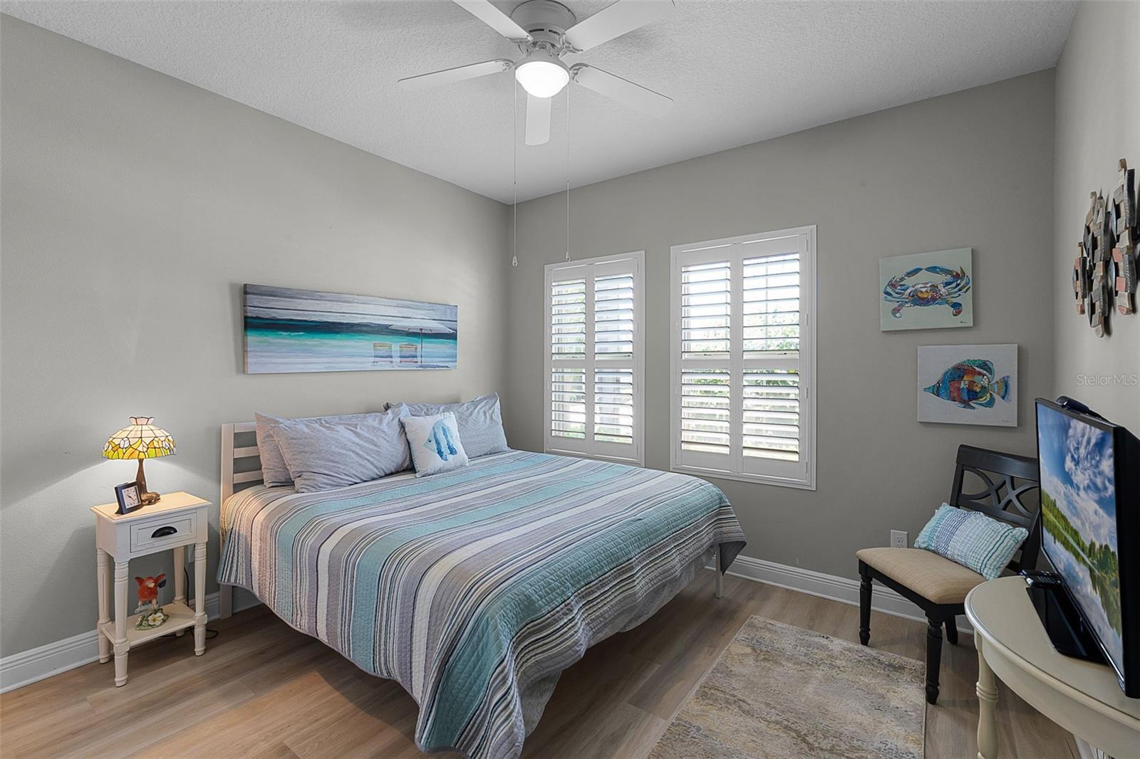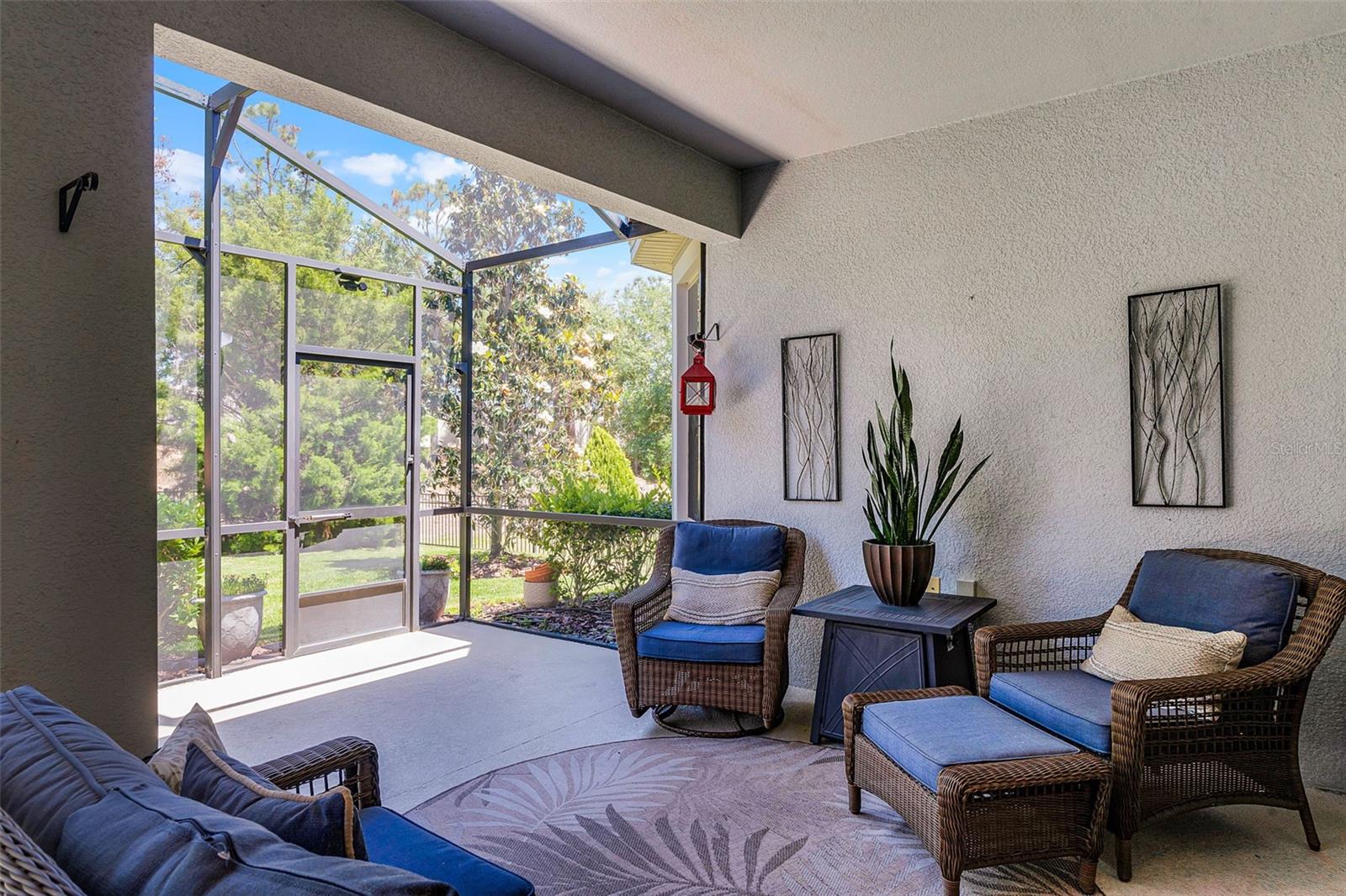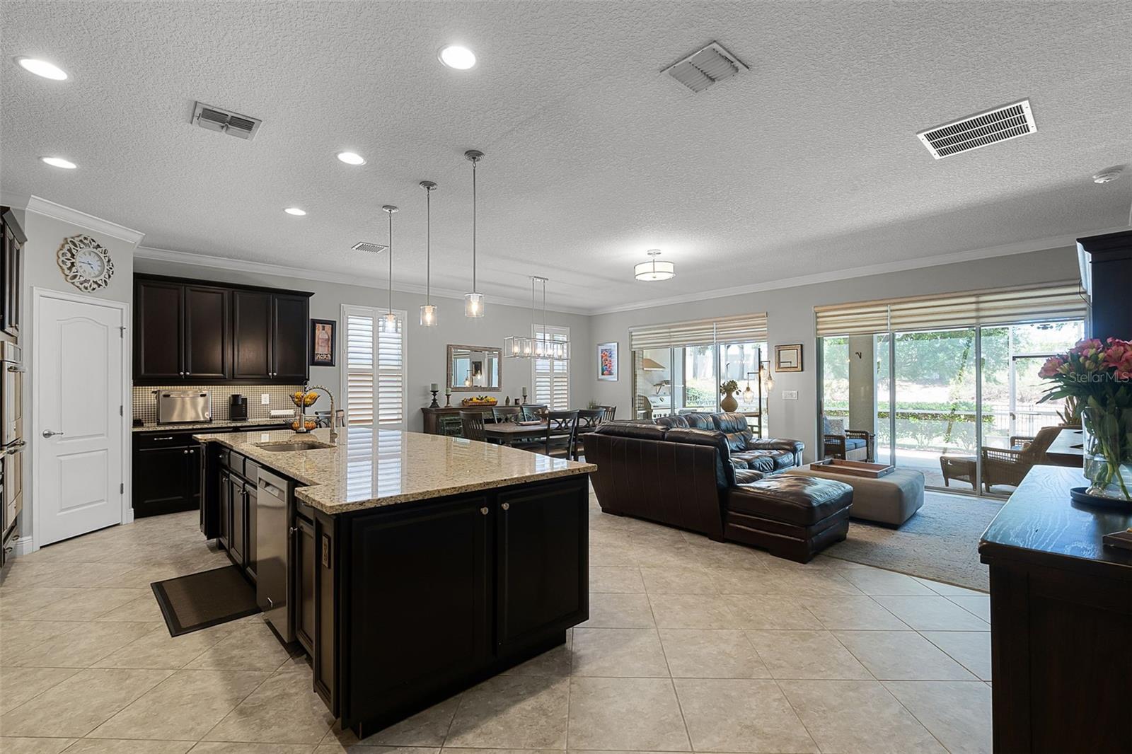 Welcome to your dream home in the highly desirable 55+ community of Esplanade at Highland Ranch — where resort-style living meets everyday convenience! Can be purchased FURNISHED! This beautifully appointed 2-bedroom, 2-bath residence with a versatile office/den is the epitome of comfort and elegance. From the moment you step inside, you’ll be captivated by the spacious open floor plan, designed for effortless entertaining. At the heart of the home is the stunning 11-foot kitchen island with stunning cabinetry all around the island, a large sink, enhanced by pendant lighting and surrounded by upgraded stainless steel appliances and dual sliding glass doors letting in a lot of natural light— ideal for both casual meals and gourmet gatherings. The expansive primary suite is a private retreat featuring luxury vinyl plank flooring, double walk in closets, a spa-like bathroom with a generously sized walk-in shower, dual vanities, a water closet for privacy and ample room to relax and recharge. The guest bedroom and bathroom is separated from the primary bedroom offering you and your guest’s privacy, and convenience. Throughout the home, plantation shutters offer timeless charm and functional elegance, while the stunning large laundry room with built-in cabinetry and sink adds convenience and additional storage. The spacious garage features epoxy coated floors and 2 smart racks for all your storage needs. Step outside and enjoy your own fenced backyard oasis with no rear neighbors — a private outdoor kitchen perfect for grilling, dining al fresco, or simply unwinding while taking in the peaceful surroundings. Ideally located with easy access to local shopping, dining, and the charming Downtown areas of Clermont and Winter Garden, this community also offers direct access to scenic bike trails leading to Groveland, Clermont, and Winter Garden — perfect for the active lifestyle. Living in Esplanade at Highland Ranch means embracing an active and social lifestyle, with an unmatched array of amenities: Resort-style pool and resistance pool, Rejuvenating spa, Pickleball, Tennis, and Bocce ball courts, Expansive clubhouse with endless social events, shows, and activities, State-of-the-art Fitness Center and Movement studio for yoga and fitness classes, Fire pit lounge area with nightly views of Disney fireworks, Scenic walking and biking paths, Dog park for your four-legged friends Best of all, the HOA covers your lawn maintenance and fertilization, so whether you're home or traveling, your yard always looks its best — no mowing or trimming required. Just minutes from the Florida Turnpike, this location offers the perfect balance of tranquility and accessibility. This isn’t just a home — it’s a lifestyle. Discover resort-inspired living in a home that checks every box. Your Esplanade escape awaits!