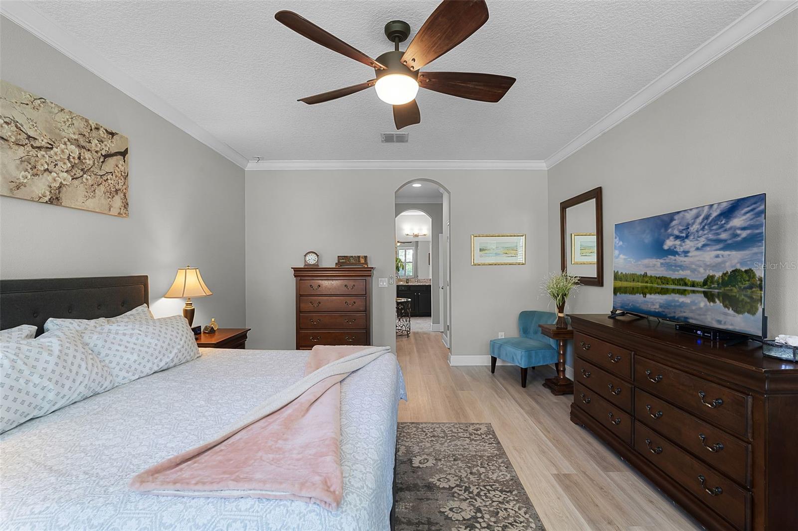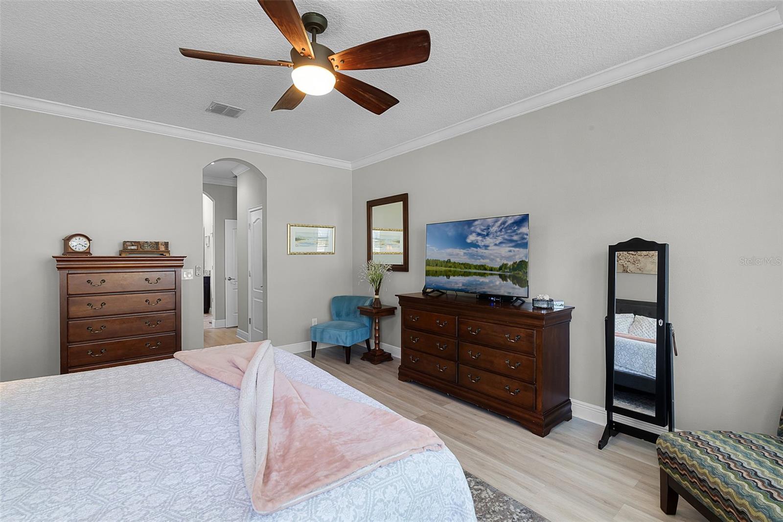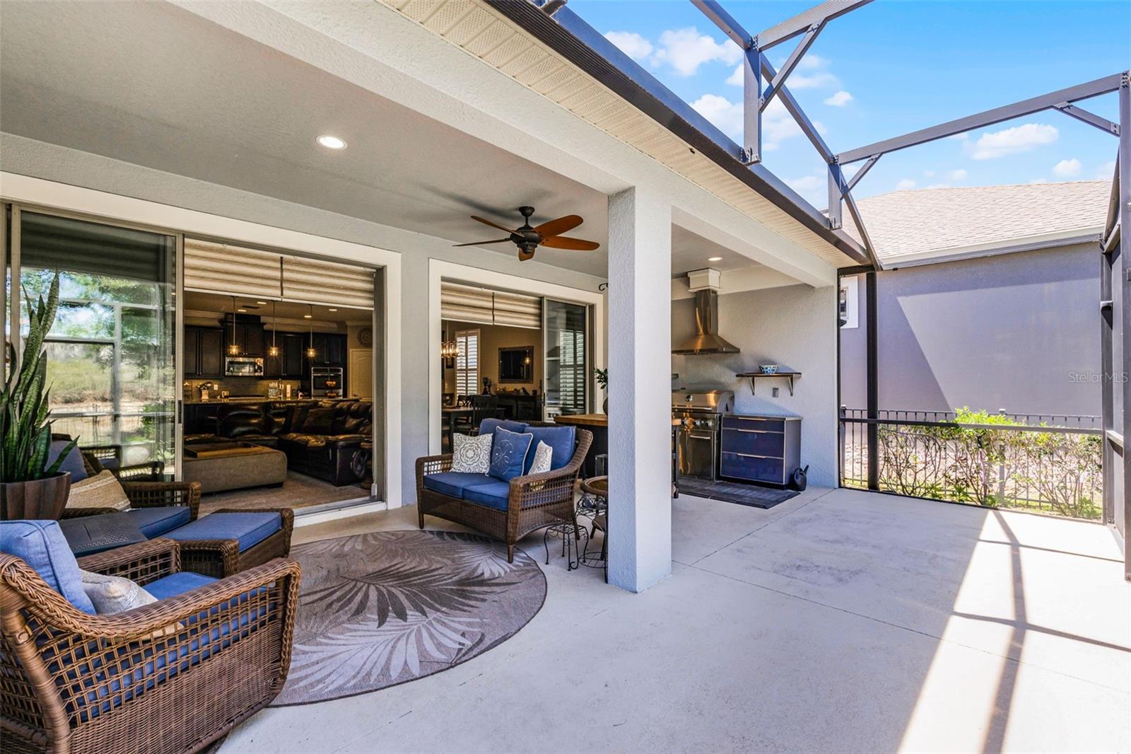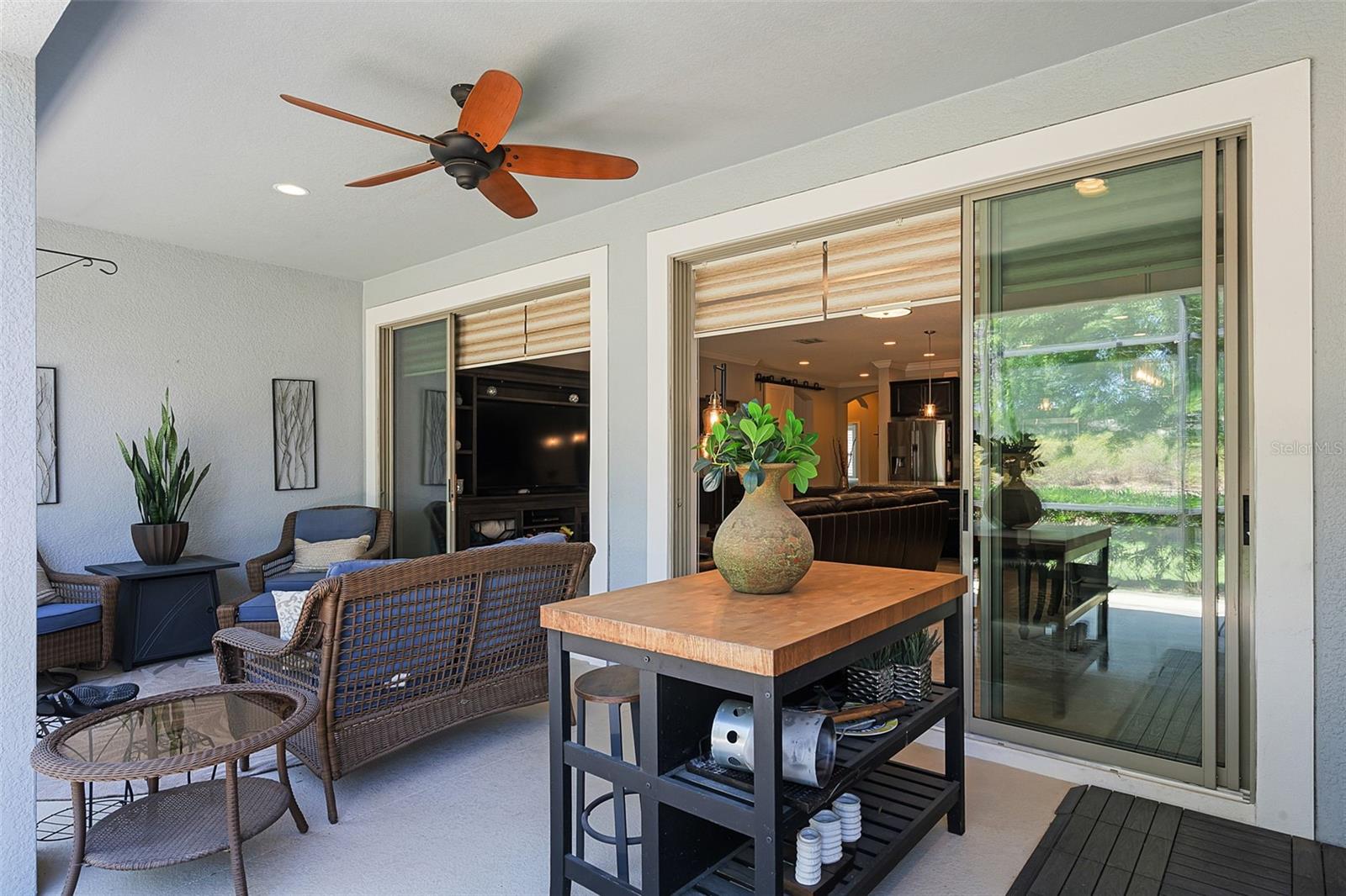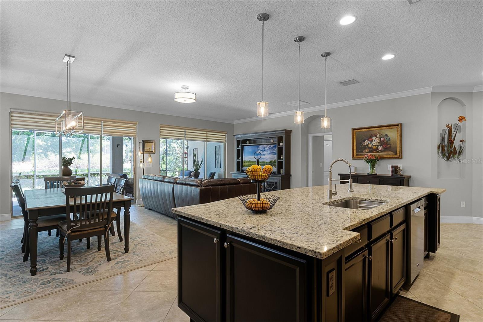 Welcome to your dream home in the highly desirable 55+ community of Esplanade at Highland Ranch — where resort-style living meets everyday convenience! Can be purchased FURNISHED! This beautifully appointed 2-bedroom, 2-bath residence with a versatile office/den is the epitome of comfort and elegance. From the moment you step inside, you’ll be captivated by the spacious open floor plan, designed for effortless entertaining. At the heart of the home is the stunning 11-foot kitchen island with stunning cabinetry all around the island, a large sink, enhanced by pendant lighting and surrounded by upgraded stainless steel appliances and dual sliding glass doors letting in a lot of natural light— ideal for both casual meals and gourmet gatherings. The expansive primary suite is a private retreat featuring luxury vinyl plank flooring, double walk in closets, a spa-like bathroom with a generously sized walk-in shower, dual vanities, a water closet for privacy and ample room to relax and recharge. The guest bedroom and bathroom is separated from the primary bedroom offering you and your guest’s privacy, and convenience. Throughout the home, plantation shutters offer timeless charm and functional elegance, while the stunning large laundry room with built-in cabinetry and sink adds convenience and additional storage. The spacious garage features epoxy coated floors and 2 smart racks for all your storage needs. Step outside and enjoy your own fenced backyard oasis with no rear neighbors — a private outdoor kitchen perfect for grilling, dining al fresco, or simply unwinding while taking in the peaceful surroundings. Ideally located with easy access to local shopping, dining, and the charming Downtown areas of Clermont and Winter Garden, this community also offers direct access to scenic bike trails leading to Groveland, Clermont, and Winter Garden — perfect for the active lifestyle. Living in Esplanade at Highland Ranch means embracing an active and social lifestyle, with an unmatched array of amenities: Resort-style pool and resistance pool, Rejuvenating spa, Pickleball, Tennis, and Bocce ball courts, Expansive clubhouse with endless social events, shows, and activities, State-of-the-art Fitness Center and Movement studio for yoga and fitness classes, Fire pit lounge area with nightly views of Disney fireworks, Scenic walking and biking paths, Dog park for your four-legged friends Best of all, the HOA covers your lawn maintenance and fertilization, so whether you're home or traveling, your yard always looks its best — no mowing or trimming required. Just minutes from the Florida Turnpike, this location offers the perfect balance of tranquility and accessibility. This isn’t just a home — it’s a lifestyle. Discover resort-inspired living in a home that checks every box. Your Esplanade escape awaits!