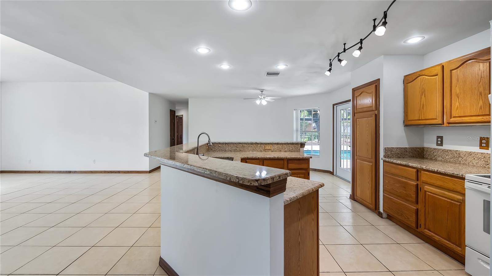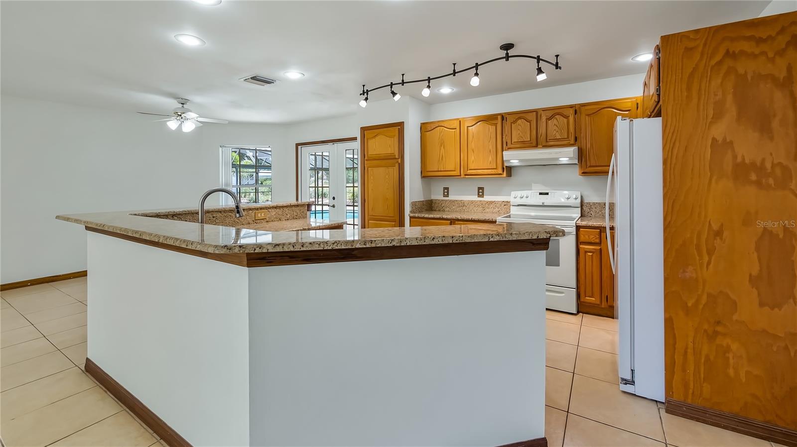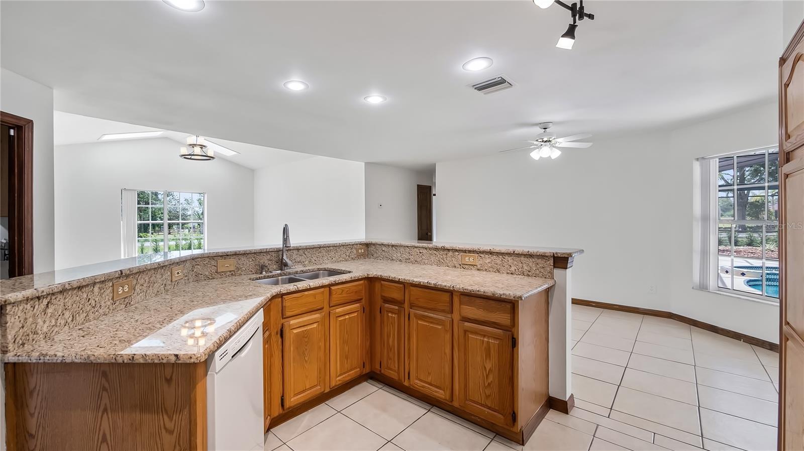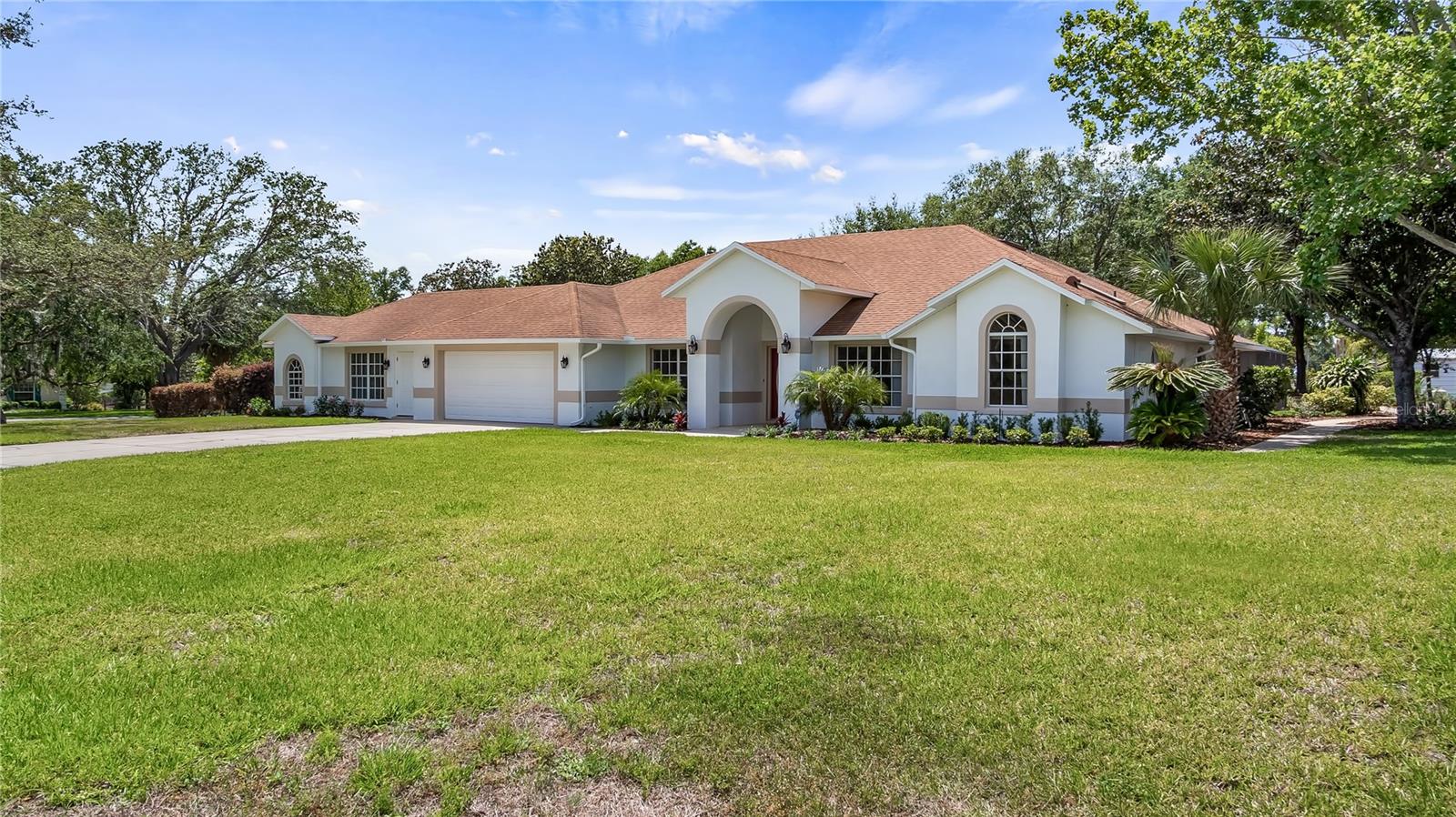 Welcome to this beautiful 5-bedroom, 3-bathroom pool home nestled on a beautifully landscaped 1-acre corner lot with mature oak trees and no HOA! Freshly painted inside and out in 2025, this spacious home offers over 3200 sq. ft. of well-designed living space including over 500 sq ft. in-law suite. Perfect for multi-generational living or rental opportunity, the in-law suite has its own entrance or access from the main house through garage. Inside you'll find a nice living room, bedroom, full bath, new hot water heater, dishwasher and oven. The main house is bright and airy with foyer that opens to a formal dining room with real hardwood floors and a formal living room that overlooks the sparkling pool. The kitchen is ideal for entertaining—spacious and open to the family room and breakfast nook, with beautiful views of the pool area. The Kitchen has plenty of storage and convenient bar seating too. The primary suite is a true retreat, featuring dual closets, a large en-suite bathroom with walk-in shower and soaking tub, and direct access to the covered patio and pool. You’ll find three more generously sized bedrooms, 2nd bathroom with two sinks plus walk in shower and a versatile 5th bedroom or office with adjacent pool bath. Enjoy thoughtful updates throughout, including new updated countertops in both guest bathrooms and new laundry room countertops which features utility sink and cabinets for convenience, (washer/dryer included), and a freshly painted garage with epoxy flooring. Brand new irrigation too. Multiple French doors, large windows and skylights give the home lots of natural light. The screened in pool deck is very spacious and features a large salt system pool with fountain and spa. In addition to solar heating pool it also has propane heater hook up. Plenty of room for your toys too—bring the RV, boat, or camper! There's a dedicated parking space separate from the main driveway. The main home’s drain field has also been recently updated. Located just minutes from Hwy 27, Hwy 50, the Turnpike, hospitals, schools, shopping, and charming Downtown Clermont, this is Florida living at its best!