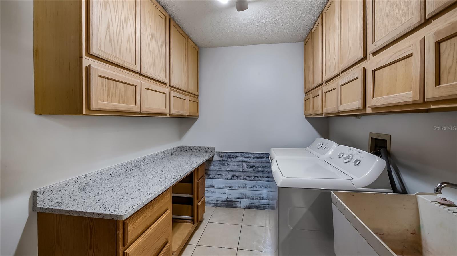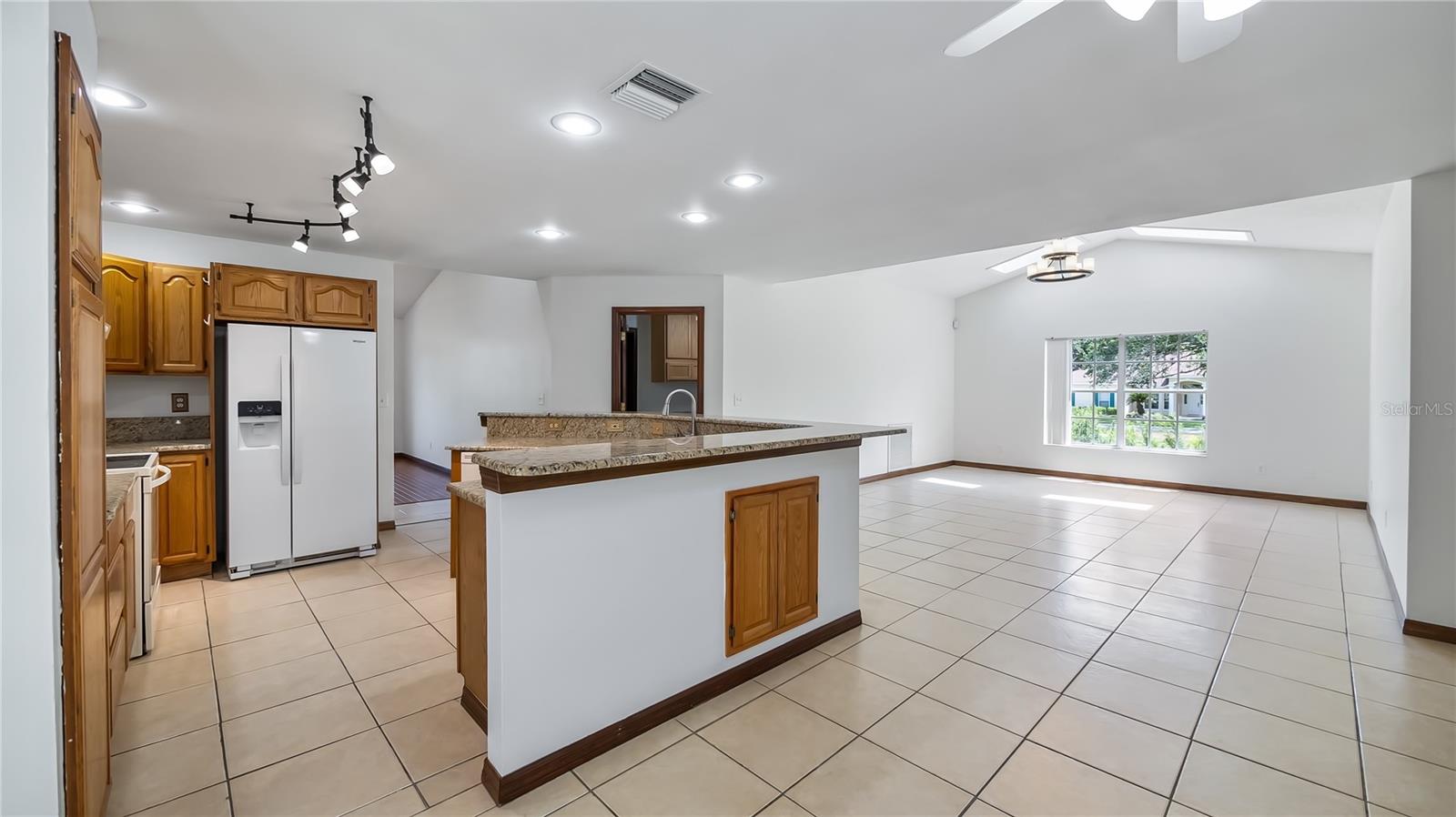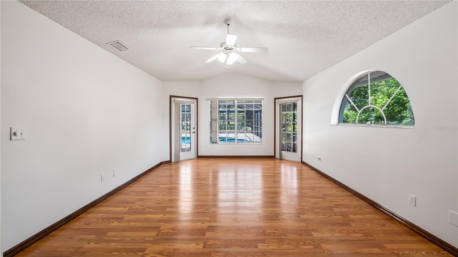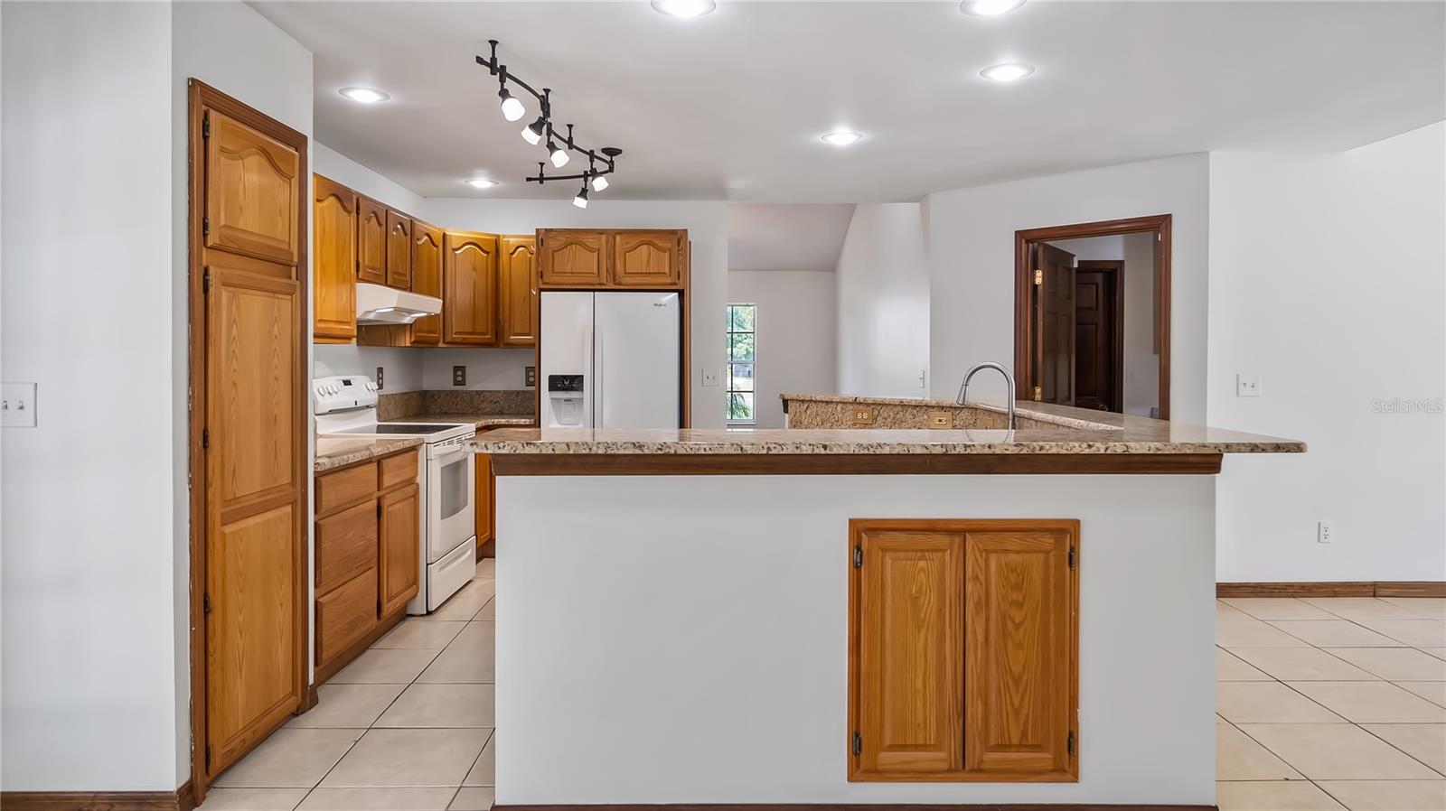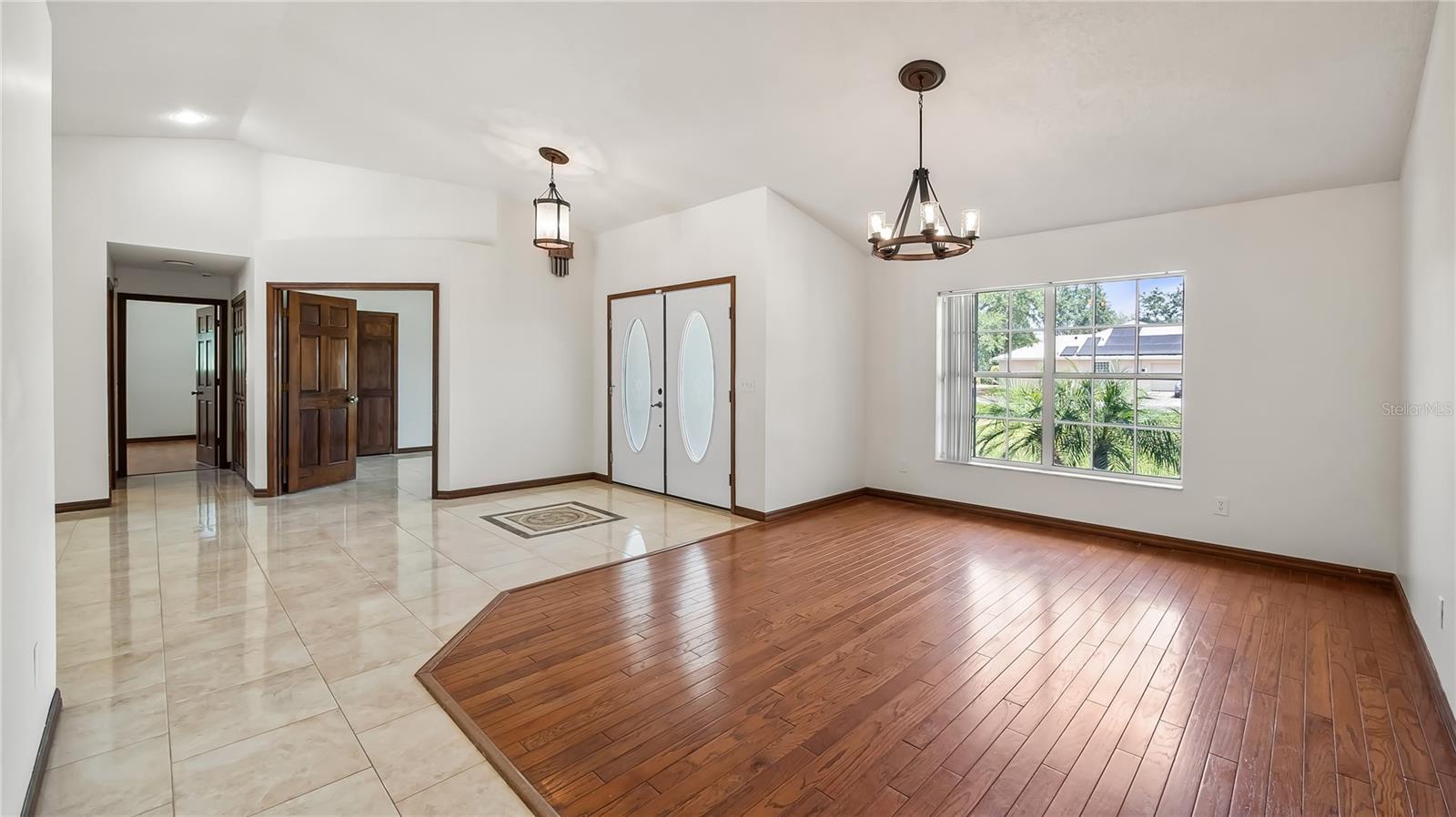 Welcome to this beautiful 5-bedroom, 3-bathroom pool home nestled on a beautifully landscaped 1-acre corner lot with mature oak trees and no HOA! Freshly painted inside and out in 2025, this spacious home offers over 3200 sq. ft. of well-designed living space including over 500 sq ft. in-law suite. Perfect for multi-generational living or rental opportunity, the in-law suite has its own entrance or access from the main house through garage. Inside you'll find a nice living room, bedroom, full bath, new hot water heater, dishwasher and oven. The main house is bright and airy with foyer that opens to a formal dining room with real hardwood floors and a formal living room that overlooks the sparkling pool. The kitchen is ideal for entertaining—spacious and open to the family room and breakfast nook, with beautiful views of the pool area. The Kitchen has plenty of storage and convenient bar seating too. The primary suite is a true retreat, featuring dual closets, a large en-suite bathroom with walk-in shower and soaking tub, and direct access to the covered patio and pool. You’ll find three more generously sized bedrooms, 2nd bathroom with two sinks plus walk in shower and a versatile 5th bedroom or office with adjacent pool bath. Enjoy thoughtful updates throughout, including new updated countertops in both guest bathrooms and new laundry room countertops which features utility sink and cabinets for convenience, (washer/dryer included), and a freshly painted garage with epoxy flooring. Brand new irrigation too. Multiple French doors, large windows and skylights give the home lots of natural light. The screened in pool deck is very spacious and features a large salt system pool with fountain and spa. In addition to solar heating pool it also has propane heater hook up. Plenty of room for your toys too—bring the RV, boat, or camper! There's a dedicated parking space separate from the main driveway. The main home’s drain field has also been recently updated. Located just minutes from Hwy 27, Hwy 50, the Turnpike, hospitals, schools, shopping, and charming Downtown Clermont, this is Florida living at its best!