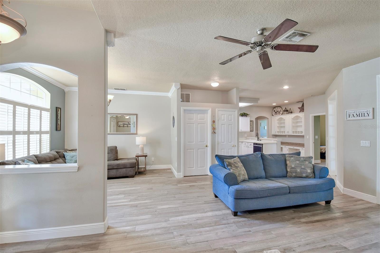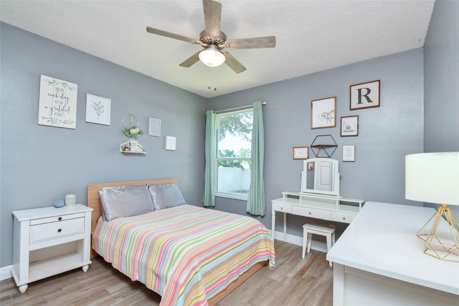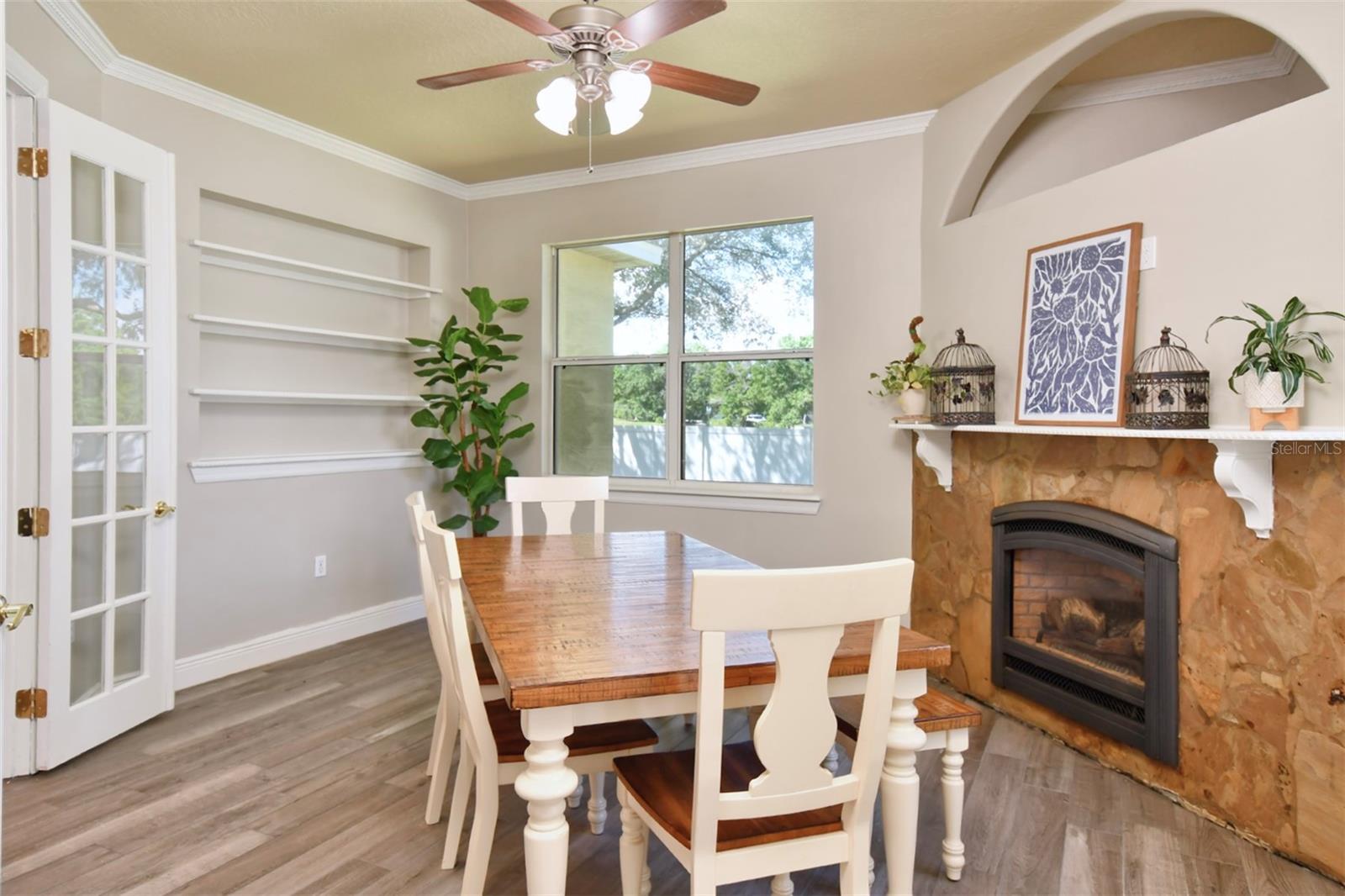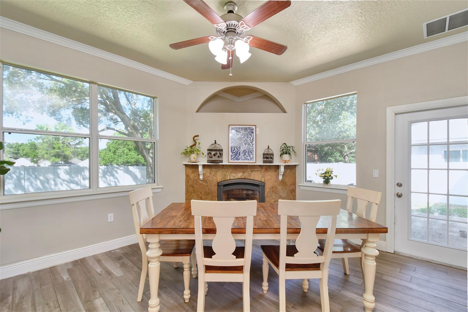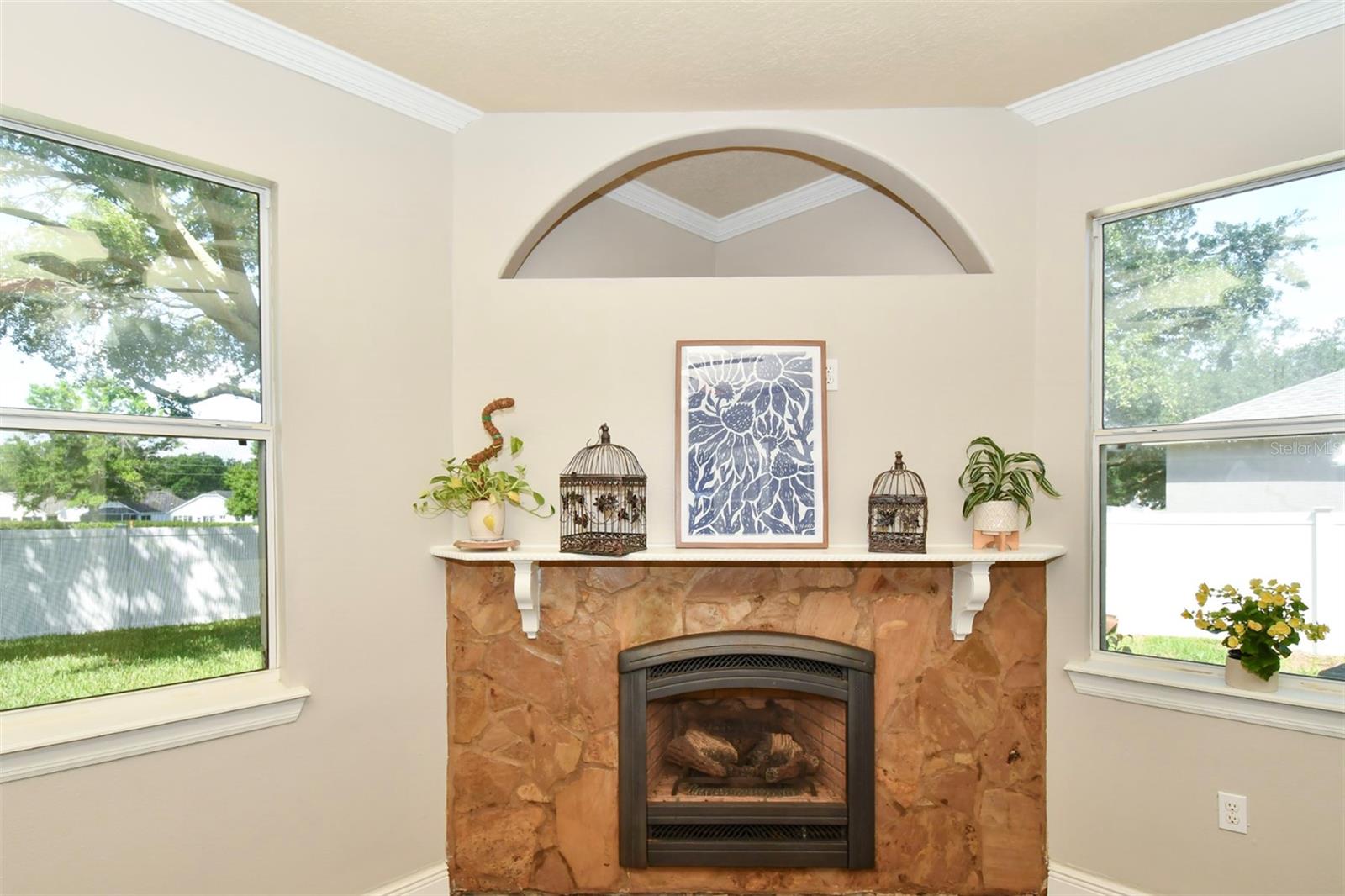 Presenting the most charming, move-in-ready home in Clermont. In a small neighborhood on a quiet street, this home sits in the middle of a great school district. Featuring beautiful wood-grain tile flooring throughout the entire home, the open floor plan flows from room to room seamlessly. The kitchen is a positive, happy space with bright cabinetry and modern, dark stainless steel appliances. The built-in storage includes useful desk space, perfect for managing the household. Enjoy the warmth of the gas fireplace and all of the natural light pouring into the dining room. The large fenced yard—complete with mature trees and no rear neighbors—gives you privacy and plenty of room to create your dream outdoor space. Additional highlights include a new gas water heater in 2025, HVAC in 2021, and roof in 2018. All of this is just minutes from shopping, dining, and top-rated schools, making it a perfect place to call home.