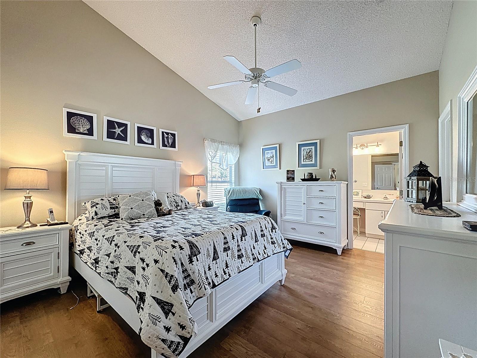Price Improvement!!. Very popular Canterbury model located on the 15th hole of the Championship course in 55+ gated golf community of Kings Ridge. Beautiful golf course views of the golf course from the back screened in lanai. Cathedral ceilings add dimension to the home. The kitchen has granite countertops w/stainless sink and newer faucet. There are cam lights, new ceiling fan, pendant lights over the sink and under cabinet lighting. Tile flooring in all wet areas and laminate flooring throughout the rest of the home. The den has glass French doors w/ shades. HVAC changeout in June 2017 and new roof in Jan 2015.The guest bathroom has been updated. The Washer and dryer remain with the home. Front and back Oak trees were removed. Kings Ridge is a 55 Plus gated golf community located in the rolling hills of Clermont, FL. Enjoy the Royal life style in the multi-million $ clubhouse with 3 heated pools, spas, tennis & pickle ball courts, billiards, shuffle board, shows, Bingo, cards and clubs galore. The monthly maintenance fees include: lawn maintenance including trimming of shrubs, care of irrigation system & irrigation water, internet, TV & home phone thru Opticaltel, maintenance of roads and outside painting of home every 7 years. Take your golf cart to the Kings Ridge Plaza where you can do your grocery shopping, banking or dine out.