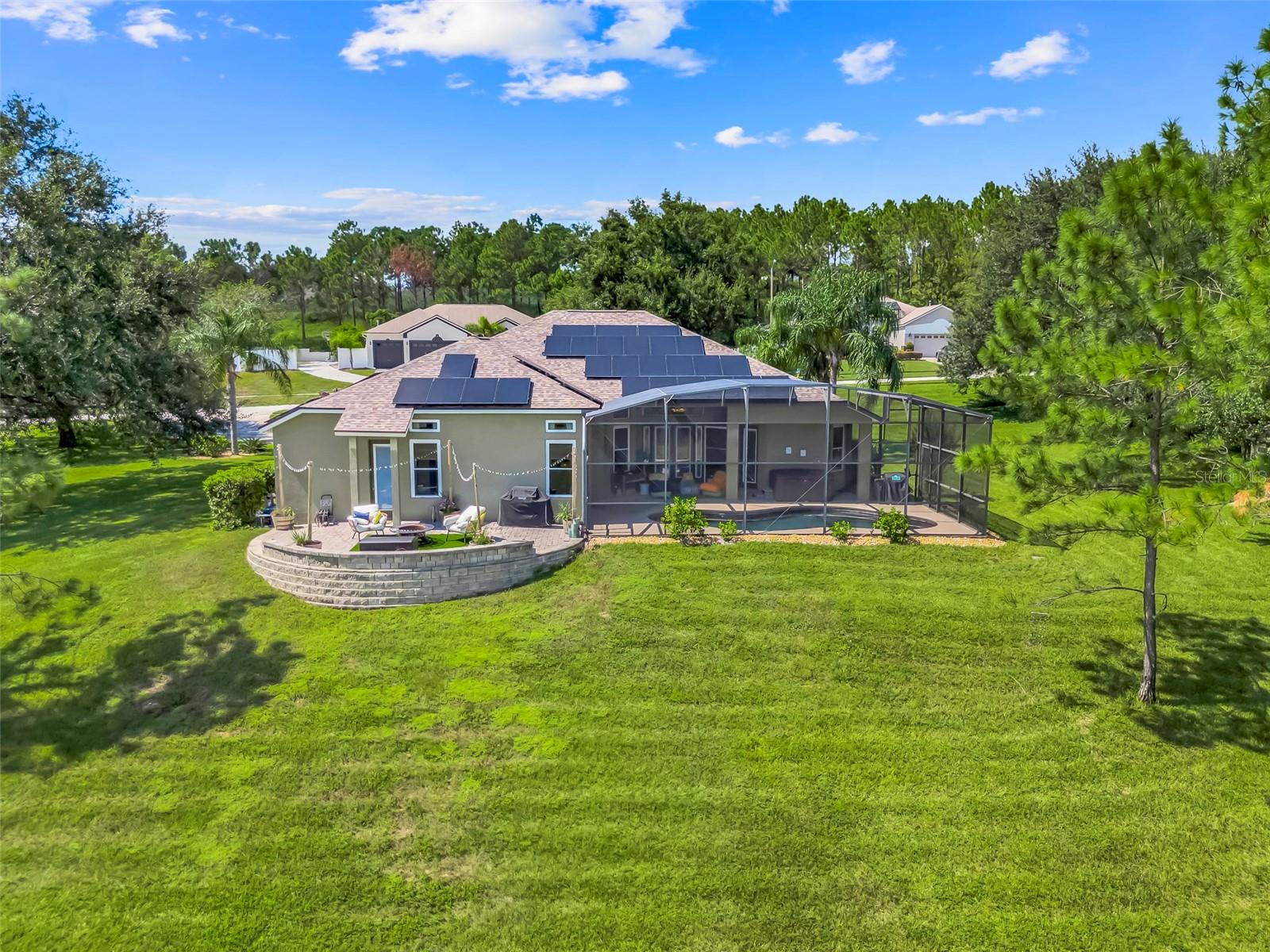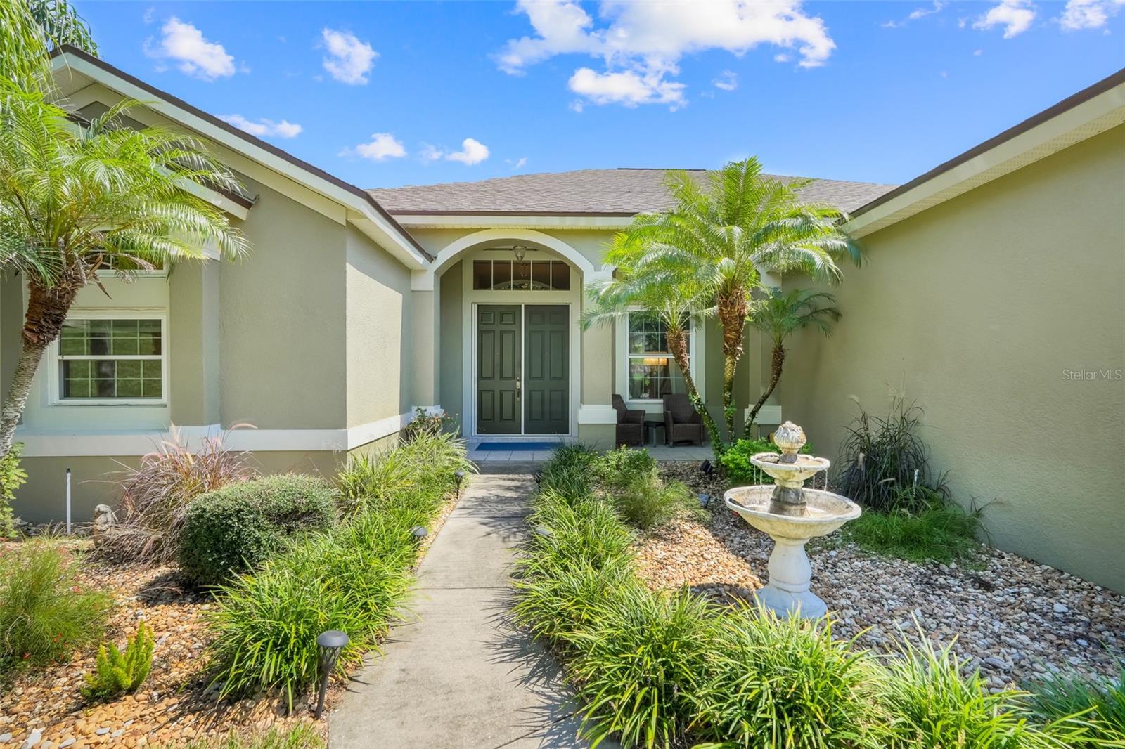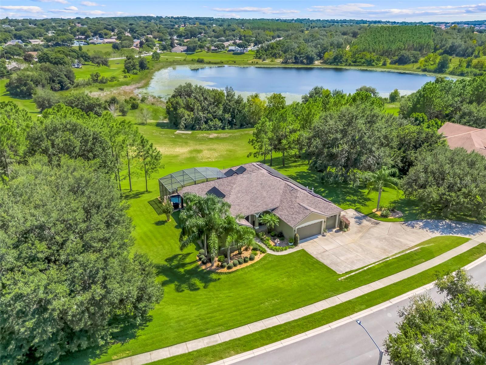 Step inside this beautifully updated residence where every detail has been thoughtfully elevated all within the last five years. Rich real White Oak hardwood floors flow seamlessly throughout the living spaces, accented by bullnose cornering, 5-inch baseboards (without quarter round), and elegant crown molding in the kitchen and living room. The open-concept design draws the eye upward to faux wood beams and soaring ceilings, while a sleek tile accent wall with faux fireplace and mounted TV creates the perfect centerpiece for relaxation or entertaining. The chef’s kitchen features newly refaced cabinetry with contrasting white uppers and deep blue base cabinets, a quartzite island with seating for five or more, and a stainless-steel farmhouse-style single-basin sink. Every detail shines—from the custom upper cabinets for additional storage, to the new stainless-steel appliances, modern backsplash, and upgraded lighting fixtures. Additional enhancements include wainscoting in the formal dining room, all new interior paint, updated door casings and molding, 10-foot exterior doors, and new ceiling fans throughout, including in the pool enclosure. Updated windows ensure energy efficiency, while the addition of a whole-home solar system dramatically reduces electric bills—from nearly $800 in peak summer months to just around $10 monthly. The home’s split floor plan offers privacy, with upgraded guest baths featuring new vanities, tile, and fixtures. The primary suite is a retreat with private pool access, two expansive walk-in closets (one with a custom organizer), and a spa-inspired ensuite featuring dual vanities, makeup station, walk-in shower, soaking tub, linen closet, and water closet. Enjoy year-round Florida living with a Gunite pool, hot tub, freshly repainted pool deck, and an added paver retaining wall with built-in seating overlooking serene Lost Lake—with no rear neighbors. A screened lanai expands the living space, while the 3-car garage with upgraded screen system creates the perfect spot for projects or game day. The home also boasts a newer roof, newer A/C, and freshly painted exterior, set on just over 1 acre of lush property. Don’t miss this rare opportunity to own a move-in ready, fully upgraded home on over an acre with breathtaking lake views. Schedule your private showing today! Please note: Some photos have been digitally enhanced.