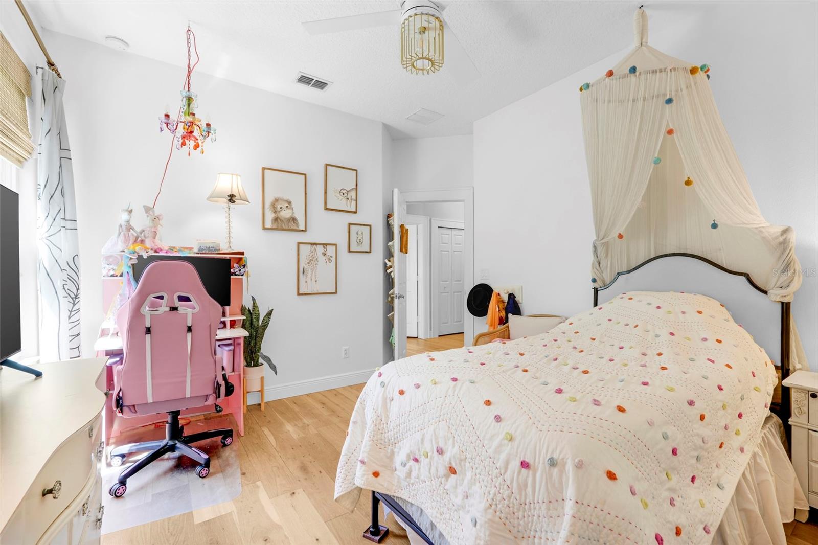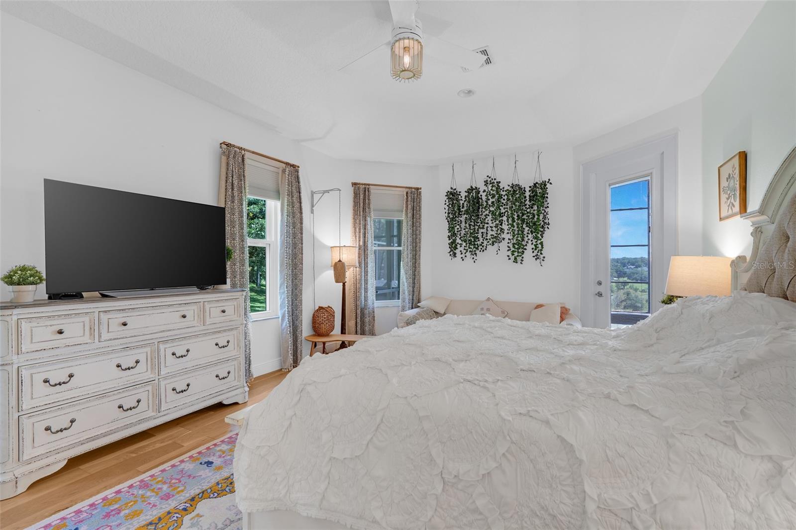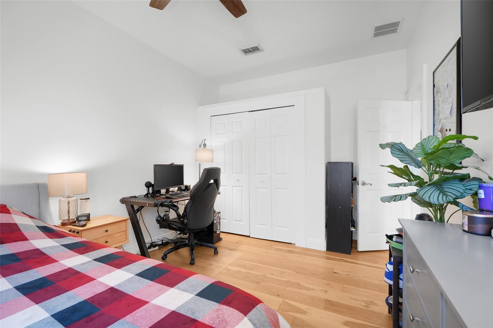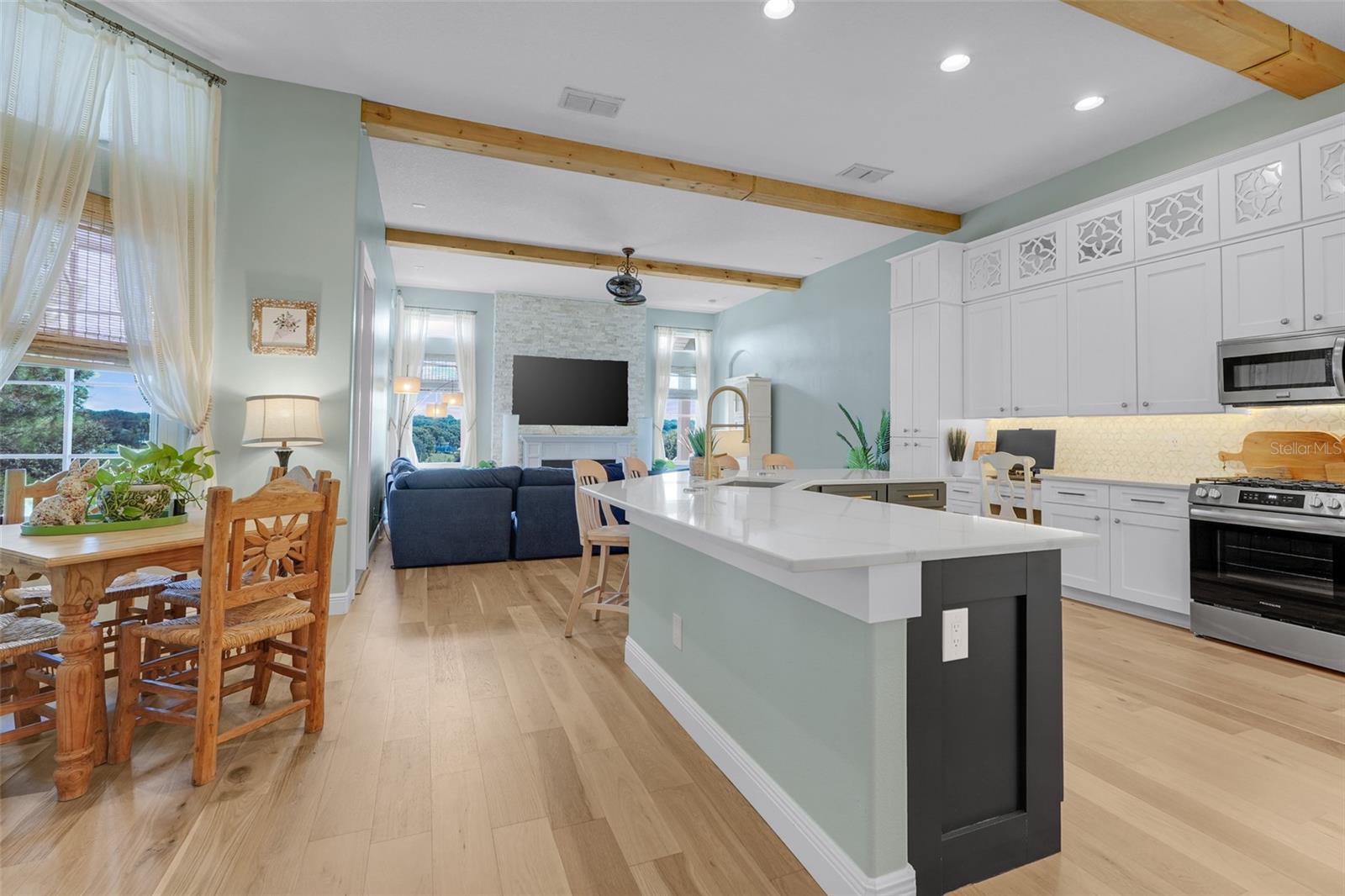 Step inside this beautifully updated residence where every detail has been thoughtfully elevated all within the last five years. Rich real White Oak hardwood floors flow seamlessly throughout the living spaces, accented by bullnose cornering, 5-inch baseboards (without quarter round), and elegant crown molding in the kitchen and living room. The open-concept design draws the eye upward to faux wood beams and soaring ceilings, while a sleek tile accent wall with faux fireplace and mounted TV creates the perfect centerpiece for relaxation or entertaining. The chef’s kitchen features newly refaced cabinetry with contrasting white uppers and deep blue base cabinets, a quartzite island with seating for five or more, and a stainless-steel farmhouse-style single-basin sink. Every detail shines—from the custom upper cabinets for additional storage, to the new stainless-steel appliances, modern backsplash, and upgraded lighting fixtures. Additional enhancements include wainscoting in the formal dining room, all new interior paint, updated door casings and molding, 10-foot exterior doors, and new ceiling fans throughout, including in the pool enclosure. Updated windows ensure energy efficiency, while the addition of a whole-home solar system dramatically reduces electric bills—from nearly $800 in peak summer months to just around $10 monthly. The home’s split floor plan offers privacy, with upgraded guest baths featuring new vanities, tile, and fixtures. The primary suite is a retreat with private pool access, two expansive walk-in closets (one with a custom organizer), and a spa-inspired ensuite featuring dual vanities, makeup station, walk-in shower, soaking tub, linen closet, and water closet. Enjoy year-round Florida living with a Gunite pool, hot tub, freshly repainted pool deck, and an added paver retaining wall with built-in seating overlooking serene Lost Lake—with no rear neighbors. A screened lanai expands the living space, while the 3-car garage with upgraded screen system creates the perfect spot for projects or game day. The home also boasts a newer roof, newer A/C, and freshly painted exterior, set on just over 1 acre of lush property. Don’t miss this rare opportunity to own a move-in ready, fully upgraded home on over an acre with breathtaking lake views. Schedule your private showing today! Please note: Some photos have been digitally enhanced.