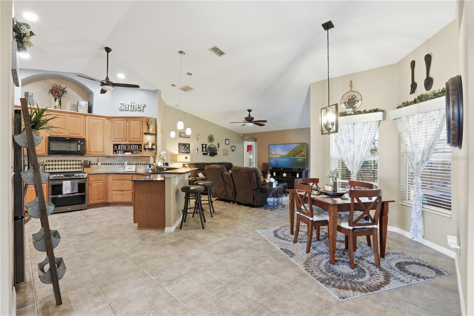 Welcome to 1023 Princeton Drive, a beautifully maintained four-bedroom, three-bath pool home with a versatile den or office space, situated in the highly sought-after, gated community of College Park. This home features a unique and thoughtfully designed layout. The homeowners have removed walls to seamlessly connect the kitchen, family room, and dining room, creating an open concept that enhances the flow between the main living areas. The spacious kitchen is equipped with a double pantry, stainless steel appliances, a large serving bar, a double oven, and ample space for casual eat-in dining, making it perfect for both everyday living and entertaining guests. The home offers a three-way split bedroom plan. The primary suite serves as a private retreat, featuring generous space, double closets, and double sinks. A second wing contains two secondary bedrooms and a full bath, while a third houses the fourth bedroom and a full bath, providing privacy and flexibility for family or guests. Custom touches are evident throughout the residence, including unique blinds and cornices in the front rooms, a sliding “barn-type” door between the primary bedroom and bath, and a built-in Murphy bed with custom shelving in the fourth bedroom. Glass doors throughout the home open to the lanai and the expansive pool area. The pool deck offers space for both lounging and dining, making it an ideal spot for entertaining. Enjoy added peace of mind with recent upgrades including a roof replacement in 2021 and a new pool pump installed in 2024. College Park boasts a prime location, conveniently close to shopping, entertainment, golf courses (with one located just across the street), and a short drive to the Clermont Turnpike entrance.