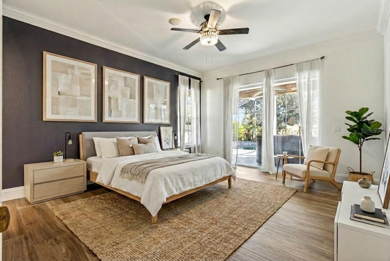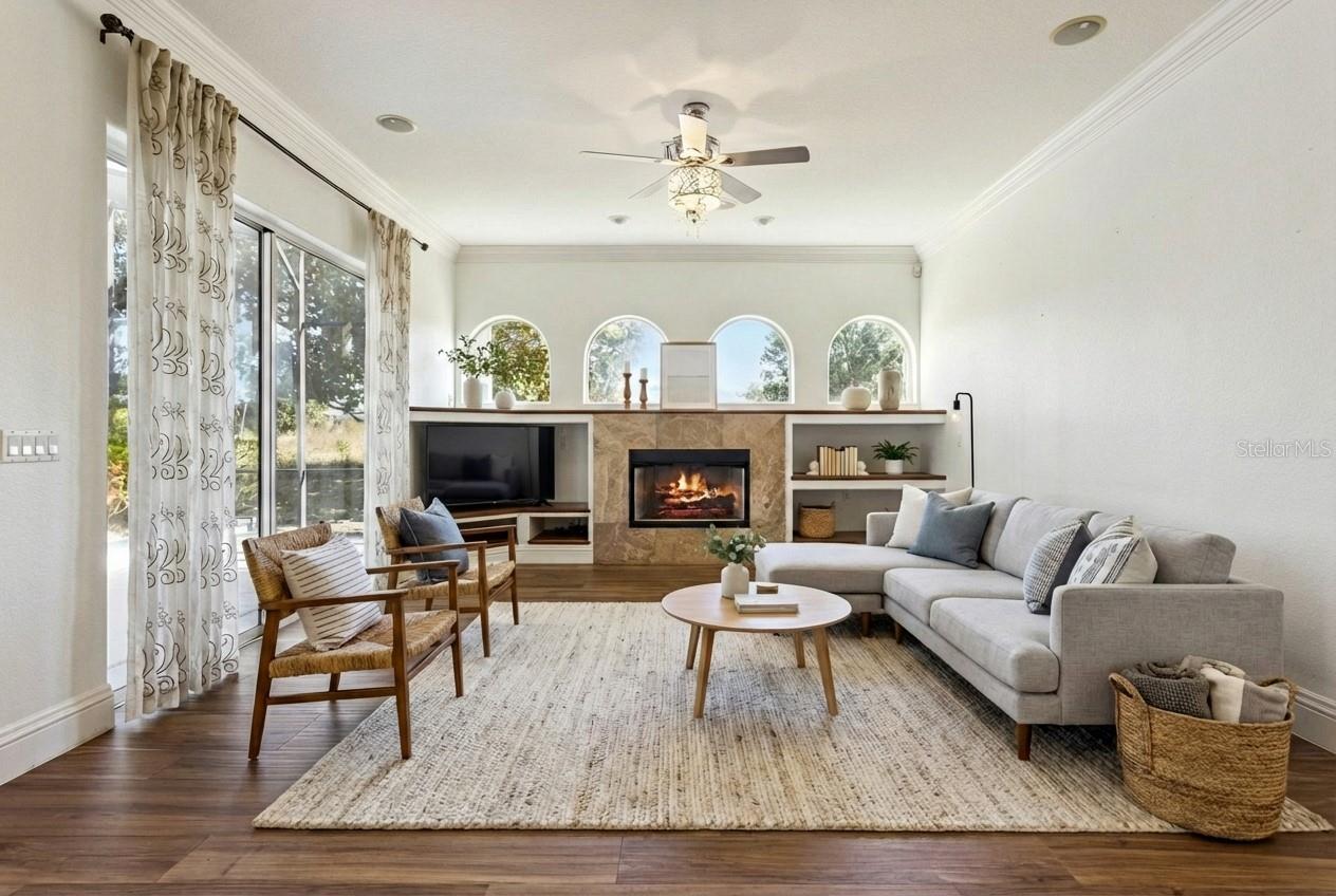 One or more photo(s) has been virtually staged. A beautiful custom-built 4-bedroom, 3-bath pool home located in the Crown Pointe subdivision, showcasing breathtaking sunset views of Lake Minnehaha, part of Clermont’s sought-after Chain of Lakes. This move-in-ready residence offers a well-designed floor plan, quality craftsmanship, and timeless upgrades throughout. Upon arrival, 8-foot double entry doors welcome you into formal living and dining spaces that flow seamlessly into the open-concept family room and kitchen. The main living areas feature Italian wood-grain tile flooring, complemented by elegant crown molding, detailed trim work, and custom finishes. A gas fireplace anchors the great room, creating a warm and inviting gathering space. The kitchen is designed for both functionality and style, featuring quartz countertops, all stainless steel appliances, generous cabinetry, and a spacious eat-in area overlooking the pool. The home offers a three-way bedroom split for added privacy, along with a bonus room above the garage complete with a wet bar and additional storage, ideal for entertaining, a media room, or a private retreat. The oversized covered and screened lanai is ideal for outdoor living and includes a relaxing 8-seat jacuzzi, overlooking the solar-heated pool with PebbleTec® finish—perfect for entertaining or unwinding while enjoying no rear neighbors. The spacious primary suite features a generous walk-in closet and a spa-like bath that has been beautifully updated with Calacatta marble flooring and wall finishes, along with a garden tub and expansive walk-in shower, creating a serene retreat. Additional highlights include a three-car garage, abundant storage throughout, one AC replaced in 2022, and distinctive stone accents and upgraded exterior finishes that enhance the home’s curb appeal. Ideally located just minutes from the public boat launch on Lake Minnehaha, this home is strategically positioned for easy access to grocery stores, dining, shopping, major highways, and convenient commutes to Orlando-area attractions, while still offering the charm of a quiet, quaint community near Historic Downtown Clermont. A rare opportunity to enjoy lake-view living with custom details—without the wait of new construction. Call to schedule your private tour today!