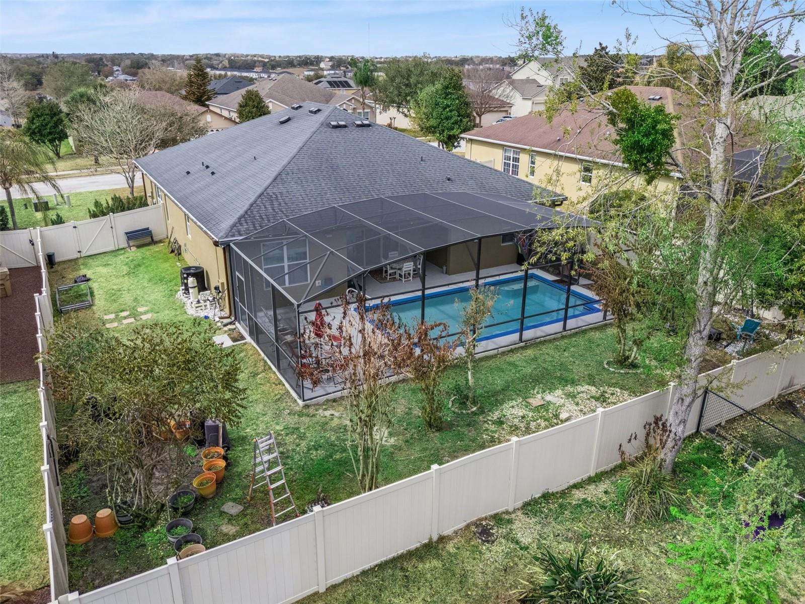 Welcome to the sought after Emerson model home at Vista Grande, this home is equipped with many upgrades starting with fresh paint both interior and exterior. Spacious 4-bedroom, 2 bath 3 car garage, private screened in pool, fenced backyard and much more. Notice the 3-car garage, decorative pavers, gutters, flood lights and a covered screened front entry, which extends your indoor living area creating a comfortable space to enjoy the fresh air. Tall front door, foyer, spacious dining living area, large windows, LVP flooring, recess lighting and built-in cabinets for additional storage. As you head to the kitchen on the right is the laundry room and includes washer, dryer, sink large window and upper cabinets. This kitchen with its grand gourmet island can sit 4-5 comfortably, comes with 3 decorative pendant lighting above, granite counter tops, reverse osmosis, instant hot water "140 degrees" large deep sink, GE Cafe Convection cook top with Bluetooth/wifi capabilities, microwave, GE double wall oven, SS whirlpool 4 door refrigeration with water/ice maker, separate coffee station, plenty of cabinet storage space, pantry has extra shelving. additional space for kitchen table open floor plan to the family room with a 3-track sliding glass door leading out to the covered patio, enclosed screen, private heated pool, with outdoor lighting, spacious pool deck, plenty of yard space for gardening or pets, vinyl fence, the septic is located on the right side and has been maintained. Primary bedroom is spacious with 2 large windows, room fits a king size bed, ceiling fan, farmhouse door leads to the primary ensuite, walk in closet, double sink, high quartz counter tops, tall toilet, 3 LED medicine cabinets, makeup vanity with storage cabinets, window, glass shower doors sitting bench. There are 3 spacious bedrooms with plenty of closet space double doors, decorative ceiling fans, LVP flooring, light filtering shades, large baseboards, the hallway outlets have built-in lighting, a granite desk area, upper cabinets, great for schoolwork, sewing area, charging electronics. 2nd full bath has a tub, handicap handles, double sink, tall toilet, tile to ceiling, Moen faucets and medicine cabinets. Let's head over to the 3-car garage flooring is epoxy gray/multi-color flakes, extra electrical outlet charging station, light fixture, water heater, built in electrical panel generator transfer switch, insulated garage doors, insulated attic in garage, solar fans, 4 vent cutouts on garage doors. This home is a must-see call today to schedule your private home tour.