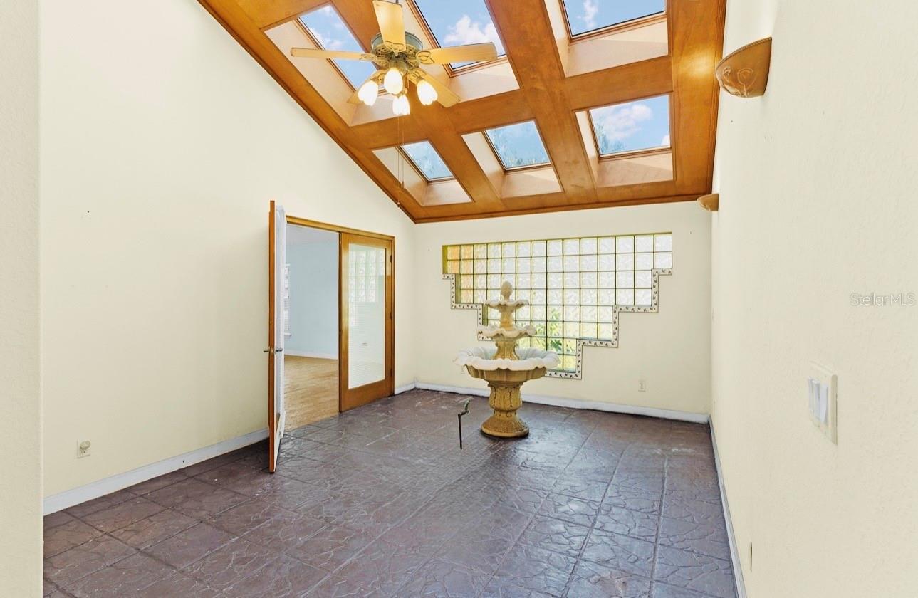 One or more photo(s) has been virtually staged. Wake up to golden sunrises shimmering across the water and begin each day with coffee on your private back porch, where the beauty of lakefront living unfolds right before your eyes. This Clermont gem offers not just a home, but a lifestyle rooted in peace, nature, and inspiration. Step inside to a grand, welcoming foyer that draws you into the heart of the home, where a stunning atrium awaits. Bathed in natural light from overhead skylights, this one-of-a-kind space captures a warm Mediterranean charm, complete with a tranquil built-in fountain creating a serene retreat perfect for quiet moments or gathering with loved ones. The spacious primary suite is your personal sanctuary, featuring wood-look tile flooring, a large walk-in closet, and a spa-like bath with a garden tub, separate shower, dual sinks, and linen storage. French doors open to the atrium, while a private door leads directly to the back porch blending indoor comfort with outdoor beauty. Two additional bedrooms provide flexibility and character, including one with its own half bath, walk-in closet, and wet bar ideal for guests, a creative space, or multi-generational living. The open dining and family room combination invites connection and comfort, with French doors that lead to the patio and out to your private dock perfect for relaxing evenings, entertaining by throwing out a fishing line to bring in a big catch, or simply soaking in the lake views. The kitchen is both functional and inviting, featuring granite countertops, warm wood cabinetry, a breakfast bar, built-in desk area, and a cozy nook for casual dining. With a 2-car garage plus an additional space for a golf cart or lawn equipment, and a generator is included, this home blends convenience with thoughtful design. Ideally located near Pine Ridge Elementary and just minutes from shopping, dining, parks, and entertainment. Recent updates provide peace of mind and added beauty: Roof (2023), landscaping and curb appeal enhancements (2026), deck and dock repairs with fresh paint (2026), and fence repairs (2026). Adding a Home Warranty for peace of mind. This is more than a home it’s your everyday escape, where light, water, and nature come together in perfect harmony.