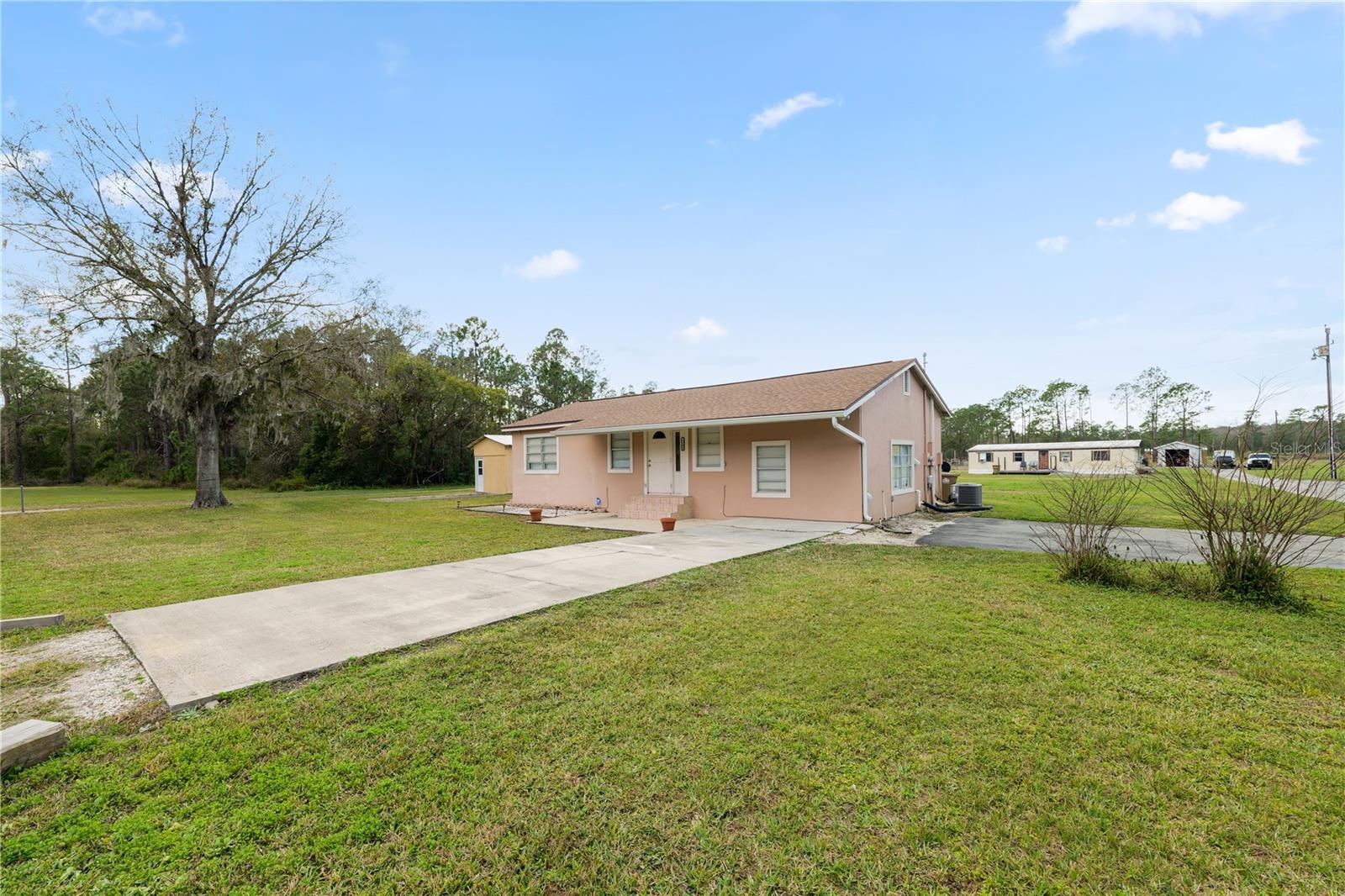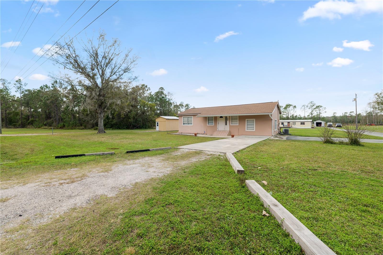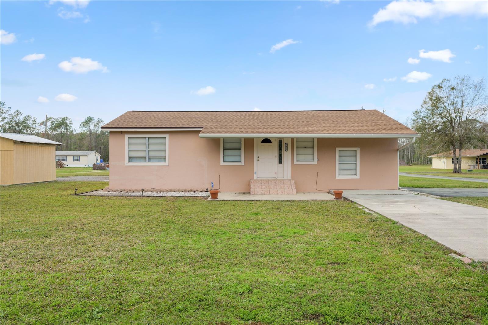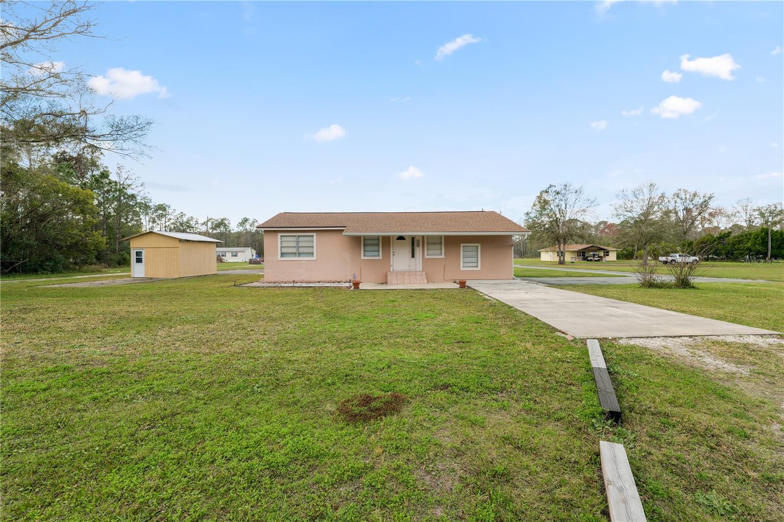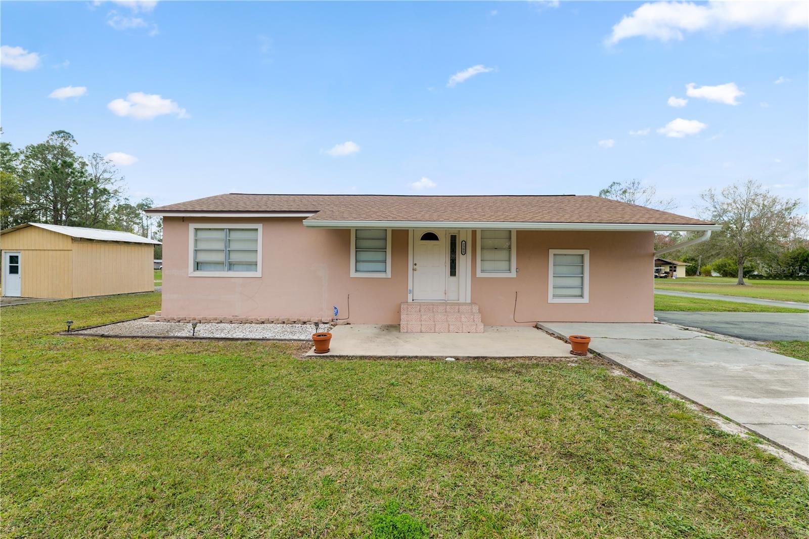 Take a look at this perfect 3 bedroom, 2 bathroom home sitting on 1.25 acres in Clermont. The AC was replaced in 2023 and the roof was replaced in 2017. The plumbing and electrical were replaced in 2010. Arriving at the home, you’ll find a covered front porch, the perfect spot for sipping your morning coffee. Inside, you’ll find tile flooring throughout the home. The living room is spacious and bright with two windows overlooking your front yard. There is a dining area just off the kitchen that offers cabinet storage and a countertop which could be used for entertaining. The kitchen offers wood cabinets, and plenty of countertop space. The primary bedroom with tile flooring also has your washer/dryer hookups for your convenience. The en-suite bathroom has a single sink vanity with storage and a stand up tiled shower. The remaining two bedrooms, located on the opposite side of the home are spacious with good sized closets and share the hall bathroom that has a single sink vanity and a tub/shower combo with custom tile design. Outside you’ll find a tiled and finished storage shed, along with a covered workshop area. With over an acre of land, you have plenty of room to spread out, so bring all your toys! This home has so much to offer! If you have visions of starting your family compound, this property is also available for sale with 2323 State Road 33! Schedule your private showing today!