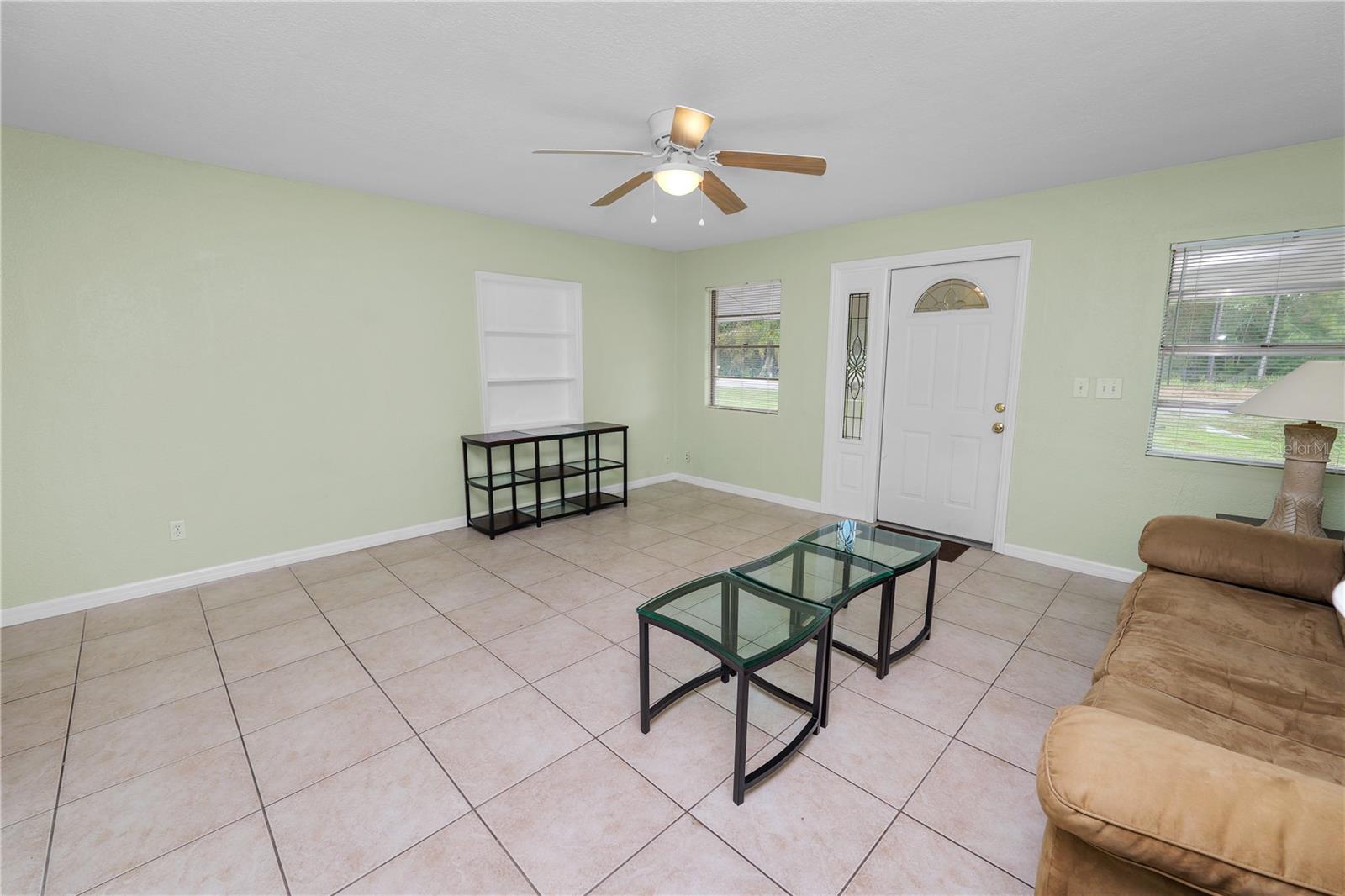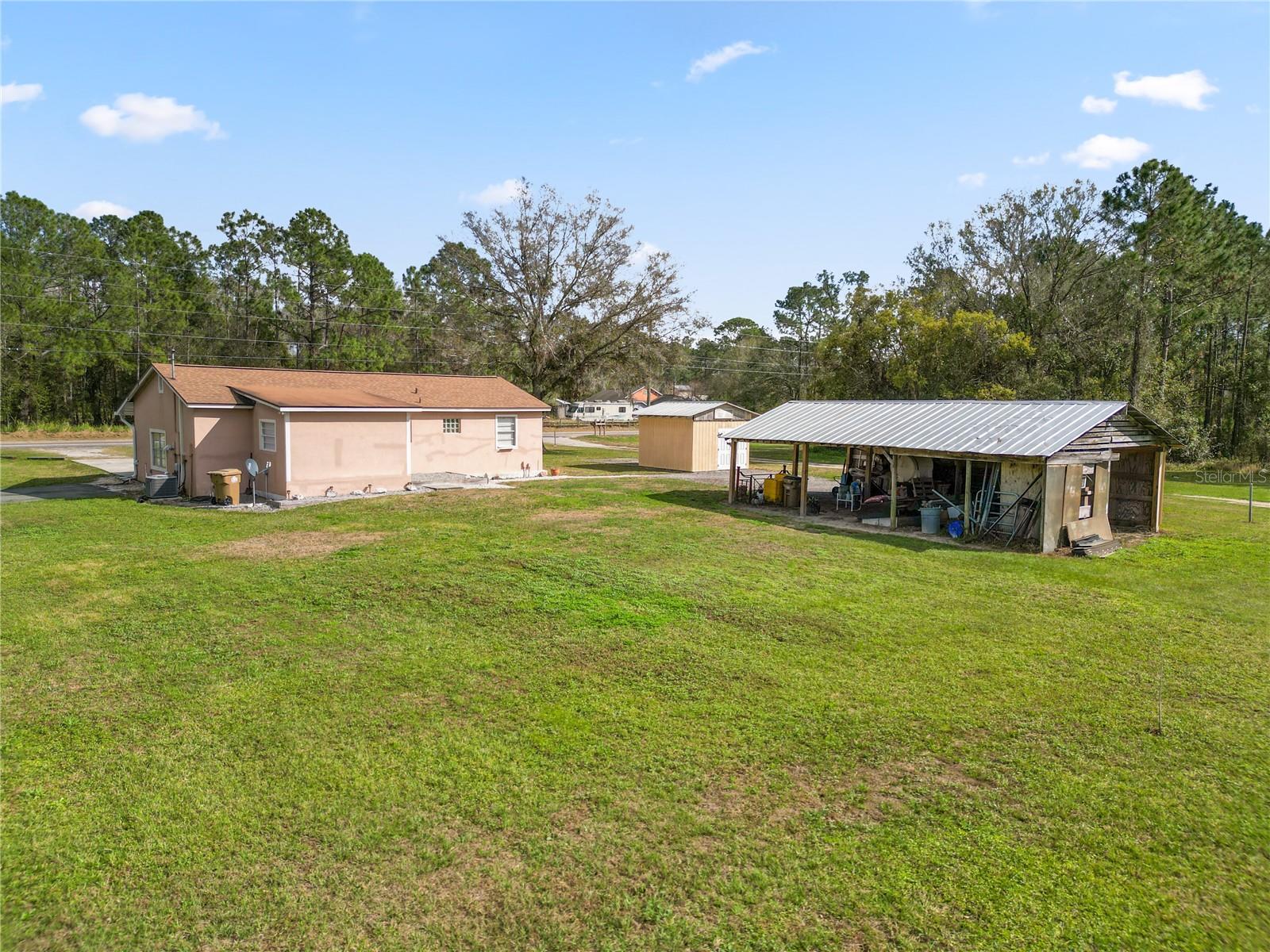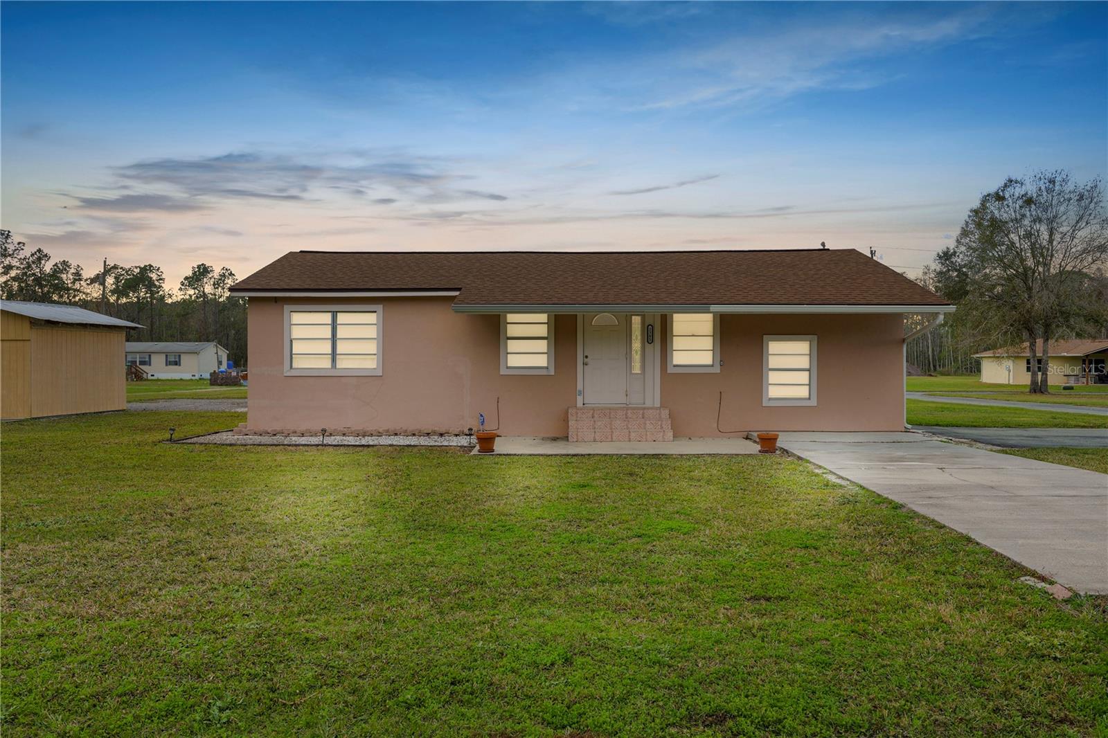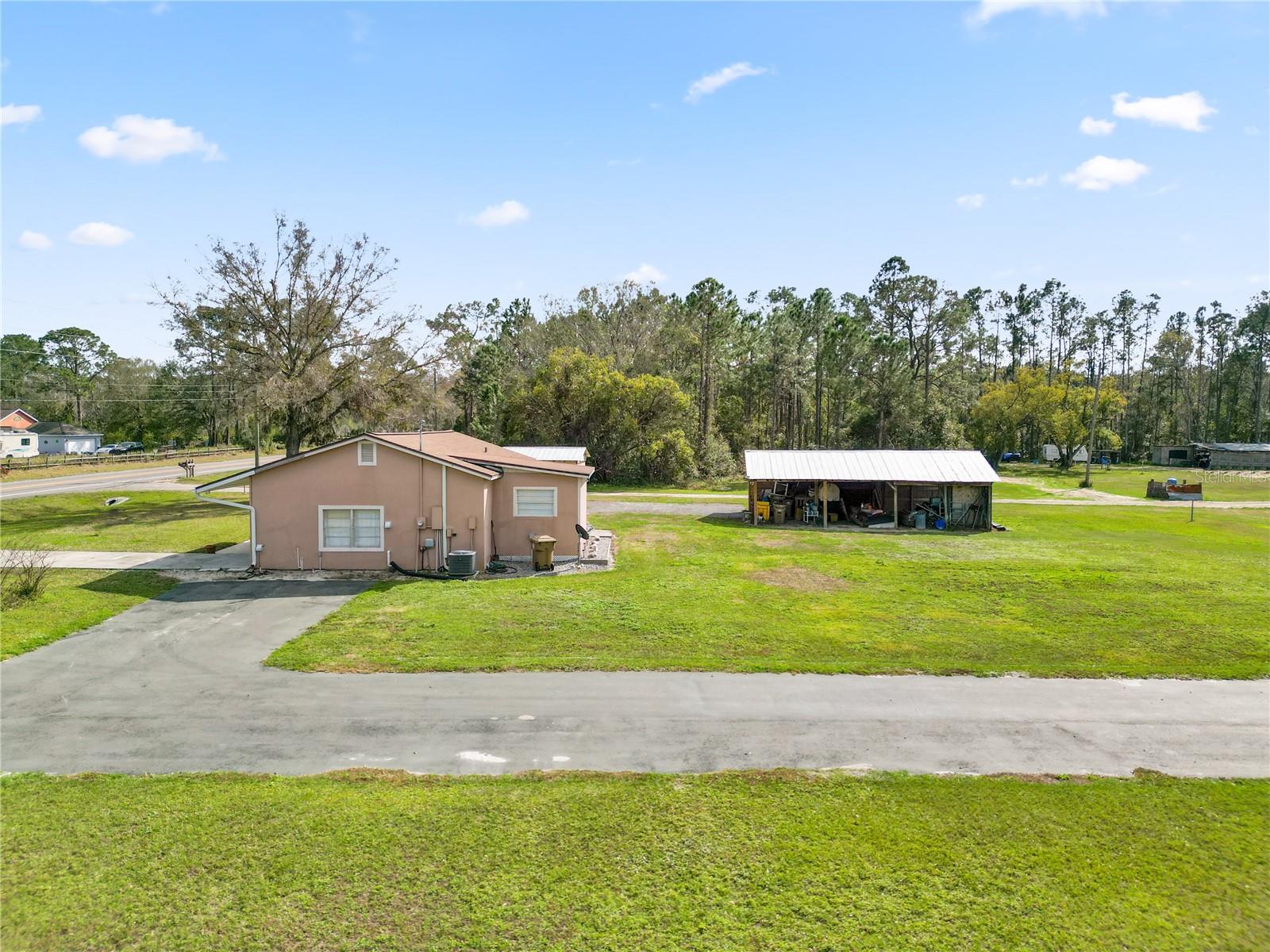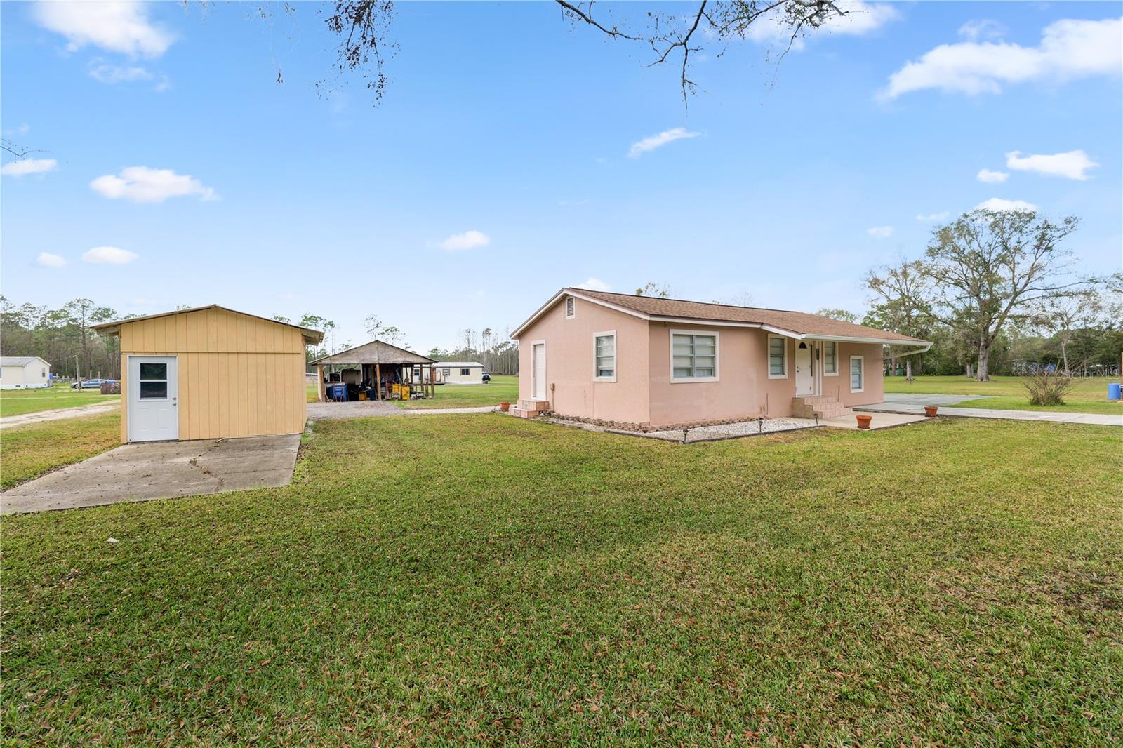 Take a look at this perfect 3 bedroom, 2 bathroom home sitting on 1.25 acres in Clermont. The AC was replaced in 2023 and the roof was replaced in 2017. The plumbing and electrical were replaced in 2010. Arriving at the home, you’ll find a covered front porch, the perfect spot for sipping your morning coffee. Inside, you’ll find tile flooring throughout the home. The living room is spacious and bright with two windows overlooking your front yard. There is a dining area just off the kitchen that offers cabinet storage and a countertop which could be used for entertaining. The kitchen offers wood cabinets, and plenty of countertop space. The primary bedroom with tile flooring also has your washer/dryer hookups for your convenience. The en-suite bathroom has a single sink vanity with storage and a stand up tiled shower. The remaining two bedrooms, located on the opposite side of the home are spacious with good sized closets and share the hall bathroom that has a single sink vanity and a tub/shower combo with custom tile design. Outside you’ll find a tiled and finished storage shed, along with a covered workshop area. With over an acre of land, you have plenty of room to spread out, so bring all your toys! This home has so much to offer! If you have visions of starting your family compound, this property is also available for sale with 2323 State Road 33! Schedule your private showing today!