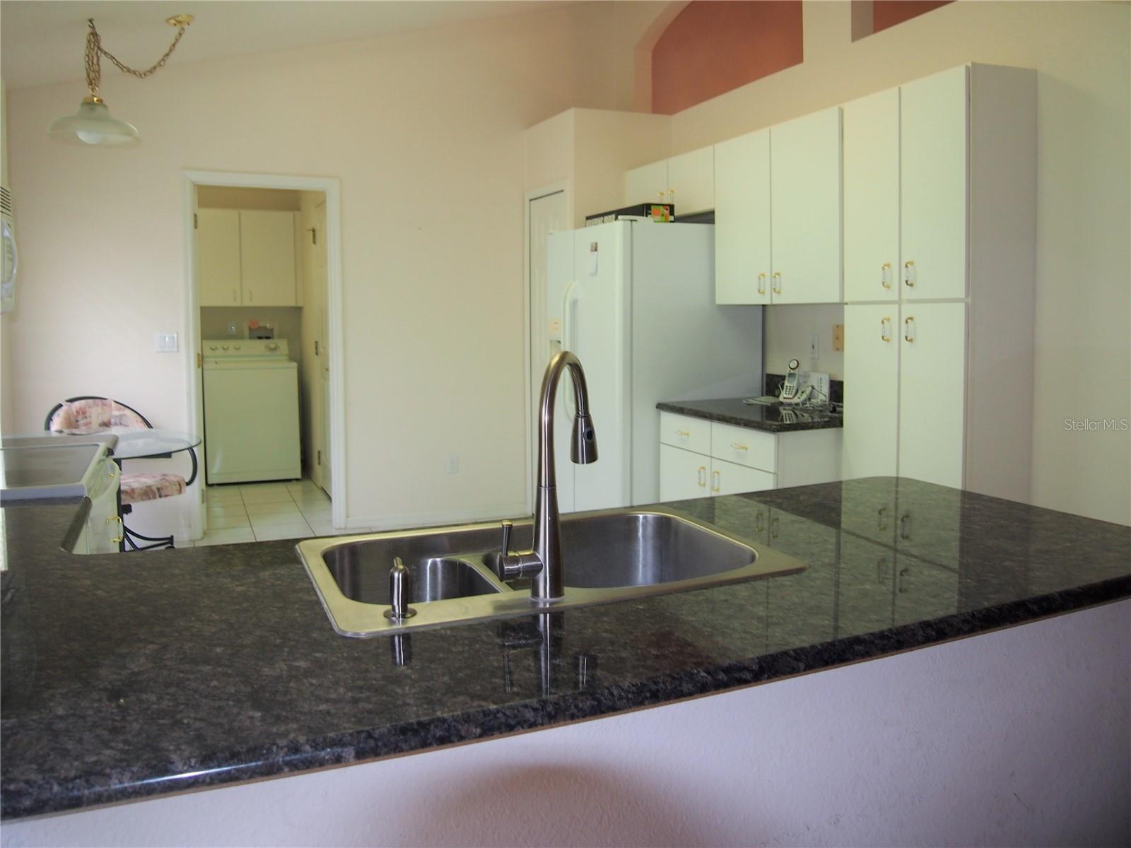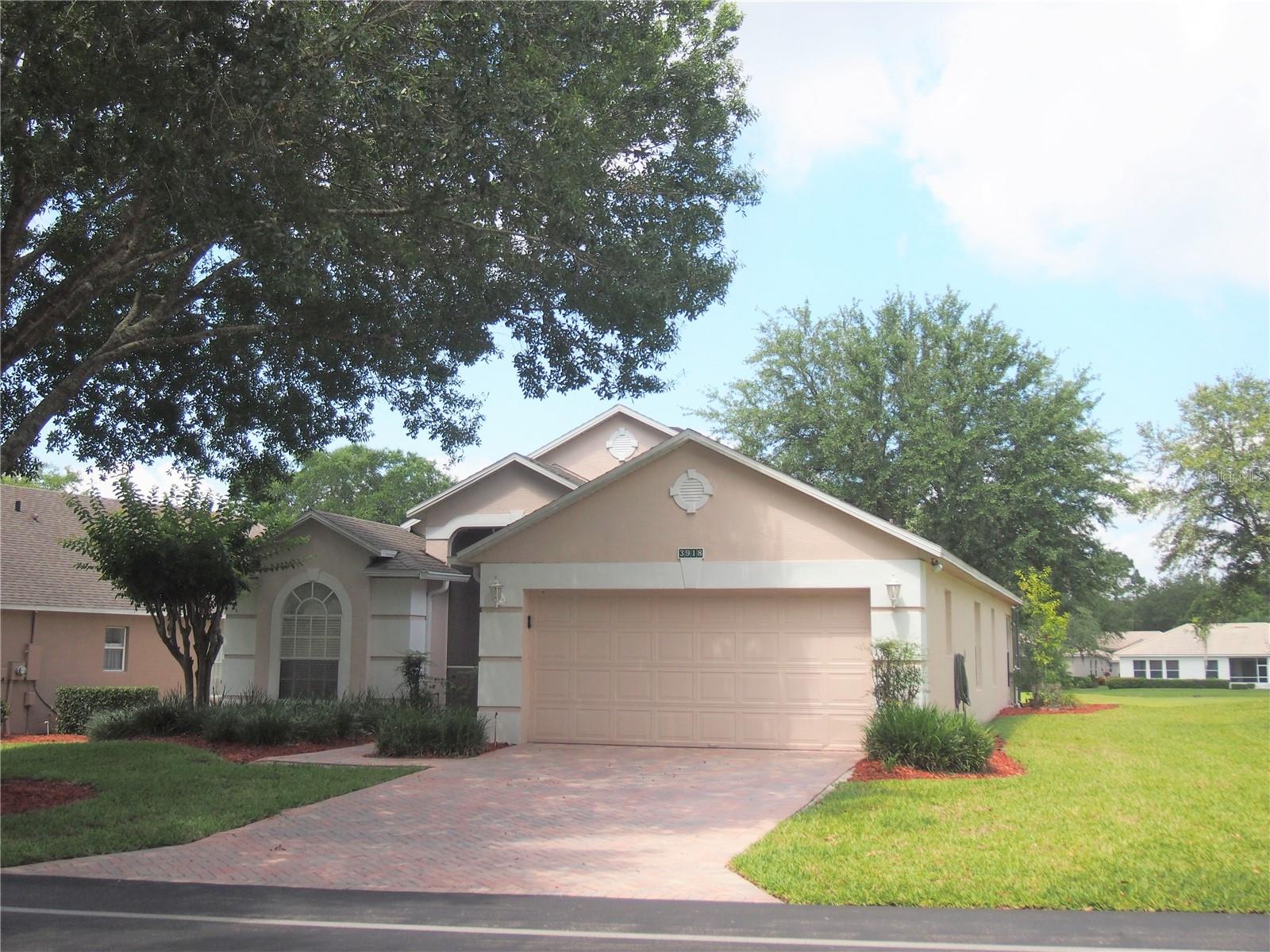 Reduced $30,000. Brand NEW A/C has just been installed mid June 2025. Oxford model on the 14th of the Championship golf course in 55+ Kings Ridge. Home has a paver brick drive and walkway. A New roof Nov 2017. Laminate flooring throughout main area of home. The kitchen has granite countertops and tile flooring. The lanai is enclosed with plexiglass windows. An additional screen enclosure on back for watching the beautiful sunsets. Washer and dryer remain with home. Kings Ridge is a 55 Plus gated golf community located in the rolling hills of Clermont, FL. Enjoy the Royal life style in the multi-million $ clubhouse with 3 heated pools, spas, tennis & pickle ball courts, billiards, shuffle board, shows, Bingo, cards and clubs galore. The monthly maintenance fees include: lawn maintenance including trimming of shrubs, care of irrigation system & irrigation water, internet, TV & home phone thru Opticaltel, maintenance of roads and outside painting of home every 7 years. Take your golf cart to the Kings Ridge Plaza where you can do your grocery shopping, banking or dine out.