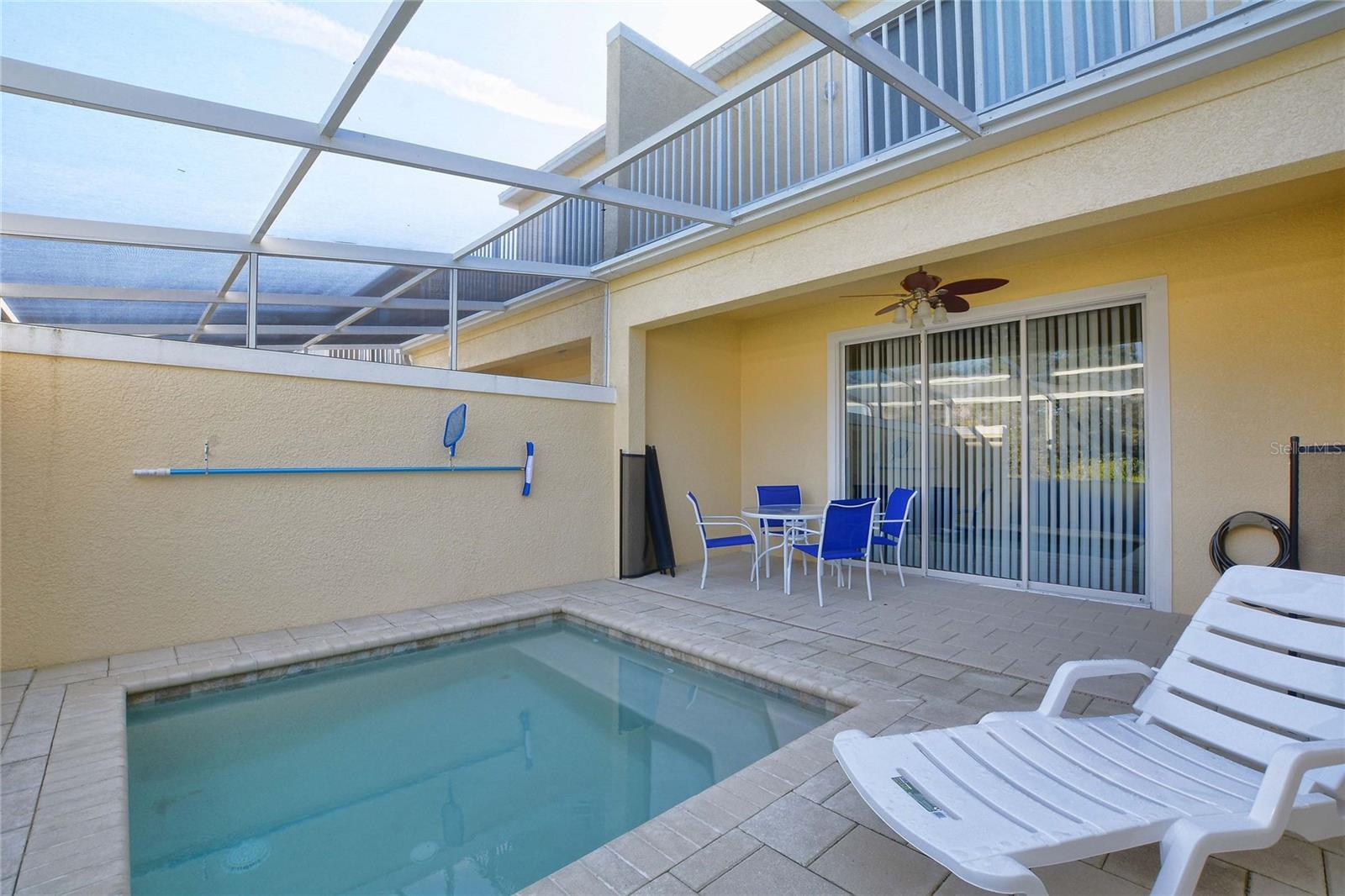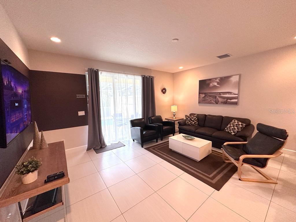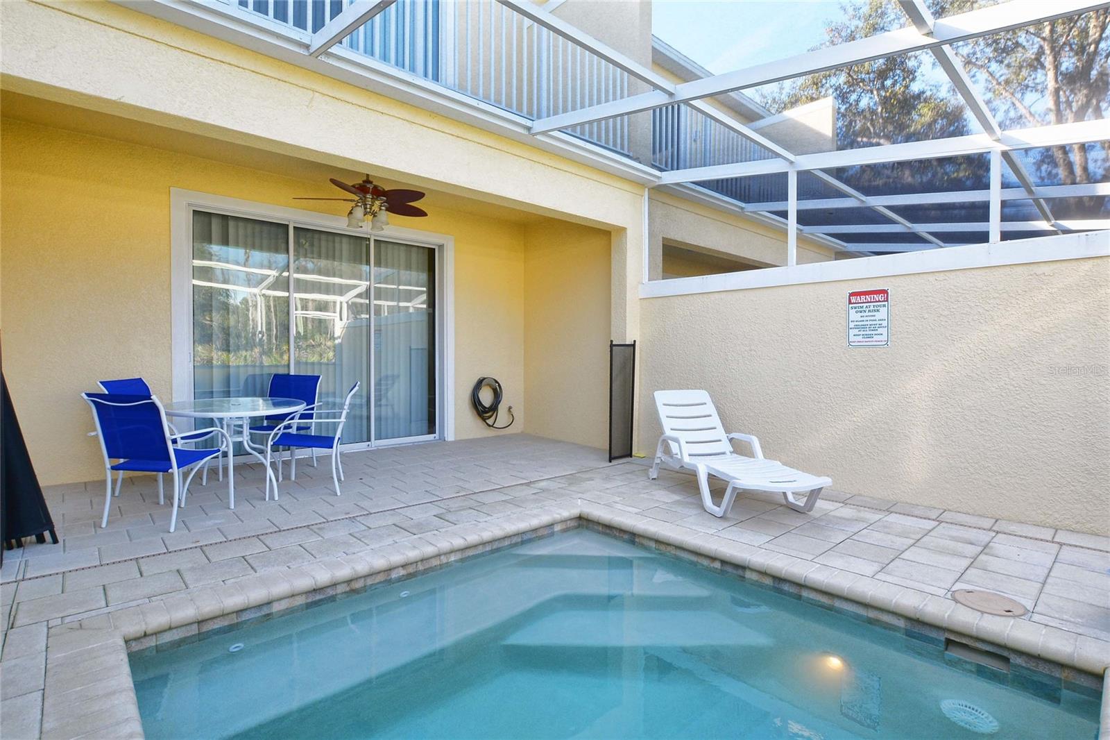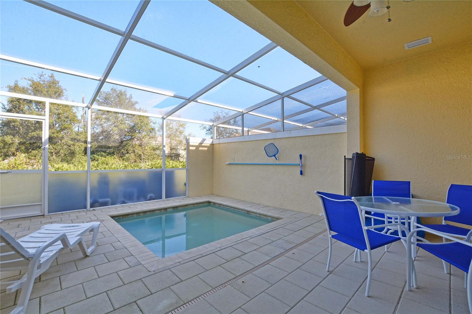 Beautifully and well decorated, fully furnished, contemporary townhome in SERENITY AT SILVER CREEK. 3 bedroom 3 bathroom home with private pool backed onto a conservation area, providing a tranquil setting to relax and enjoy the beautiful Florida weather. The home has tile floors in all the living areas as well as the bathrooms, screened porch with a private pool, and inside utilities. Relax in your screened in pool area and cool off in your private plunge pool after long workdays or family days at the parks! Serenity is a great place to live full time or to spend a vacation, pet friendly and located close to a wide variety of shops and restaurants. The community is zoned for SHORT TERM RENTAL and is close to DISNEY parks and attractions. Property is complete with linens and utensils for SHORT TERM RENTAL.