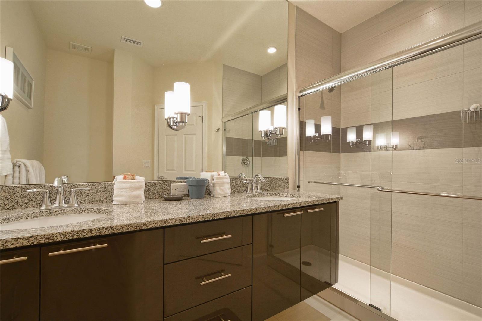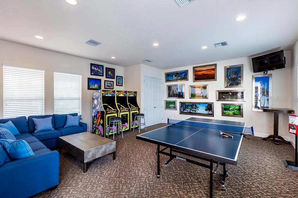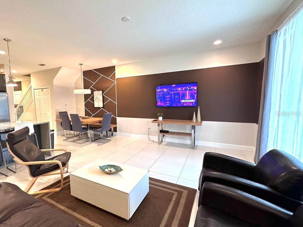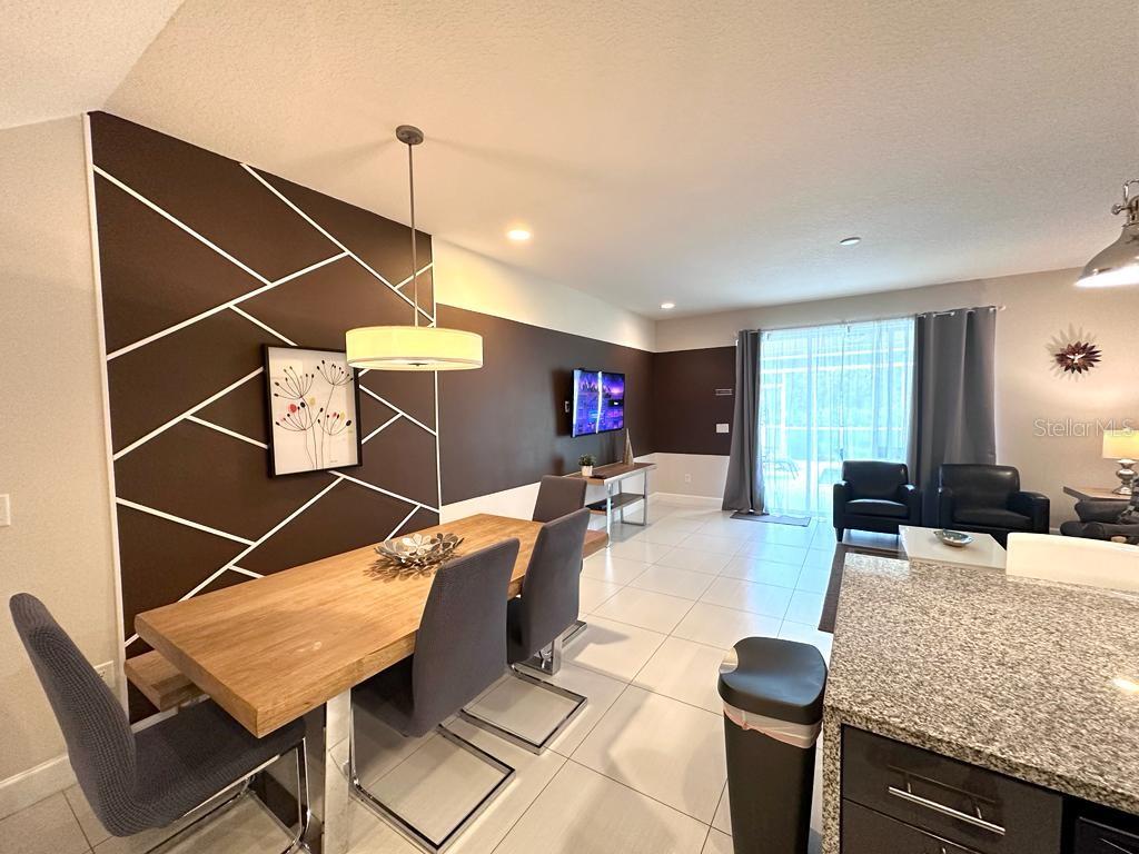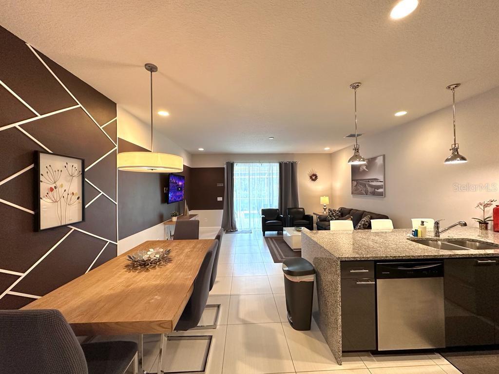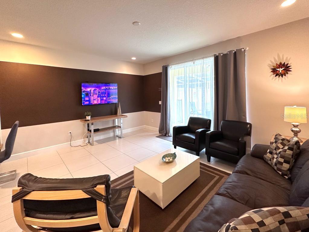 Beautifully and well decorated, fully furnished, contemporary townhome in SERENITY AT SILVER CREEK. 3 bedroom 3 bathroom home with private pool backed onto a conservation area, providing a tranquil setting to relax and enjoy the beautiful Florida weather. The home has tile floors in all the living areas as well as the bathrooms, screened porch with a private pool, and inside utilities. Relax in your screened in pool area and cool off in your private plunge pool after long workdays or family days at the parks! Serenity is a great place to live full time or to spend a vacation, pet friendly and located close to a wide variety of shops and restaurants. The community is zoned for SHORT TERM RENTAL and is close to DISNEY parks and attractions. Property is complete with linens and utensils for SHORT TERM RENTAL.