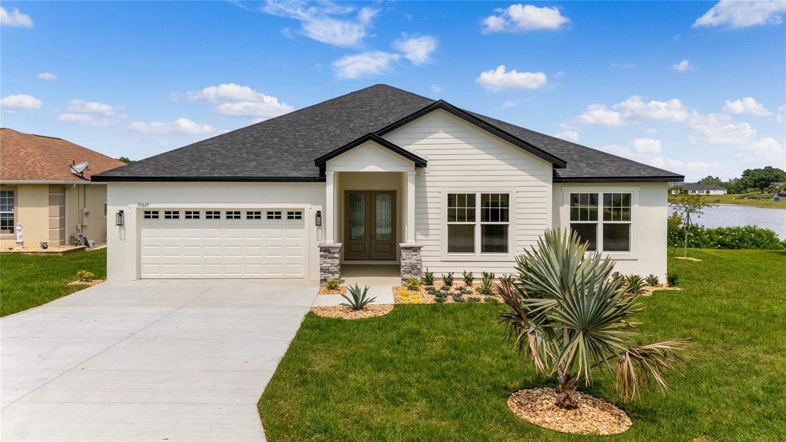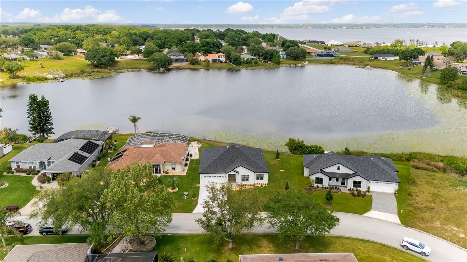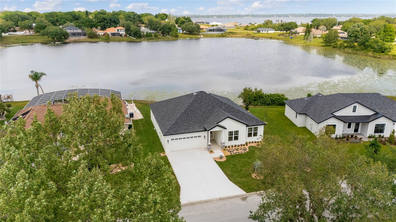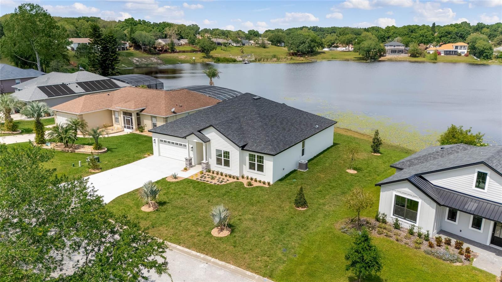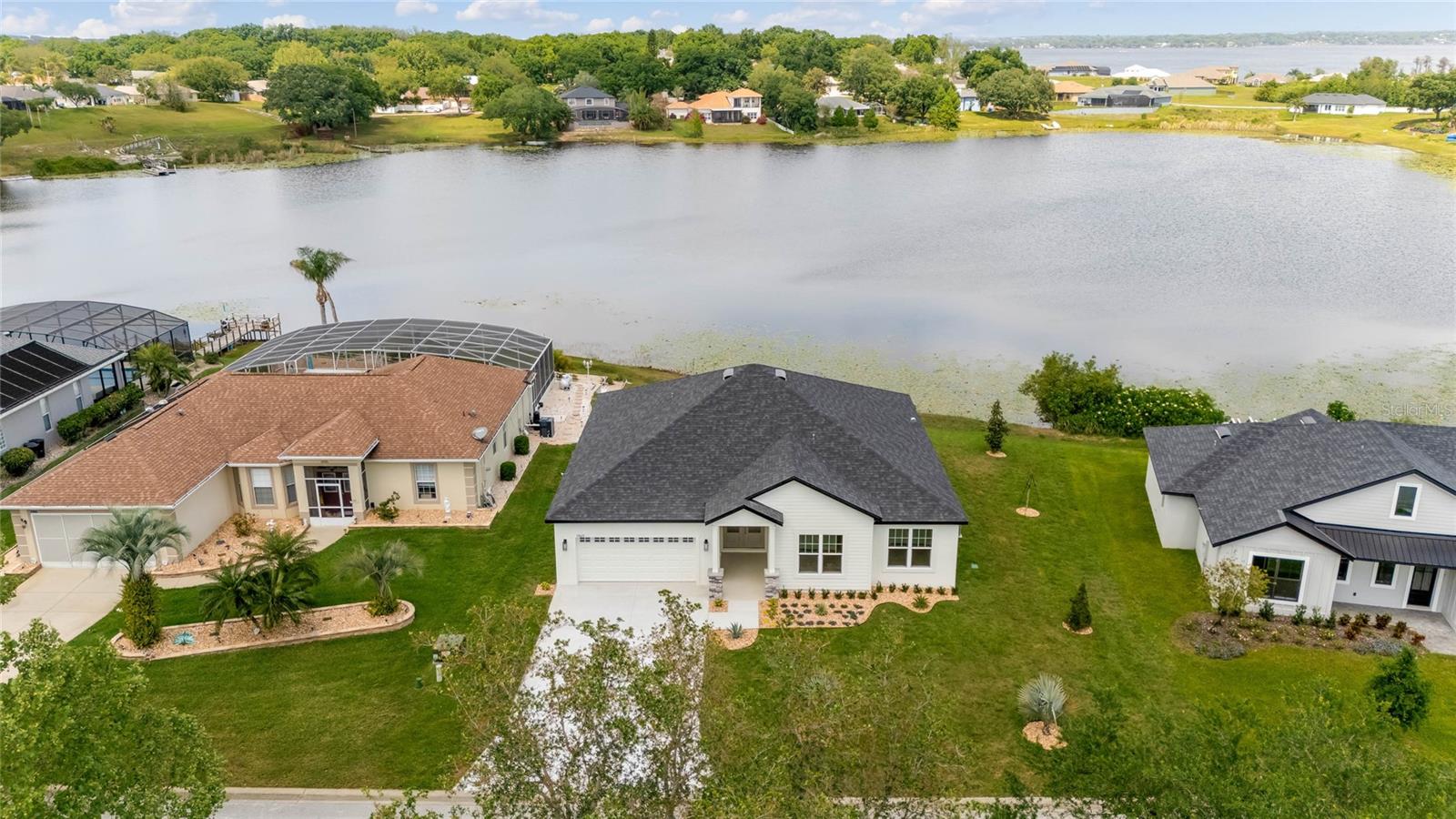 One or more photo(s) has been virtually staged. This beautiful home is truly MOVE-IN READY! BRAND NEW, 4 bedroom, 2 bath LAKEFRONT home in a tranquil neighborhood with gorgeous views of Lake Clair in Clermont. You will be amazed at the amount of UPGRADES you will enjoy: Quartz counter tops in the Kitchen and throughout, all lighting fixtures, crown molding, entry door with glass inserts, enlarged driveway and walkway, upgraded landscape package, upscale modern tile throughout...it goes on & on! Some pictures have been virtually staged. The modern appointed kitchen has a large under-mount stainless steel sink, sprayer, self-close drawers, elegant backsplash, and a large Walk In Pantry. This open home concept allows you to share special moments with family and guests, and affords privacy in all bedrooms. The main bedroom also has an enchanting lake view, a Spa-like bathroom suite offering large shower w/ pebble rock flooring, large shower head & sprayer, double sinks, quartz counter tops...The sliding doors disappear within the wall to fully appreciate the best part: The grandiose back yard view to Lake Clair. Priceless! Welcome to your own paradise! Builder warranty in place. Confirm most updated school zones. Just added brand new back porch screen!
