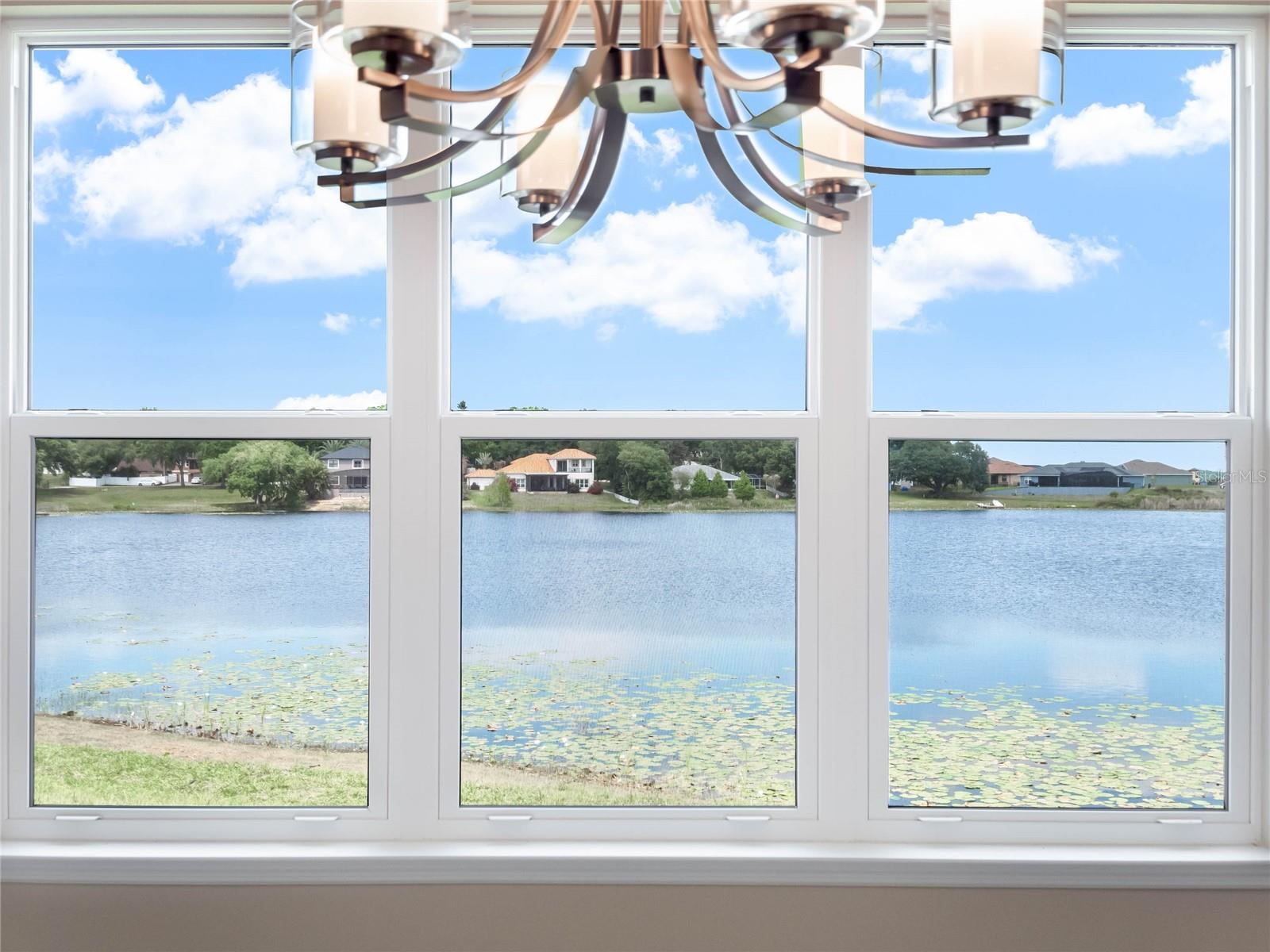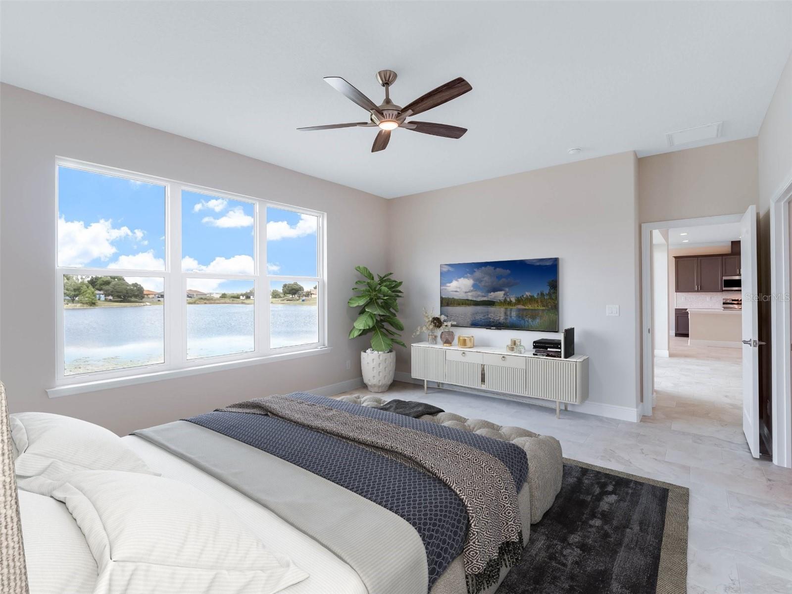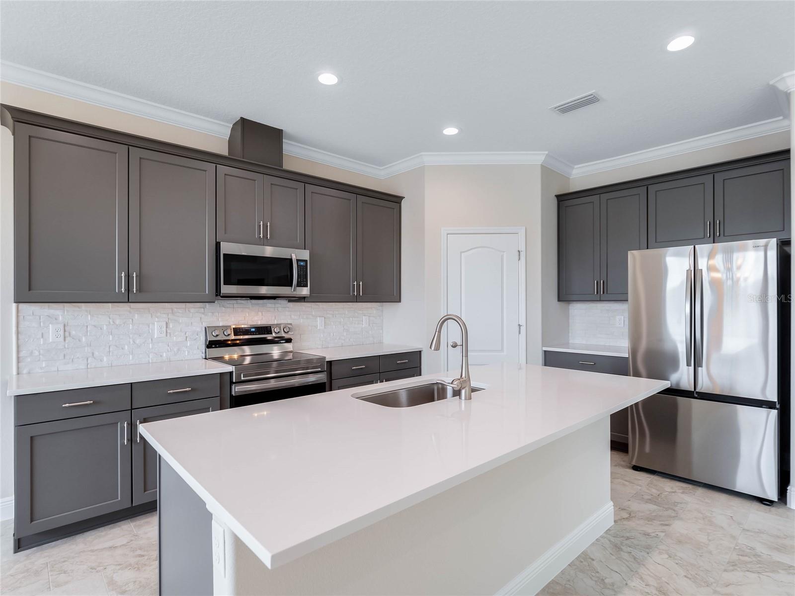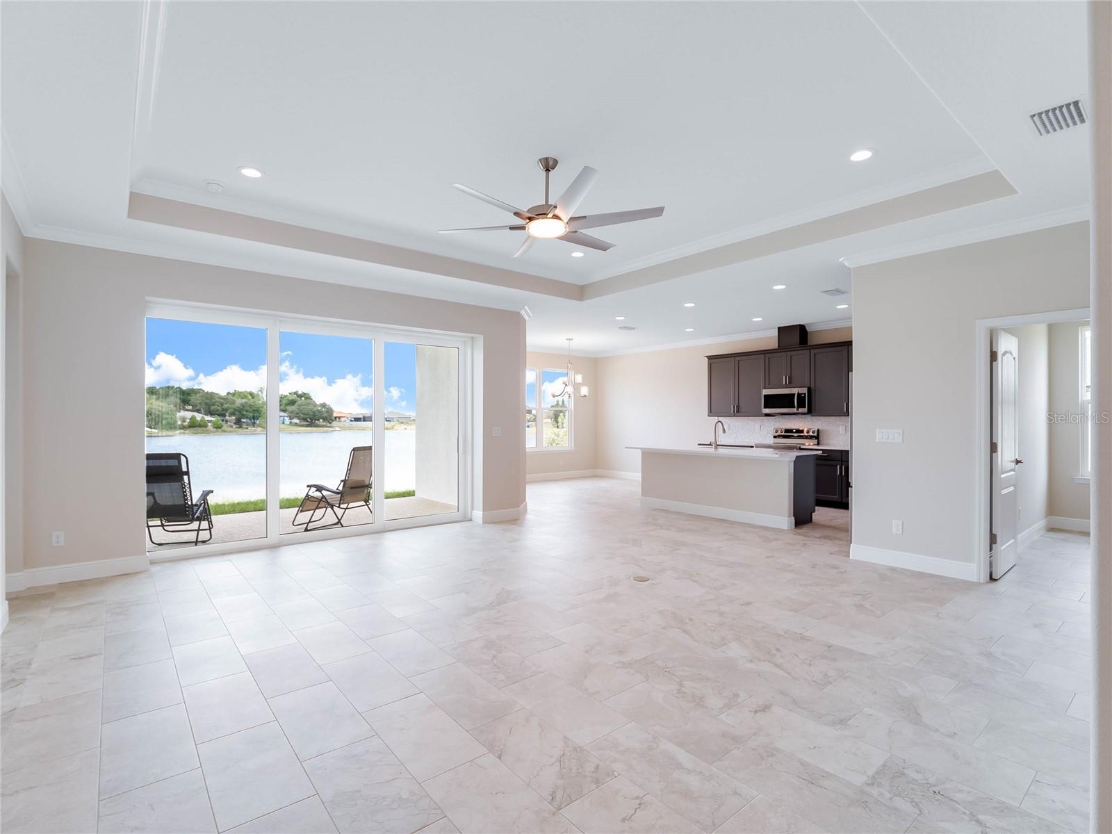 One or more photo(s) has been virtually staged. This beautiful home is truly MOVE-IN READY! BRAND NEW, 4 bedroom, 2 bath LAKEFRONT home in a tranquil neighborhood with gorgeous views of Lake Clair in Clermont. You will be amazed at the amount of UPGRADES you will enjoy: Quartz counter tops in the Kitchen and throughout, all lighting fixtures, crown molding, entry door with glass inserts, enlarged driveway and walkway, upgraded landscape package, upscale modern tile throughout...it goes on & on! Some pictures have been virtually staged. The modern appointed kitchen has a large under-mount stainless steel sink, sprayer, self-close drawers, elegant backsplash, and a large Walk In Pantry. This open home concept allows you to share special moments with family and guests, and affords privacy in all bedrooms. The main bedroom also has an enchanting lake view, a Spa-like bathroom suite offering large shower w/ pebble rock flooring, large shower head & sprayer, double sinks, quartz counter tops...The sliding doors disappear within the wall to fully appreciate the best part: The grandiose back yard view to Lake Clair. Priceless! Welcome to your own paradise! Builder warranty in place. Confirm most updated school zones. Just added brand new back porch screen!