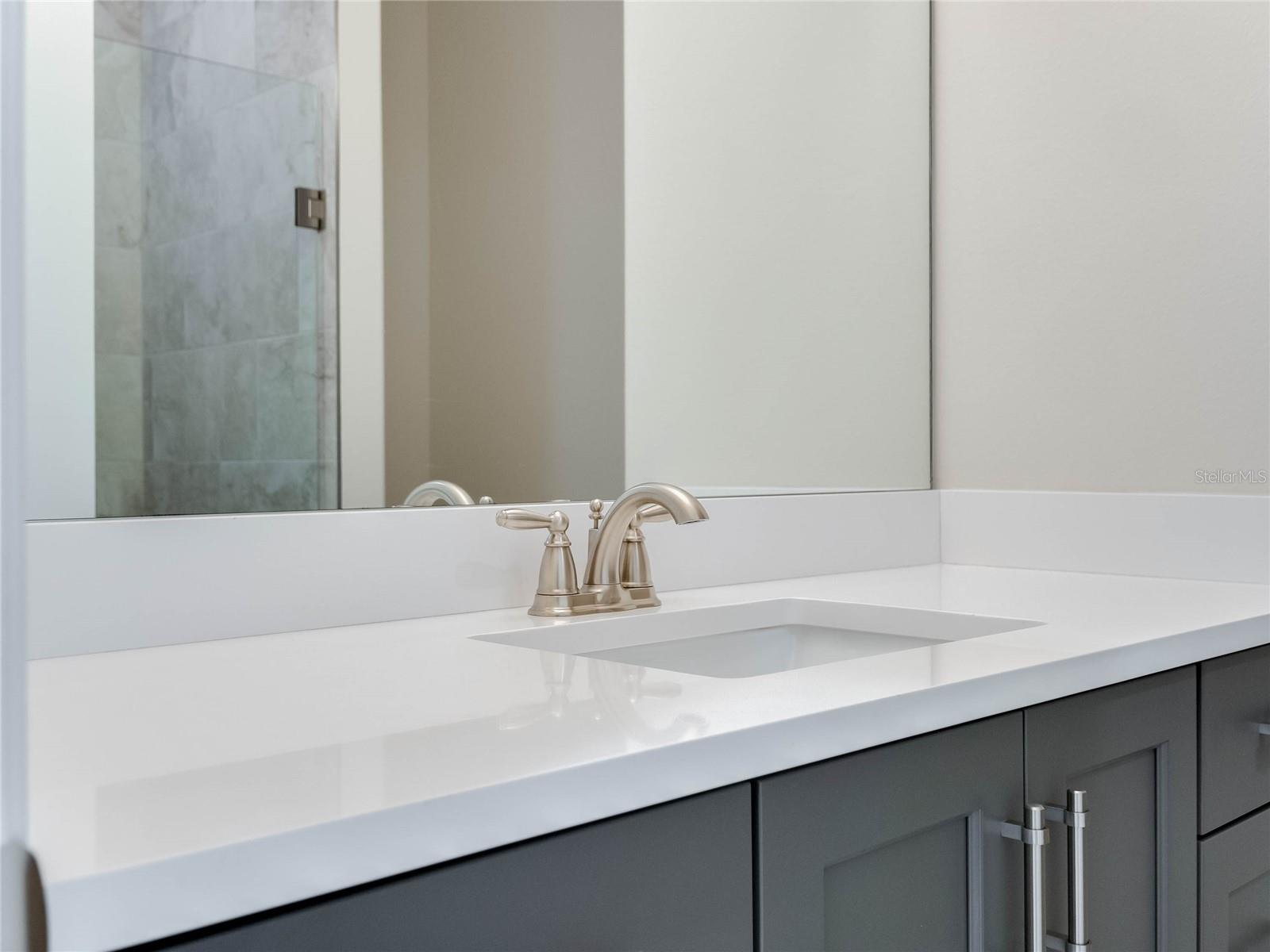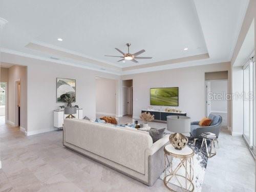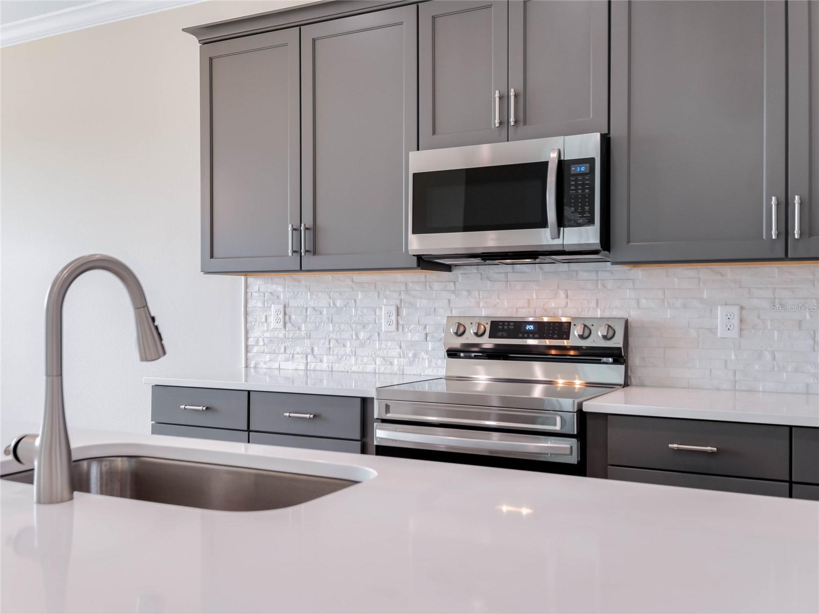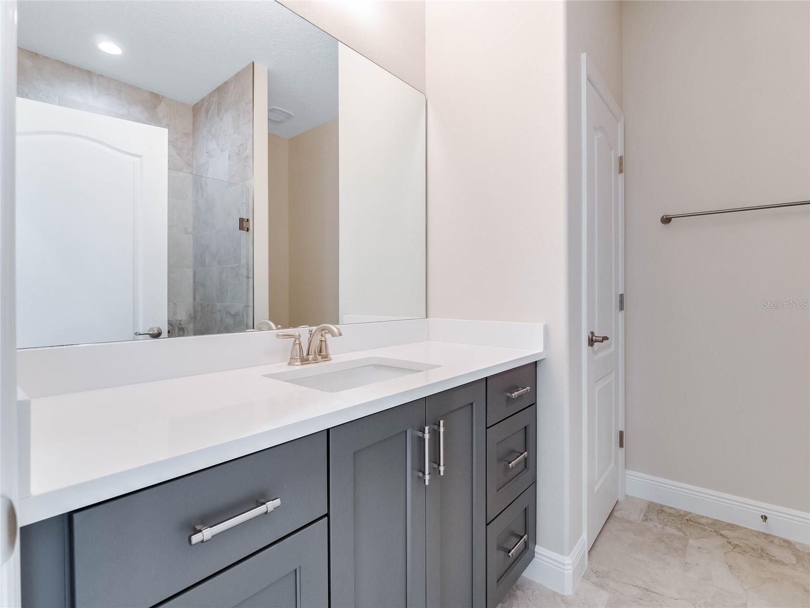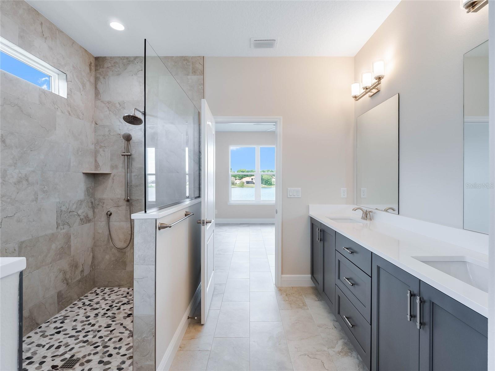 One or more photo(s) has been virtually staged. This beautiful home is truly MOVE-IN READY! BRAND NEW, 4 bedroom, 2 bath LAKEFRONT home in a tranquil neighborhood with gorgeous views of Lake Clair in Clermont. You will be amazed at the amount of UPGRADES you will enjoy: Quartz counter tops in the Kitchen and throughout, all lighting fixtures, crown molding, entry door with glass inserts, enlarged driveway and walkway, upgraded landscape package, upscale modern tile throughout...it goes on & on! Some pictures have been virtually staged. The modern appointed kitchen has a large under-mount stainless steel sink, sprayer, self-close drawers, elegant backsplash, and a large Walk In Pantry. This open home concept allows you to share special moments with family and guests, and affords privacy in all bedrooms. The main bedroom also has an enchanting lake view, a Spa-like bathroom suite offering large shower w/ pebble rock flooring, large shower head & sprayer, double sinks, quartz counter tops...The sliding doors disappear within the wall to fully appreciate the best part: The grandiose back yard view to Lake Clair. Priceless! Welcome to your own paradise! Builder warranty in place. Confirm most updated school zones. Just added brand new back porch screen!