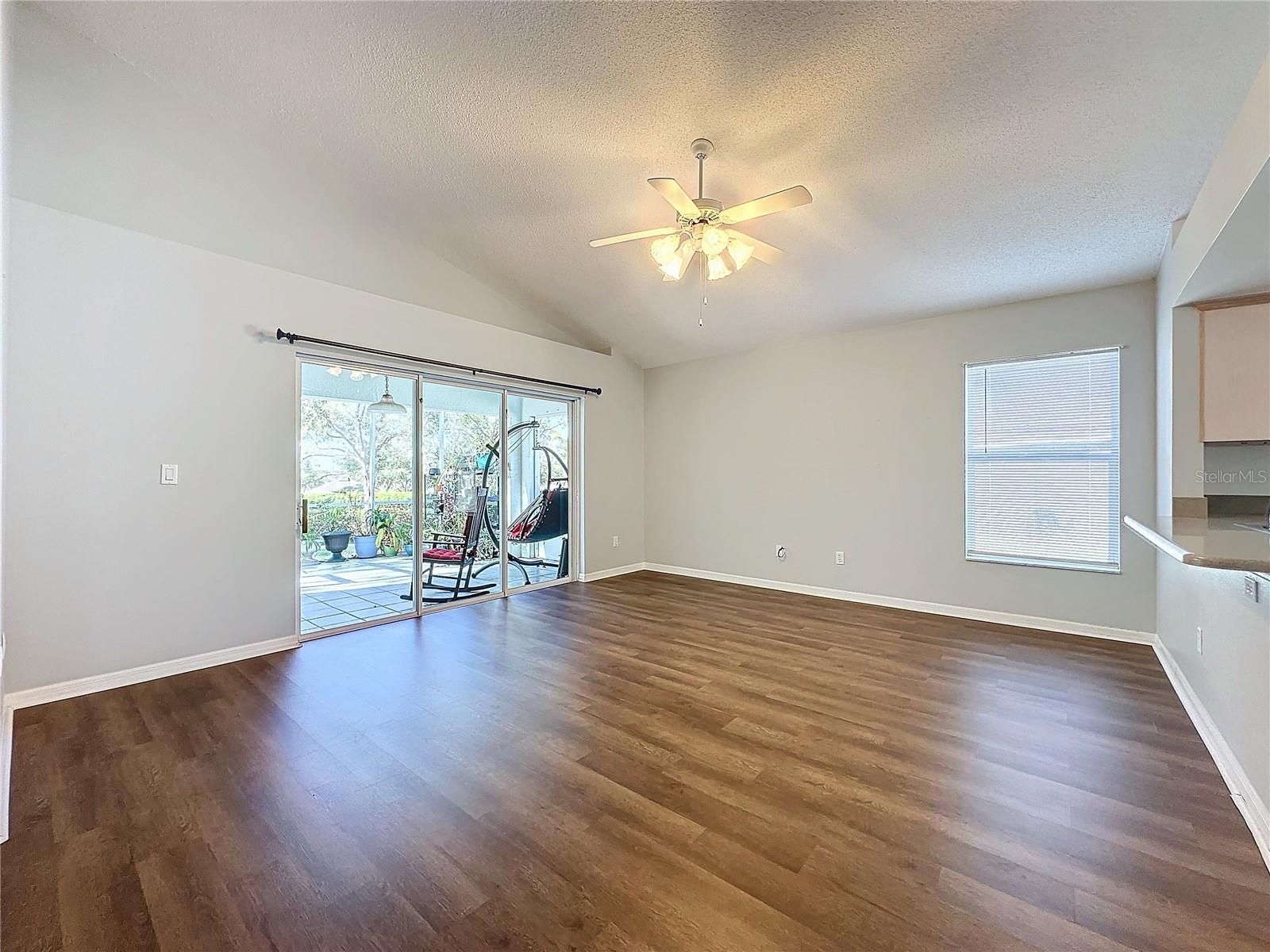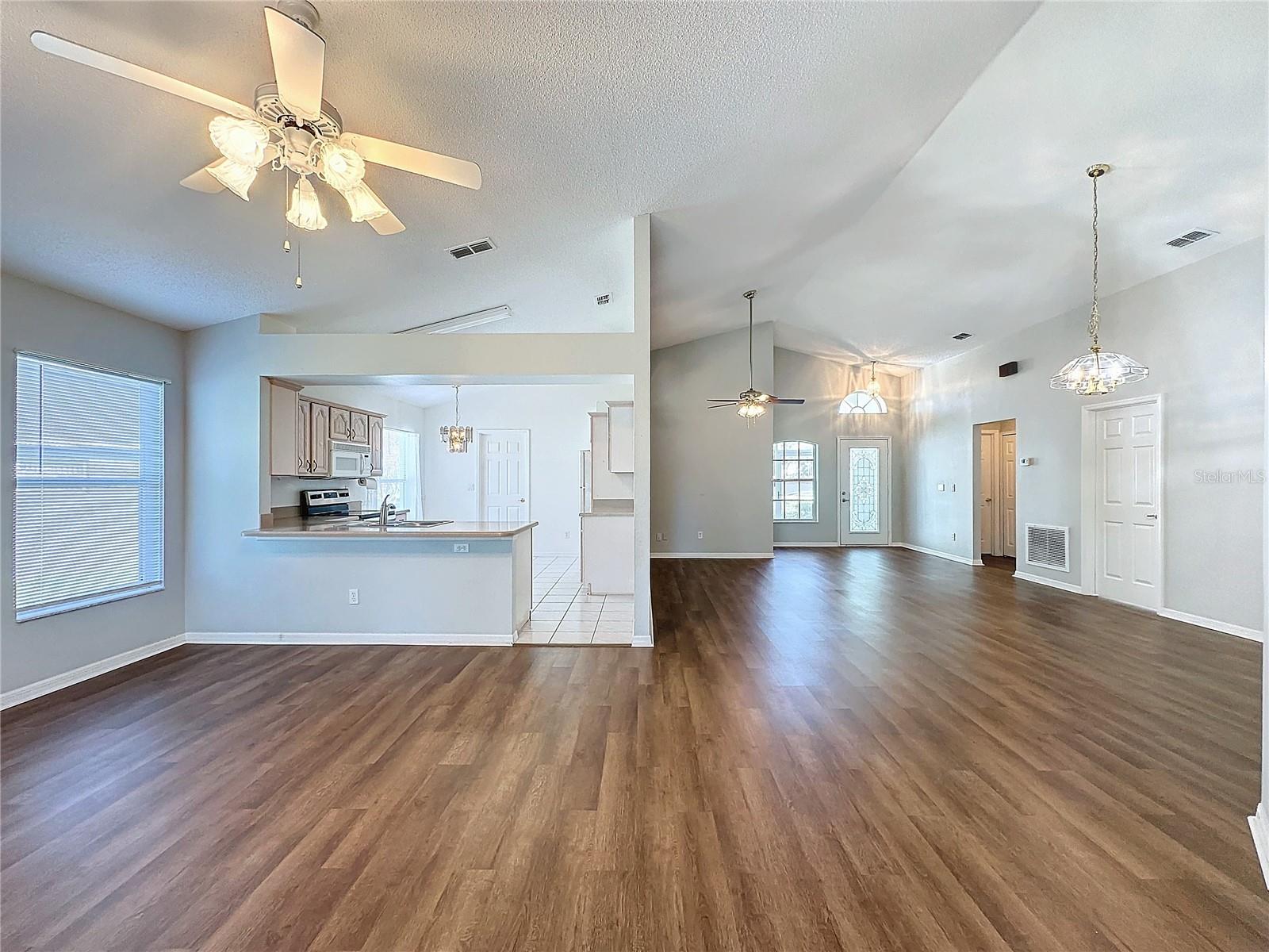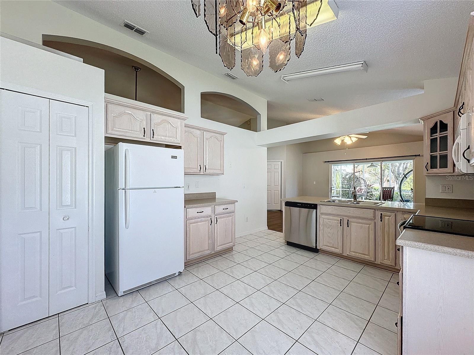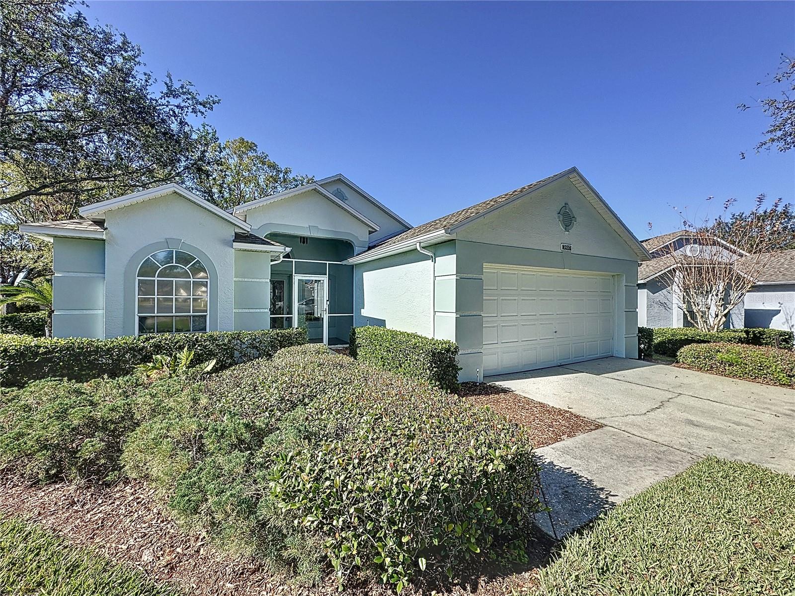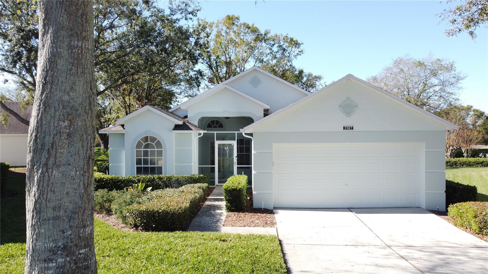 Welcome to the sought after 55+ Golf Course Community of Kings Ridge in beautiful hills of Clermont. This spacious 2 bedroom. plus Den/Study/Office which can be turned into a 3rd bedroom has everything to offer. Oversize garage, car plus golf cart parking. Beautiful Airy OPEN FLOOR PLAN, vaulted ceilings. New Dishwasher and Range;2023 new laminate floors; A/C 2023, Roof 2018. Eat in Kitchen; full beveled glass front door to allow natural light to flow throughout home; Enclosed front screen entryway for added security; Extended screened in lanai; PRIVATE backyard. It is a MUST SEE! Kings Ridge is located on 2 golf courses, Executive & Championship .. HOA fees include the use of the multi million dollar clubhouse, 3 pools, 2 spas, pickle ball and tennis ball courts, clubs to join, bingo, movies, etc. Lawn maintenance, basic cable, internet included. Hop on your golf cart and drive to the local shopping center, grocery store, banks, restaurants, doctor offices, hair/nail salon, Starbucks. Enjoy the day trip to local attractions like Disney, Sea World, Universal, NASA Kennedy Space Center, world famous shopping or a trip to one of our beautiful beaches. Kings Ridge is centrally located in the middle of it all. Orlando Airport is only a short 45 minute drive. Come live the good life in Kings Ridge and see what you have been missing. This one is a must see, it will not last long. Room Feature: Linen Closet In Bath (Primary Bedroom).