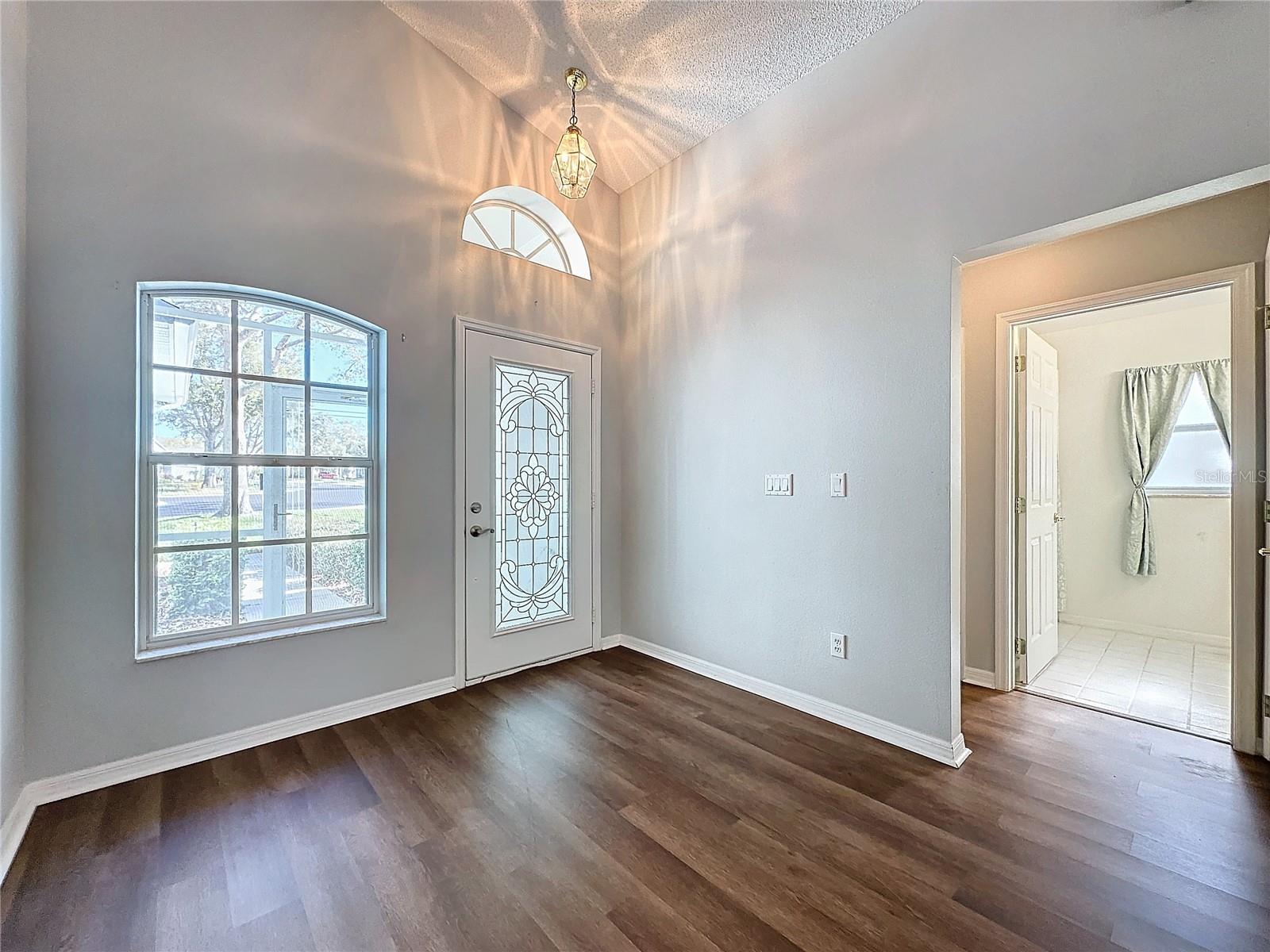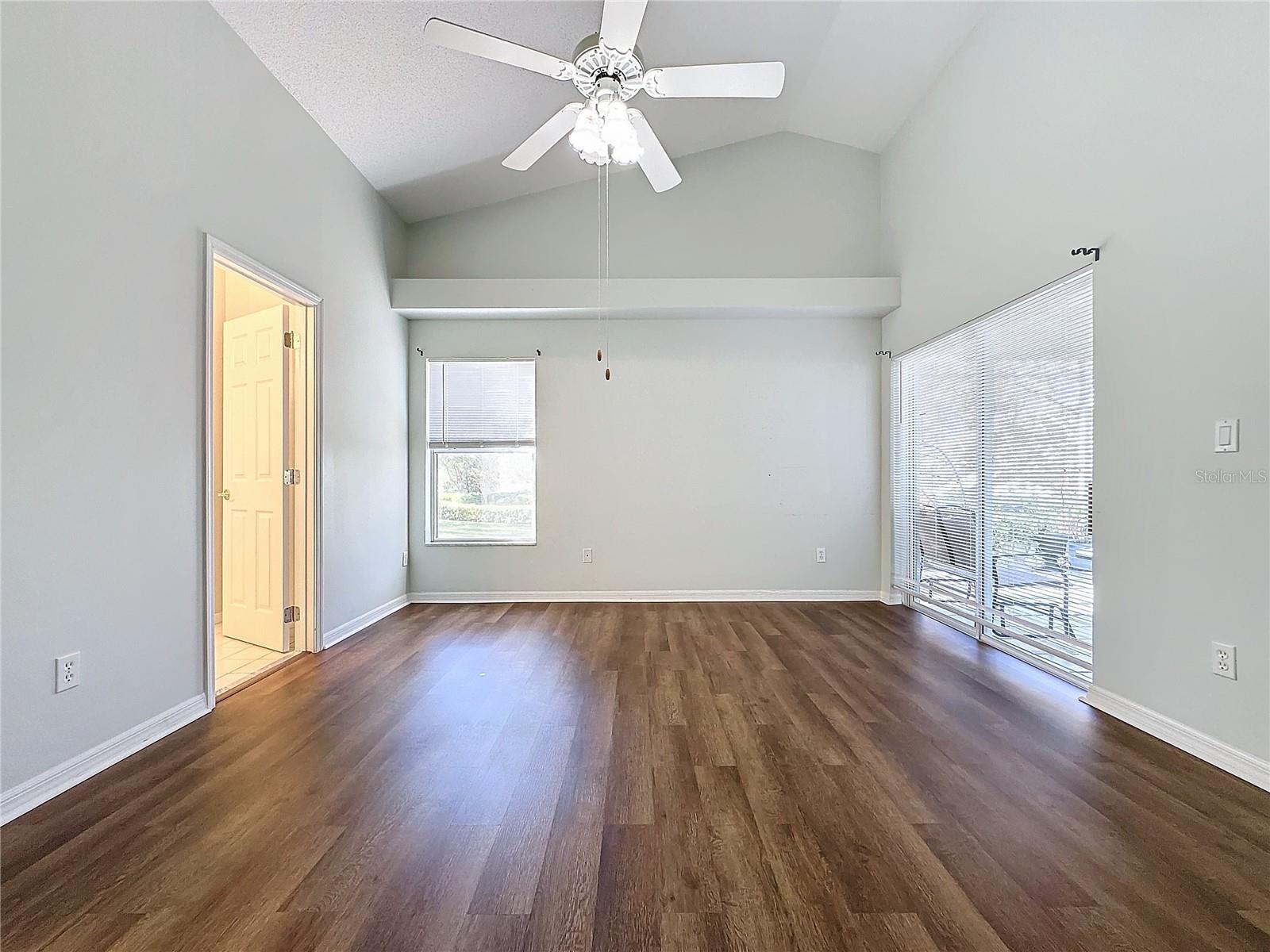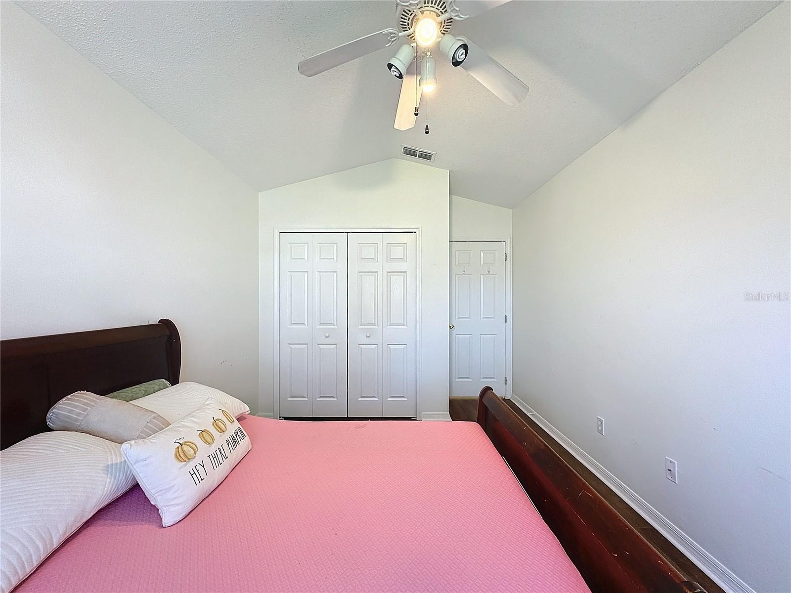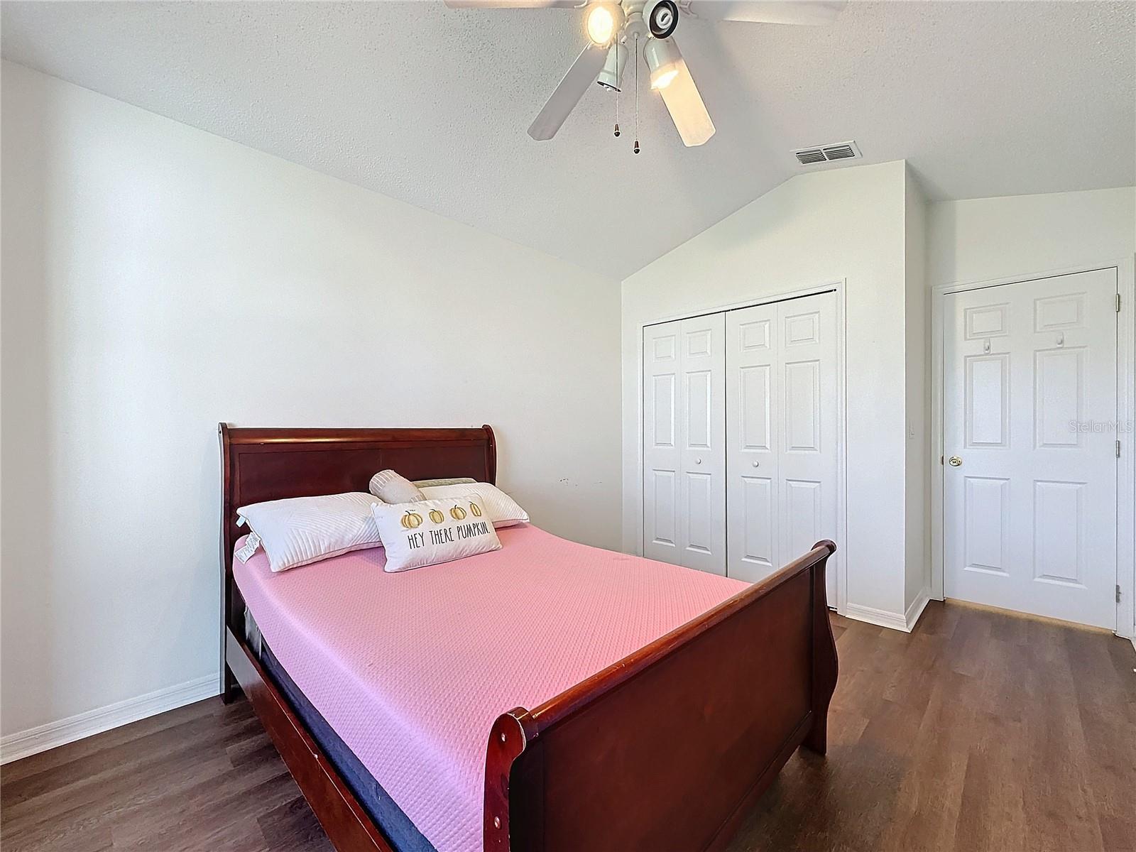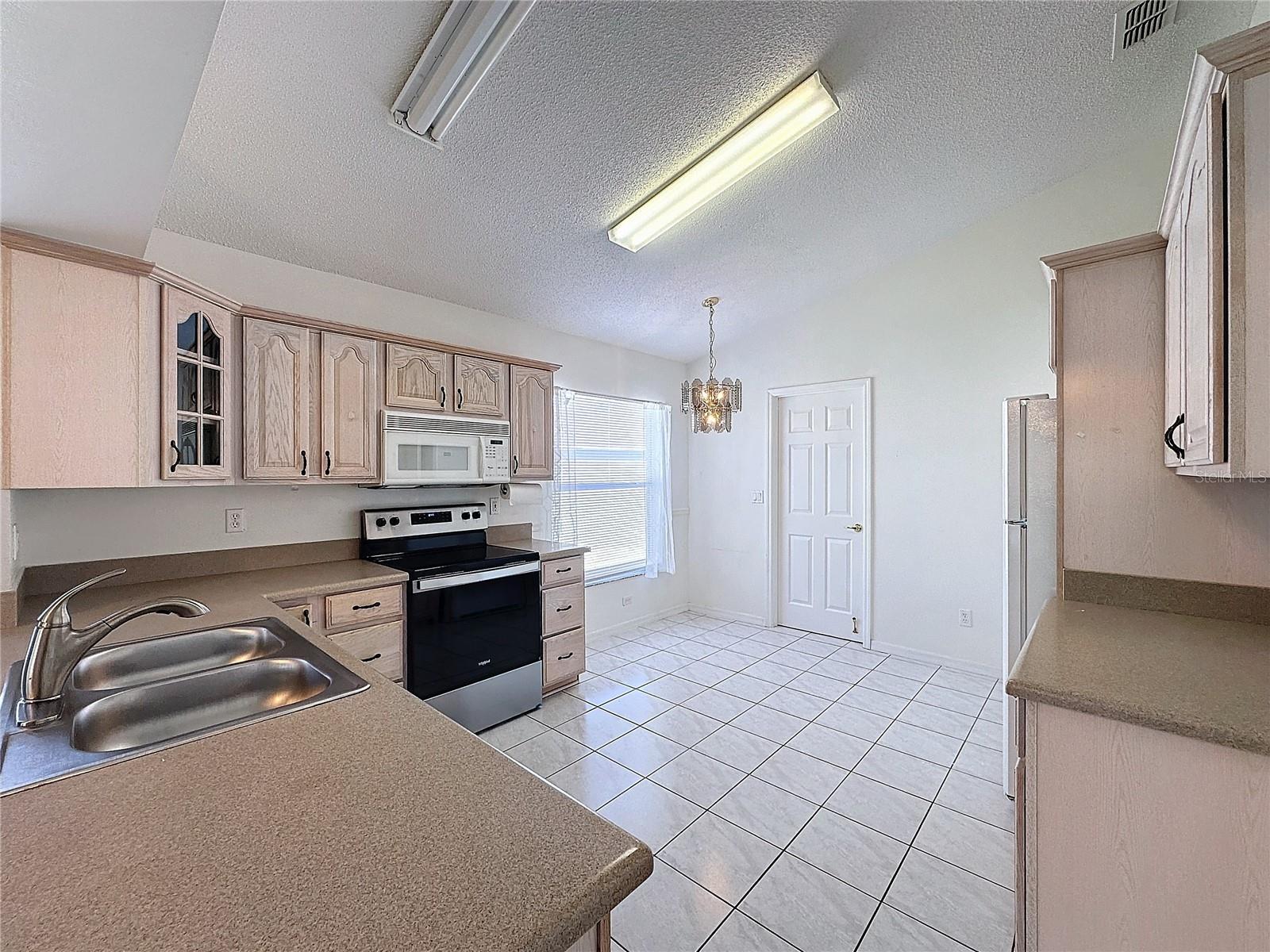 Welcome to the sought after 55+ Golf Course Community of Kings Ridge in beautiful hills of Clermont. This spacious 2 bedroom. plus Den/Study/Office which can be turned into a 3rd bedroom has everything to offer. Oversize garage, car plus golf cart parking. Beautiful Airy OPEN FLOOR PLAN, vaulted ceilings. New Dishwasher and Range;2023 new laminate floors; A/C 2023, Roof 2018. Eat in Kitchen; full beveled glass front door to allow natural light to flow throughout home; Enclosed front screen entryway for added security; Extended screened in lanai; PRIVATE backyard. It is a MUST SEE! Kings Ridge is located on 2 golf courses, Executive & Championship .. HOA fees include the use of the multi million dollar clubhouse, 3 pools, 2 spas, pickle ball and tennis ball courts, clubs to join, bingo, movies, etc. Lawn maintenance, basic cable, internet included. Hop on your golf cart and drive to the local shopping center, grocery store, banks, restaurants, doctor offices, hair/nail salon, Starbucks. Enjoy the day trip to local attractions like Disney, Sea World, Universal, NASA Kennedy Space Center, world famous shopping or a trip to one of our beautiful beaches. Kings Ridge is centrally located in the middle of it all. Orlando Airport is only a short 45 minute drive. Come live the good life in Kings Ridge and see what you have been missing. This one is a must see, it will not last long. Room Feature: Linen Closet In Bath (Primary Bedroom).