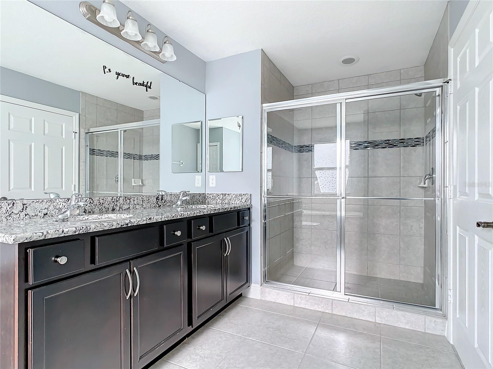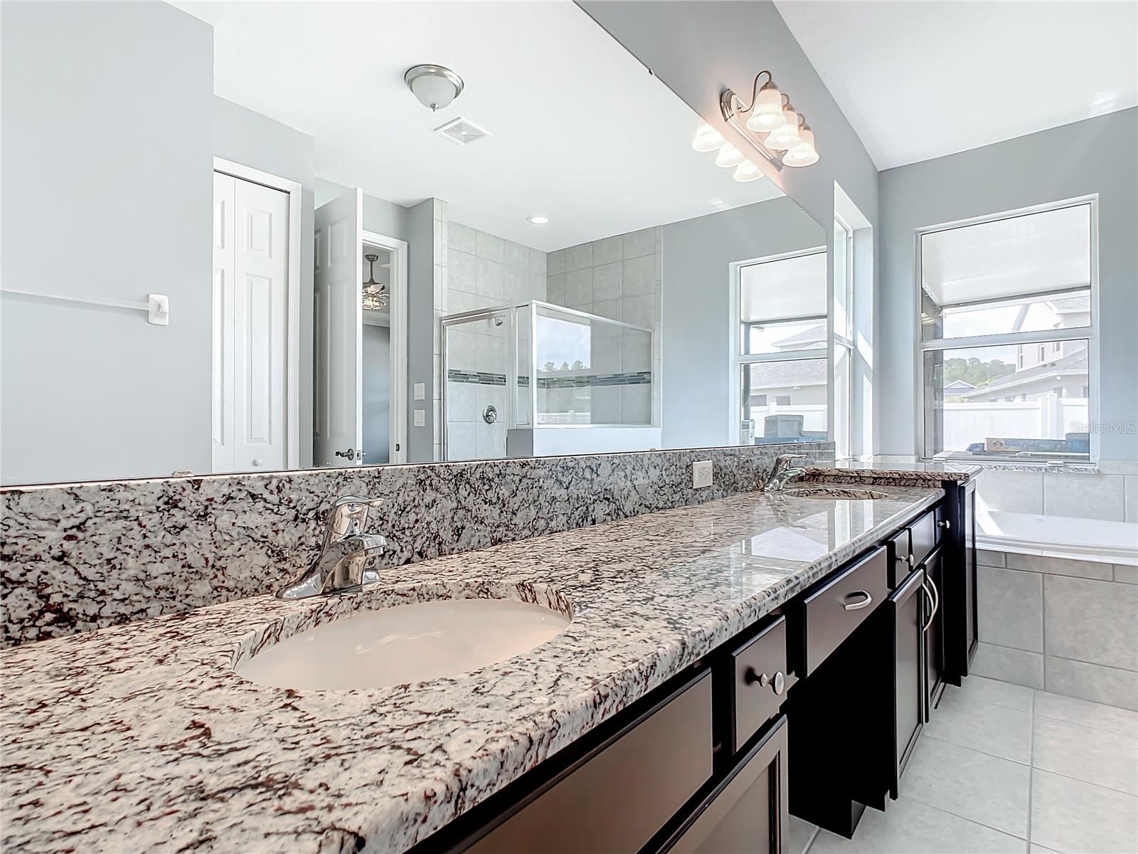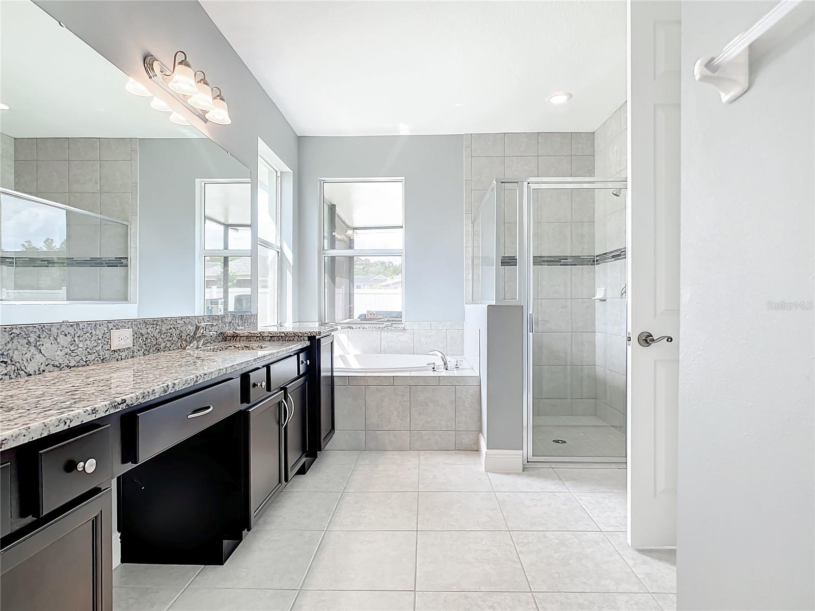 Welcome to your dream home in the desirable community of Greater Lakes! This stunning single-family residence boasts an oversized lot with meticulously landscaped exterior, offering a serene retreat. With 4 bedrooms and 3.5 baths, this home is perfect for family living. Step inside to discover a bright and airy interior with high ceilings and an open floor plan. The combined living room and dining area, along with a cozy breakfast nook, provide ample space for entertaining. The gourmet kitchen is a chef's delight, featuring a large center island, stainless steel appliances, granite counters, and wood cabinets for storage. Two luxurious primary bedroom suites await you, with one conveniently located on the main floor and another upstairs. Each suite features an ensuite bath with granite counters, dual vanity sinks, and either a garden bathtub or walk-in shower. Additional highlights include a bonus room ideal for an office or study, a rear screened covered porch, and a 2-car garage. Recent updates include a new roof (less than 6 months), a 3-year-old AC system, and a 3-year-old water heater. Enjoy relaxation in the hot tub, added just 1 year ago. Don't miss the opportunity to make this your forever home!