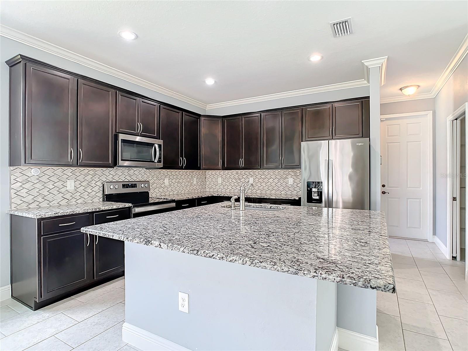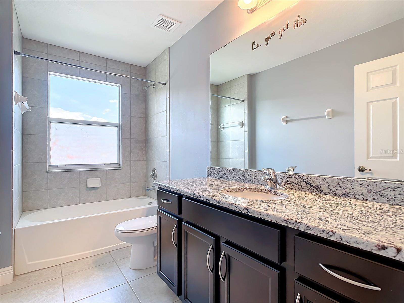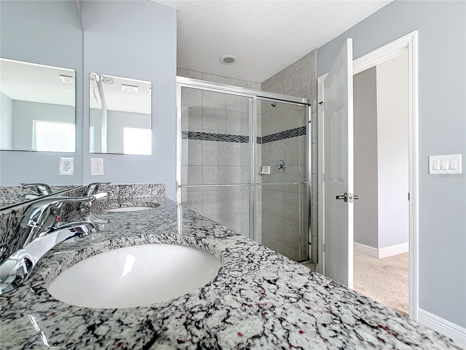 Welcome to your dream home in the desirable community of Greater Lakes! This stunning single-family residence boasts an oversized lot with meticulously landscaped exterior, offering a serene retreat. With 4 bedrooms and 3.5 baths, this home is perfect for family living. Step inside to discover a bright and airy interior with high ceilings and an open floor plan. The combined living room and dining area, along with a cozy breakfast nook, provide ample space for entertaining. The gourmet kitchen is a chef's delight, featuring a large center island, stainless steel appliances, granite counters, and wood cabinets for storage. Two luxurious primary bedroom suites await you, with one conveniently located on the main floor and another upstairs. Each suite features an ensuite bath with granite counters, dual vanity sinks, and either a garden bathtub or walk-in shower. Additional highlights include a bonus room ideal for an office or study, a rear screened covered porch, and a 2-car garage. Recent updates include a new roof (less than 6 months), a 3-year-old AC system, and a 3-year-old water heater. Enjoy relaxation in the hot tub, added just 1 year ago. Don't miss the opportunity to make this your forever home!