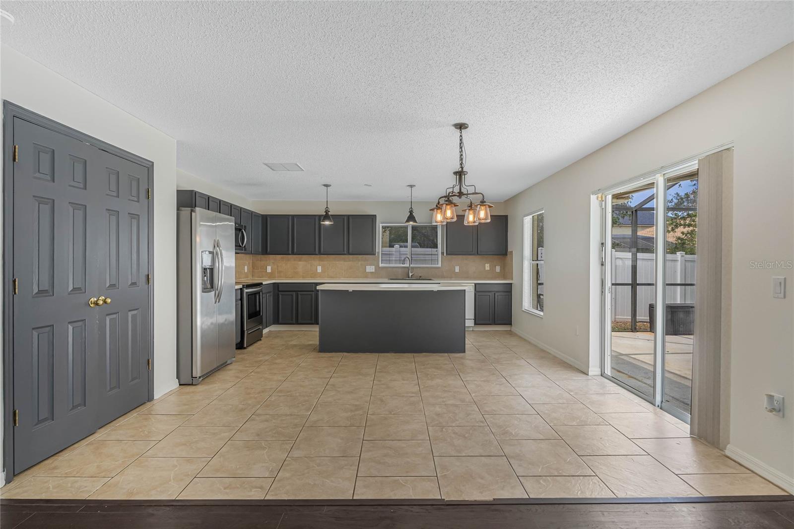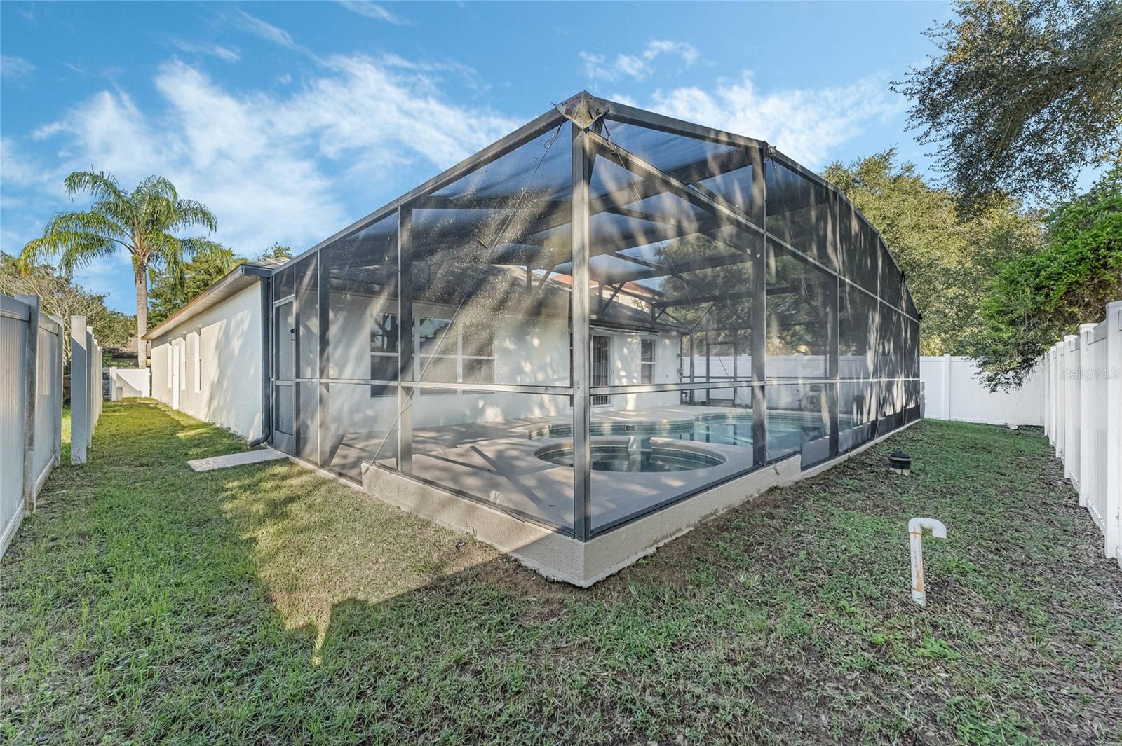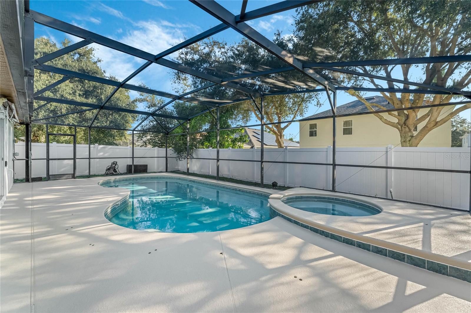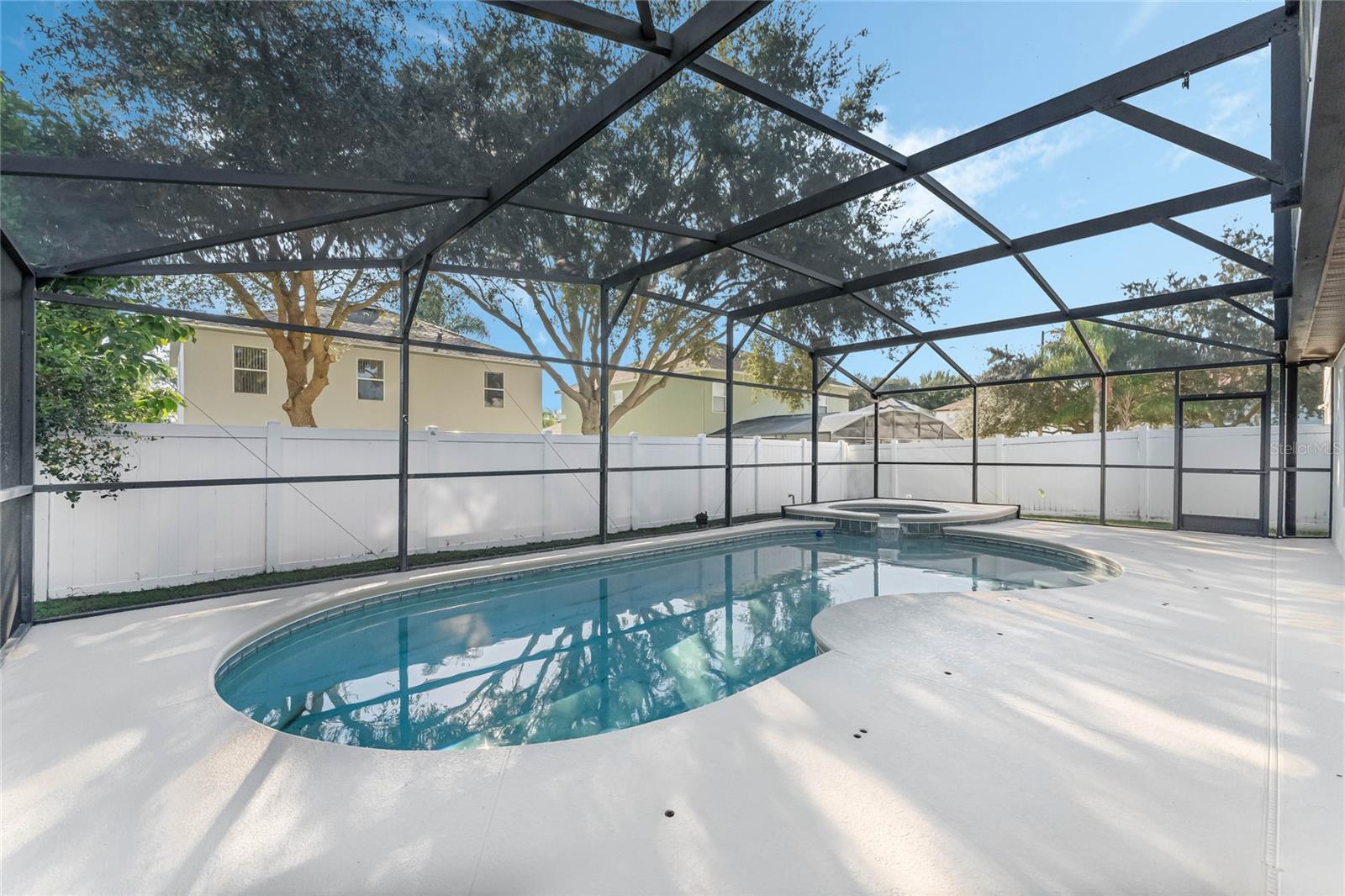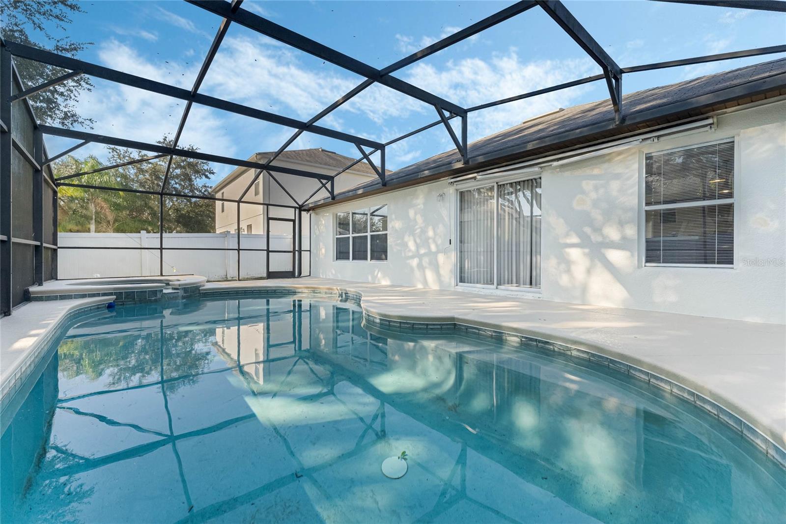 ***$10K PRICE REDUCTION***. NEWLY PAINTED EXTERIOR AND DECK. Welcome to your new home. Just 30 minutes from Disney. A large 3 bedroom 2 bath house feels like you are coming home. As soon as you walk into the front door the home just opens up. A lovely tile entry lead into an open concept dining room and living room. The luxury vinyl plank flooring with a deep walnut color extends from the dining room, living room and all the bedrooms. No carpet anywhere in the house. A large kitchen that has a wonderful island which opens up to the dining/living room combo. Sliding doors take you out to the screened in porch with a pool and spa. This home can be used for your personal use or it can be used a vacation home since it is allowed by the HOA. THE ROOF WILL BE REPLACED PRIOR TO CLOSING. A/C was replaced in 2023. A home warranty will be provided at closing.