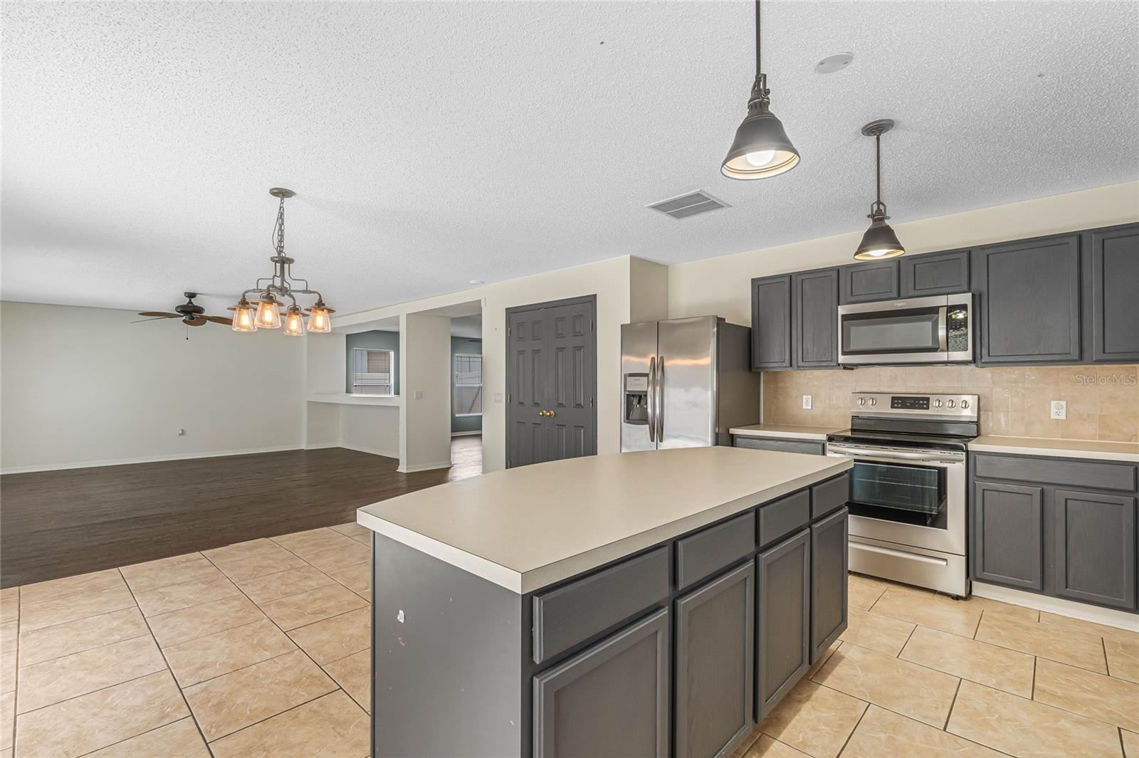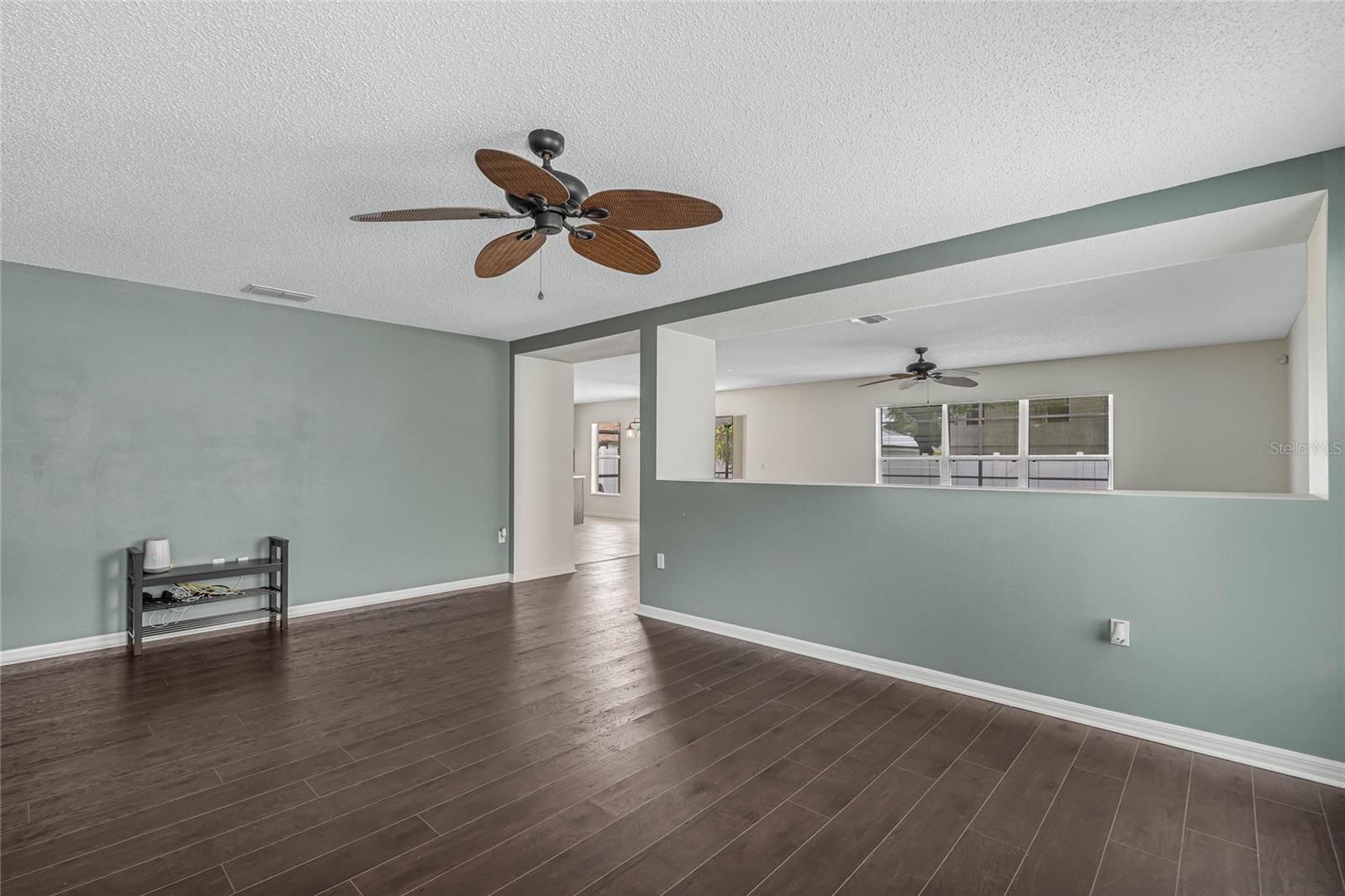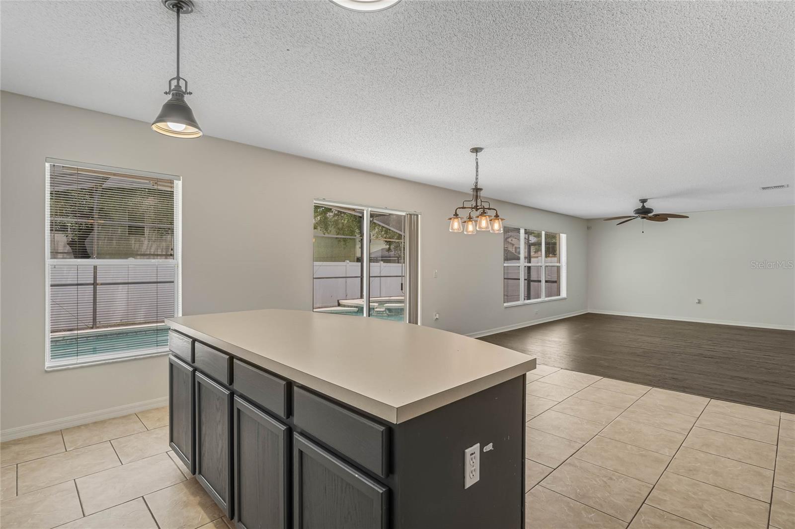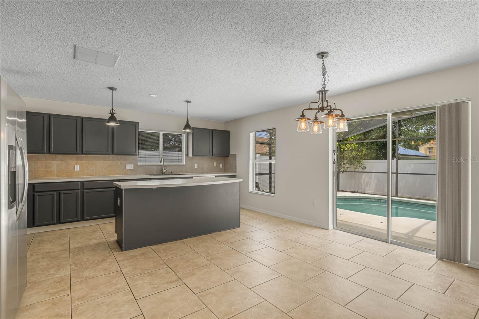 ***$10K PRICE REDUCTION***. NEWLY PAINTED EXTERIOR AND DECK. Welcome to your new home. Just 30 minutes from Disney. A large 3 bedroom 2 bath house feels like you are coming home. As soon as you walk into the front door the home just opens up. A lovely tile entry lead into an open concept dining room and living room. The luxury vinyl plank flooring with a deep walnut color extends from the dining room, living room and all the bedrooms. No carpet anywhere in the house. A large kitchen that has a wonderful island which opens up to the dining/living room combo. Sliding doors take you out to the screened in porch with a pool and spa. This home can be used for your personal use or it can be used a vacation home since it is allowed by the HOA. THE ROOF WILL BE REPLACED PRIOR TO CLOSING. A/C was replaced in 2023. A home warranty will be provided at closing.
