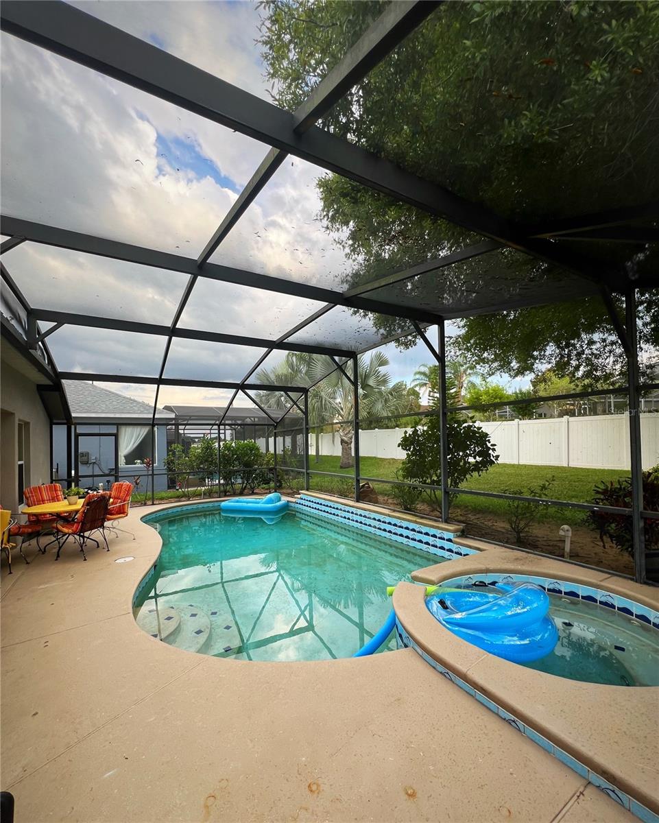 This exquisite 4-bedroom, 3-bathroom home is a true gem, designed for comfort and elegance. This beautiful home boasts not just one, but two master bedrooms, perfect for multi-generational families or accommodating guests with utmost privacy. The open-concept living and dining areas seamlessly flow, creating an inviting space for both casual lounging and formal entertaining. Step into your private backyard sanctuary, where a sparkling pool beckons for refreshing dips on warm days. A heated pool size 29' x 14' with spa, extended deck and covered porch invites you to experience Florida living. The screen enclosed pool area has room for a cooking area, tables, chairs and much more. NEW ROOF in 2019 and VERY LOW ANNUAL HOA. This beautiful home is very close to Lake Louisa State Park. Clermont is one of the fastest-growing cities in Central Florida. Strategically located close to Orlando and theme parks.