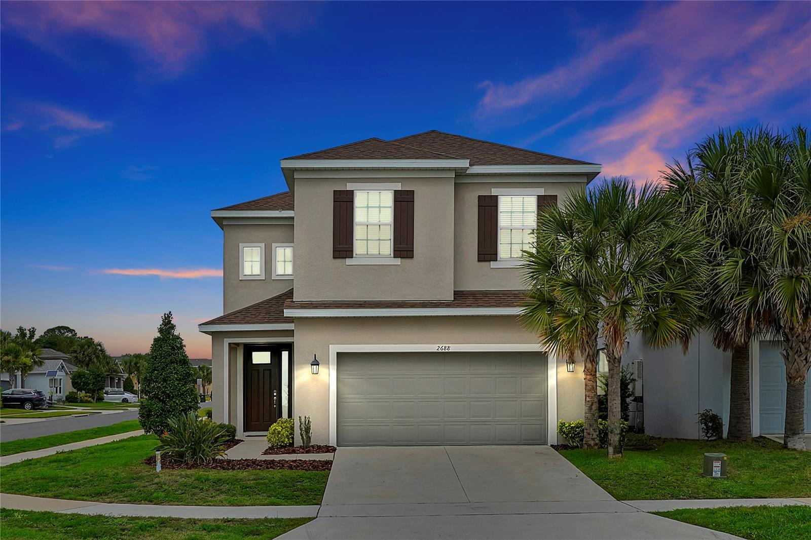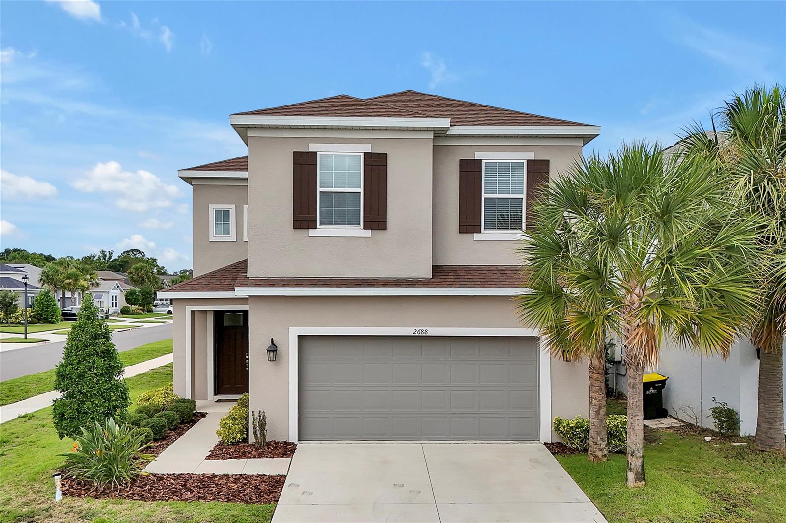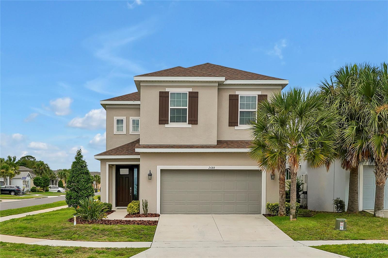 One or more photo(s) has been virtually staged. Welcome to your dream home at 2688 Pinnacle Ln, located in the Crestview Community of Clermont, FL. This stunning 2021 built Boca Grande model boasts a prime corner lot within a gated community, offering both security and privacy. Step inside this modern oasis to discover a spacious 4-bedroom, 3-bath layout with high ceilings, an open floor plan, and elegant stone countertops throughout. The chef’s kitchen features a state-of-the-art gas stove and built-in oven microwave combo. Experience unparalleled convenience with smart home features, including Wi-Fi enabled light switches, app-controlled garage door, and remote-controlled blinds, ensuring ultimate comfort and control at your fingertips. The master suite provides a luxurious retreat with En-suite bathroom and generously sized walk-in closets. The home also includes energy-efficient amenities such as smart thermostat and sleek tankless water heater for endless supply of hot water. You will appreciate being in the Lost Lake Elementary school zone, ensuring excellent education opportunities. Enjoy community amenities such as a clubhouse with a pool and playground, perfect for relaxation or social gatherings. This home is a blend of sophistication and practicality, ideal for modern living. Don't miss the chance to make 2688 Pinnacle Ln your new address. Contact us today to schedule a private tour and experience the elegance and comfort of this exceptional property.