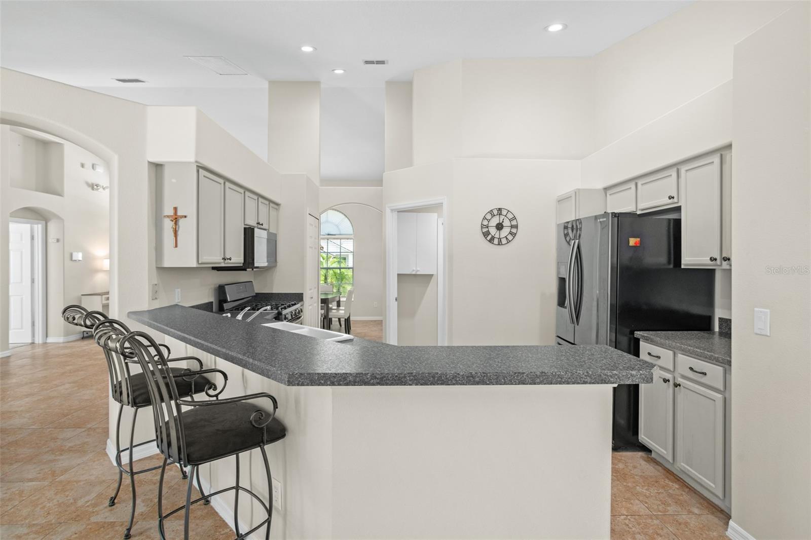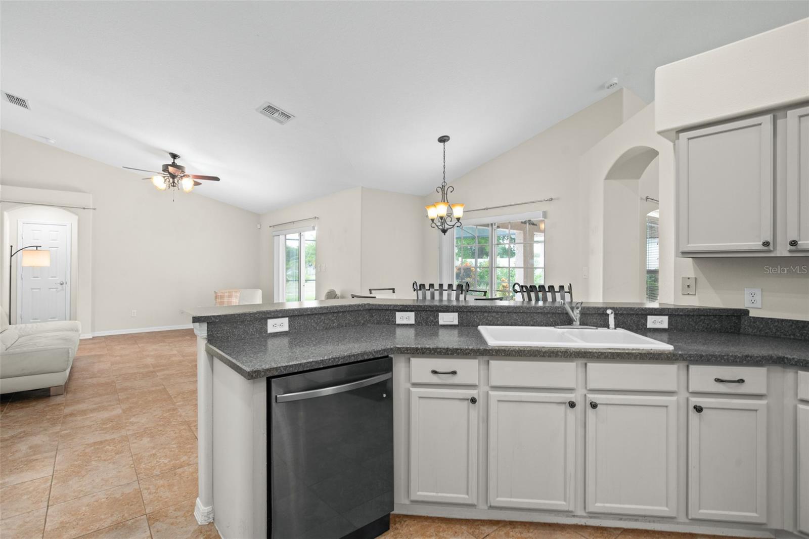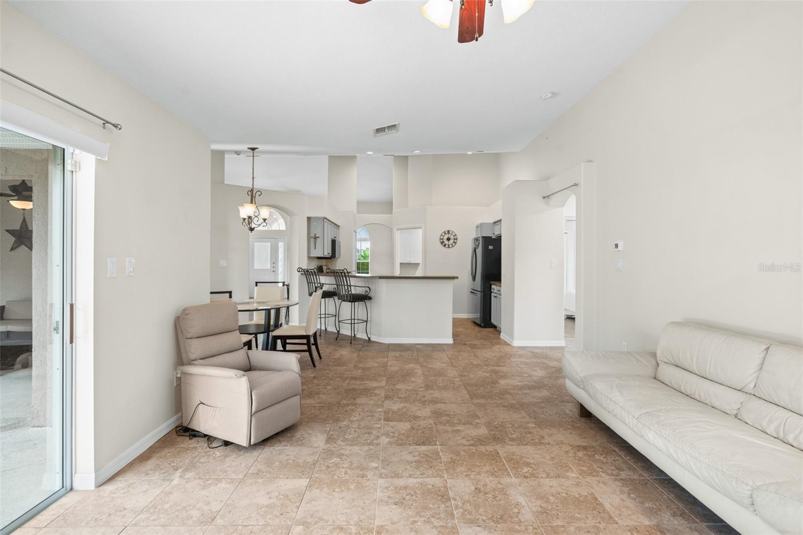 **This property qualifies for a closing cost credit up to $3,600 through the Seller’s preferred lender.**PRICED TO SELL - Welcome home to this beautiful 4-bedroom, 3-bathroom pool home located on the tree-lined street of the Orange Tree community in Clermont. As you enter, you’ll be pleasantly surprised by the natural light drawn in from the windows surrounding and the soaring ceilings opening the space. The formal dining room at the front looks into the formal living room with the primary bedroom to the right. This picturesque open bedroom features high ceilings and sliding glass doors with beautiful water views out back. Make your way back to the open concept kitchen with a gas range and living room with the perfect dinette tucked up at the side. 2 more guest bedrooms with a full bathroom in the middle are right off the kitchen. At the back of the home, you’ll find the perfect 4th bedroom with the pool bath across the way providing direct access outside. Step outside to your tropical oasis to escape to after a long week! The covered patio extends out to the screened in pool overlooking the communal green space out back. With no rear neighbors this home provides a serene atmosphere to relax year-round! Recent upgrades include a new roof from 2023, AC 2022, stand up attic with steps, electric and flooring, and a water softener system installed in 2019. The Orange Tree Community offers tennis and pickleball courts, soccer field, playground, and a scenic walking trail, allowing residents to embrace an active and vibrant lifestyle all just a short distance from your front door! Experience the convenience of being in close proximity to theme parks, shopping centers, and a plethora of dining options, ensuring every desire is easily within reach. Zoned for long term and short term rentals, this home is the perfect addition to your rental portfolio. Don’t miss out on the opportunity to schedule your private showing today!