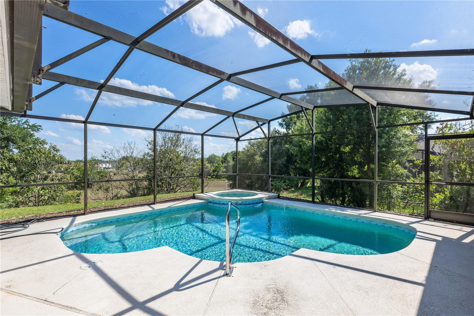 Move-in ready 4-bedroom, 3-bathroom home with a pool and spa in the Greater Groves community, just minutes from Disney. Conveniently located near major roads, shopping, and restaurants, the community offers amenities like a pool, tennis courts, and a playground. The home features a spacious layout with abundant natural light, a formal living room, a dining room, a family room, and a breakfast nook. The split floor plan places the primary bedroom and primary bath on one side and the other three bedrooms and two baths on the opposite side for maximum privacy and convenience. The home is situated on a generous lot backing to a conservation area and includes a large screened back patio with a pool and spa. This home is ready for a new family to enjoy all it has to offer.